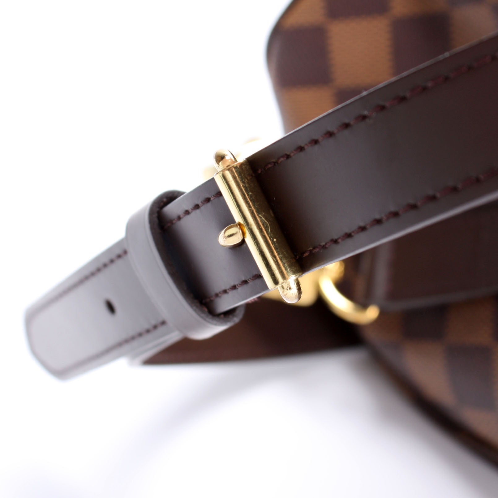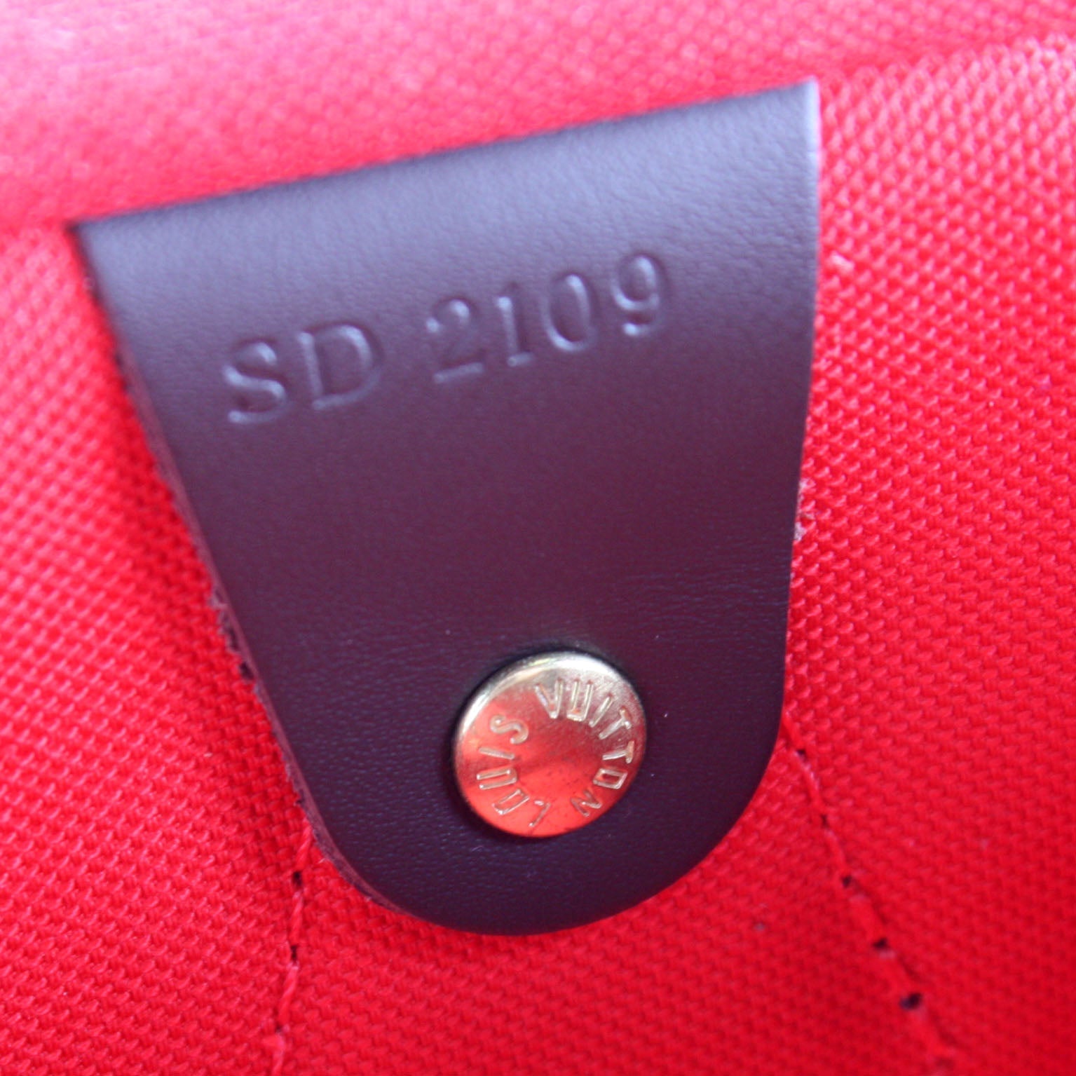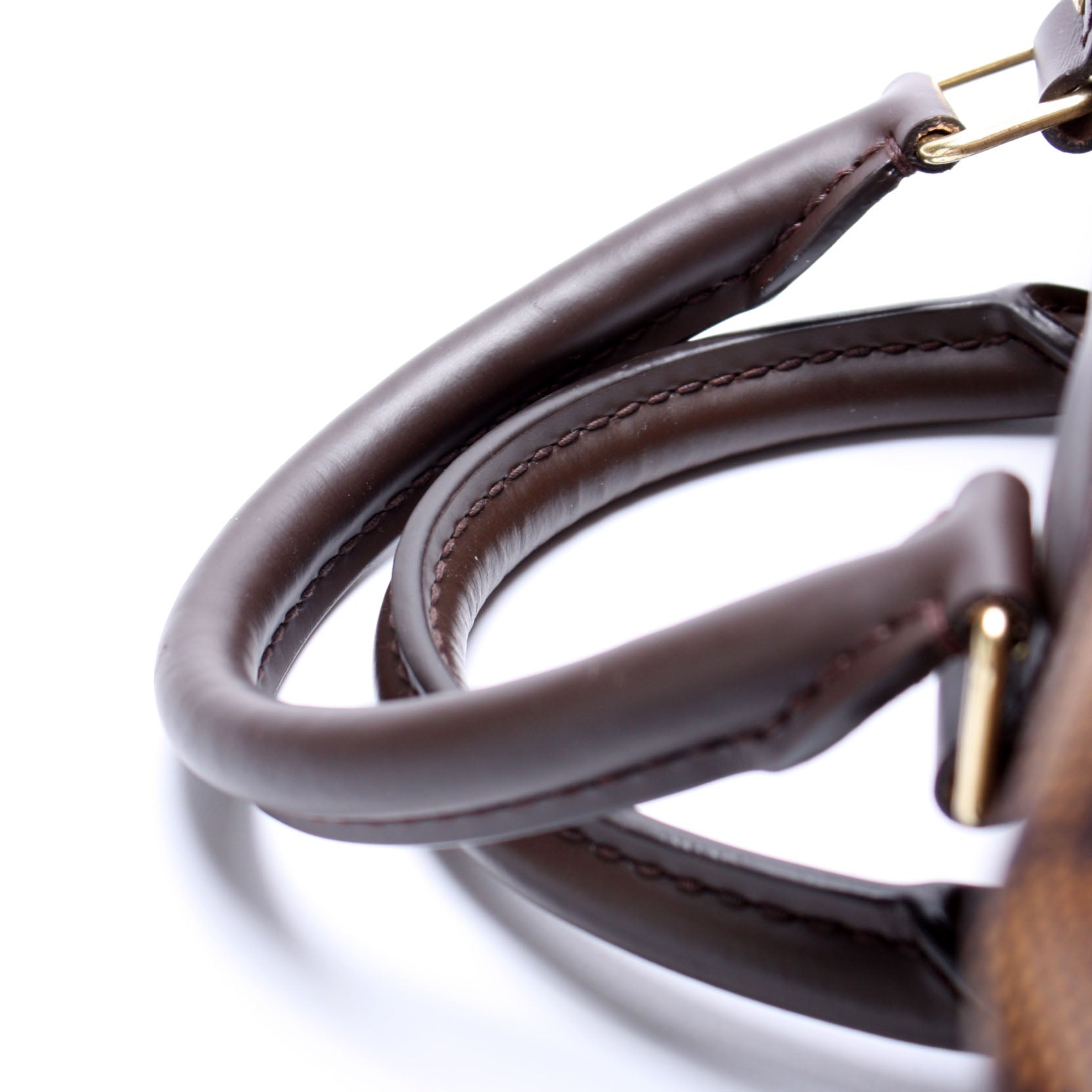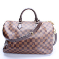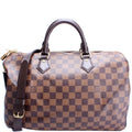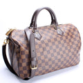 This Louis Vuitton Speedy 30 Bandouliereis eye catching bag. The exterior is in the classic Damier Ebene coated canvas.