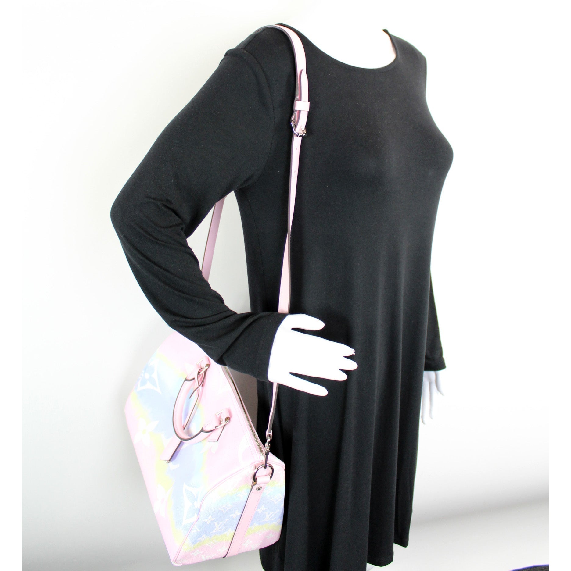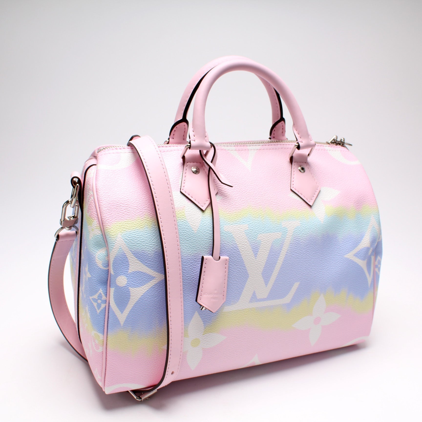 This Louis Vuitton Speedy 30 Bandouliere Escaleis eye catching bag.