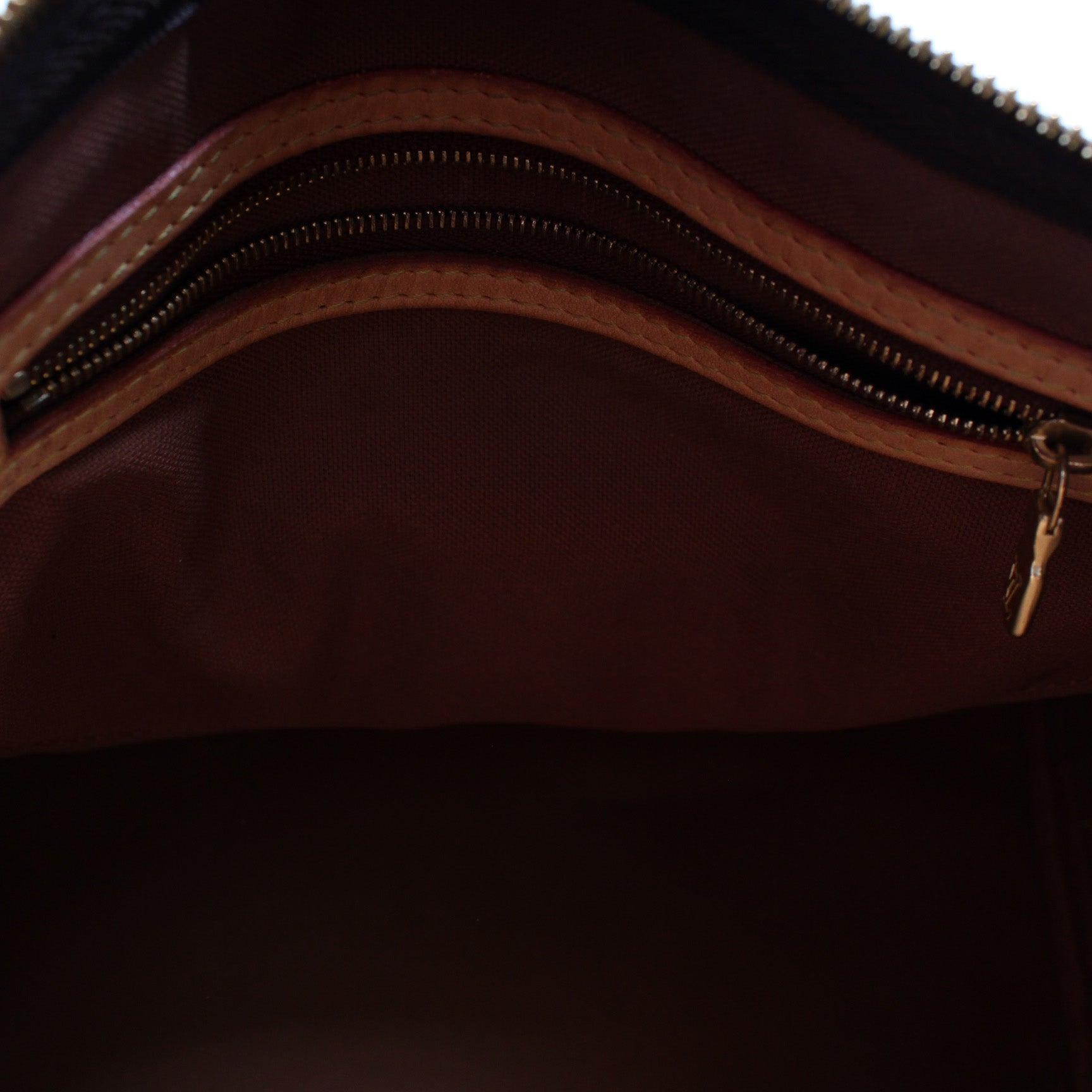 Exterior: The exterior coated canvas is free of any cracking. The corners show minor signs of wear as pictured. The leather trim has minor signs of wear and discoloration.