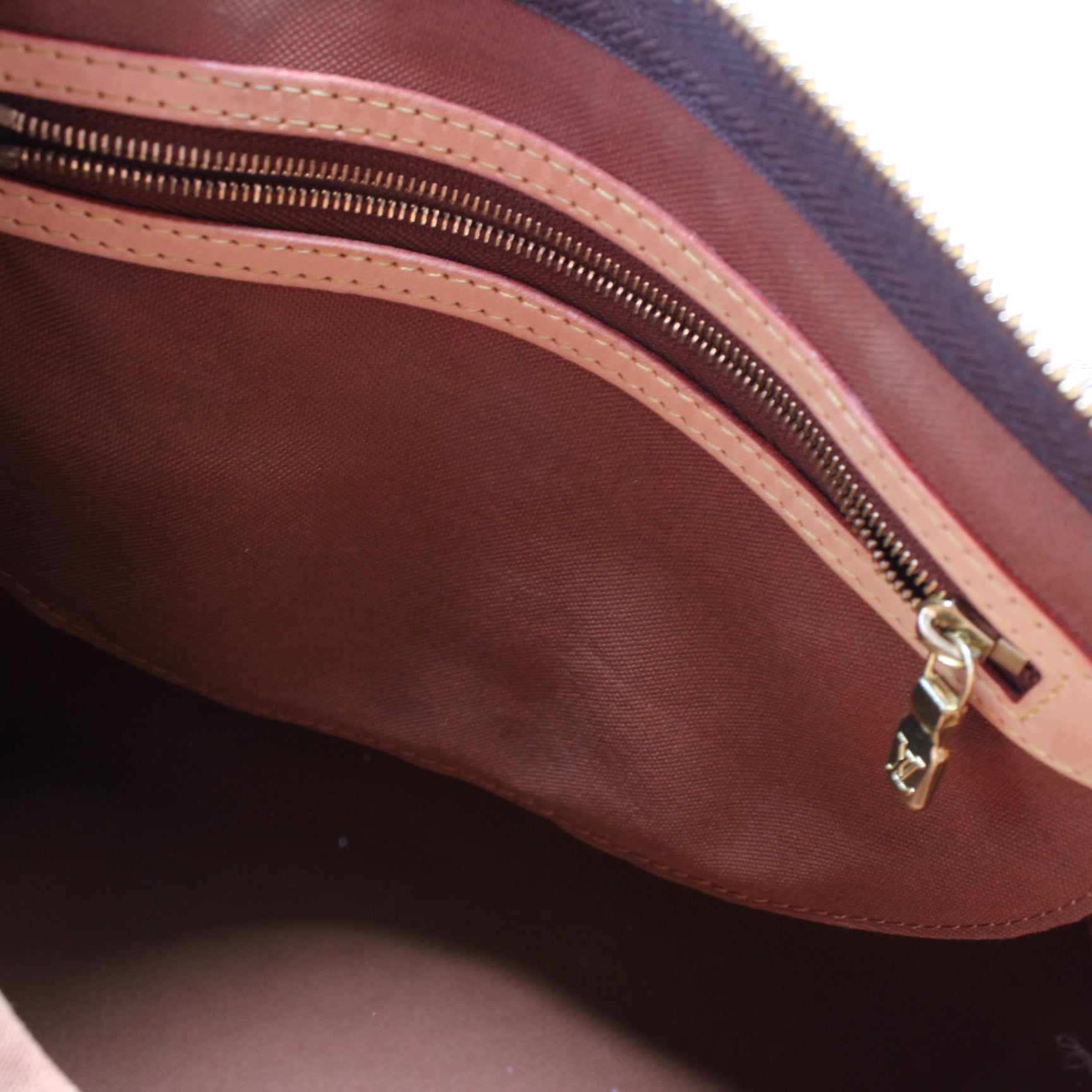 Interior: The interior is clean and free of rips or tears. It features one zip pocket.