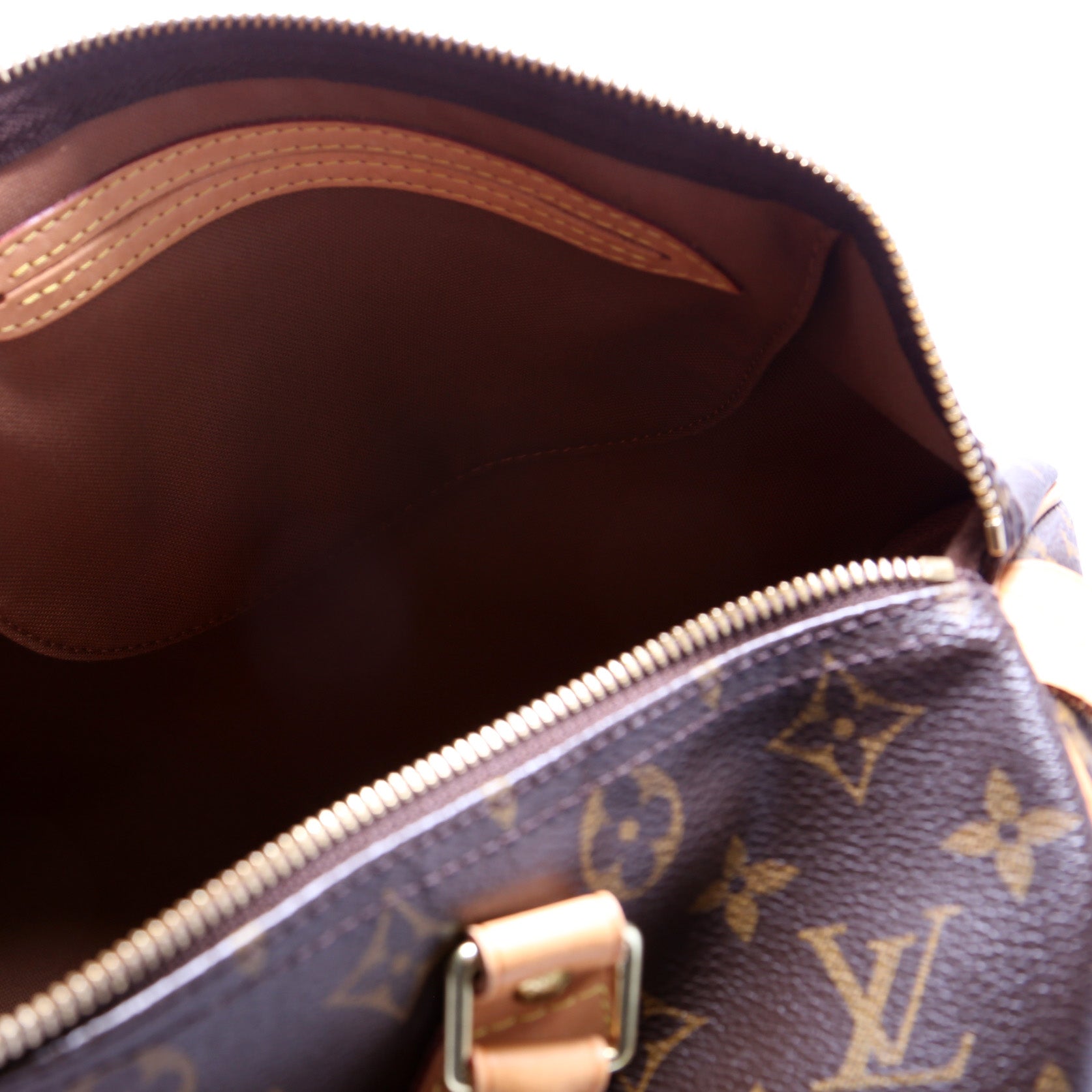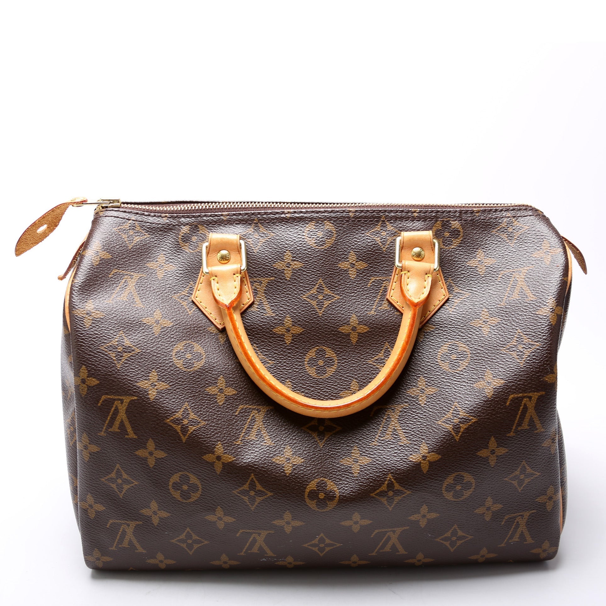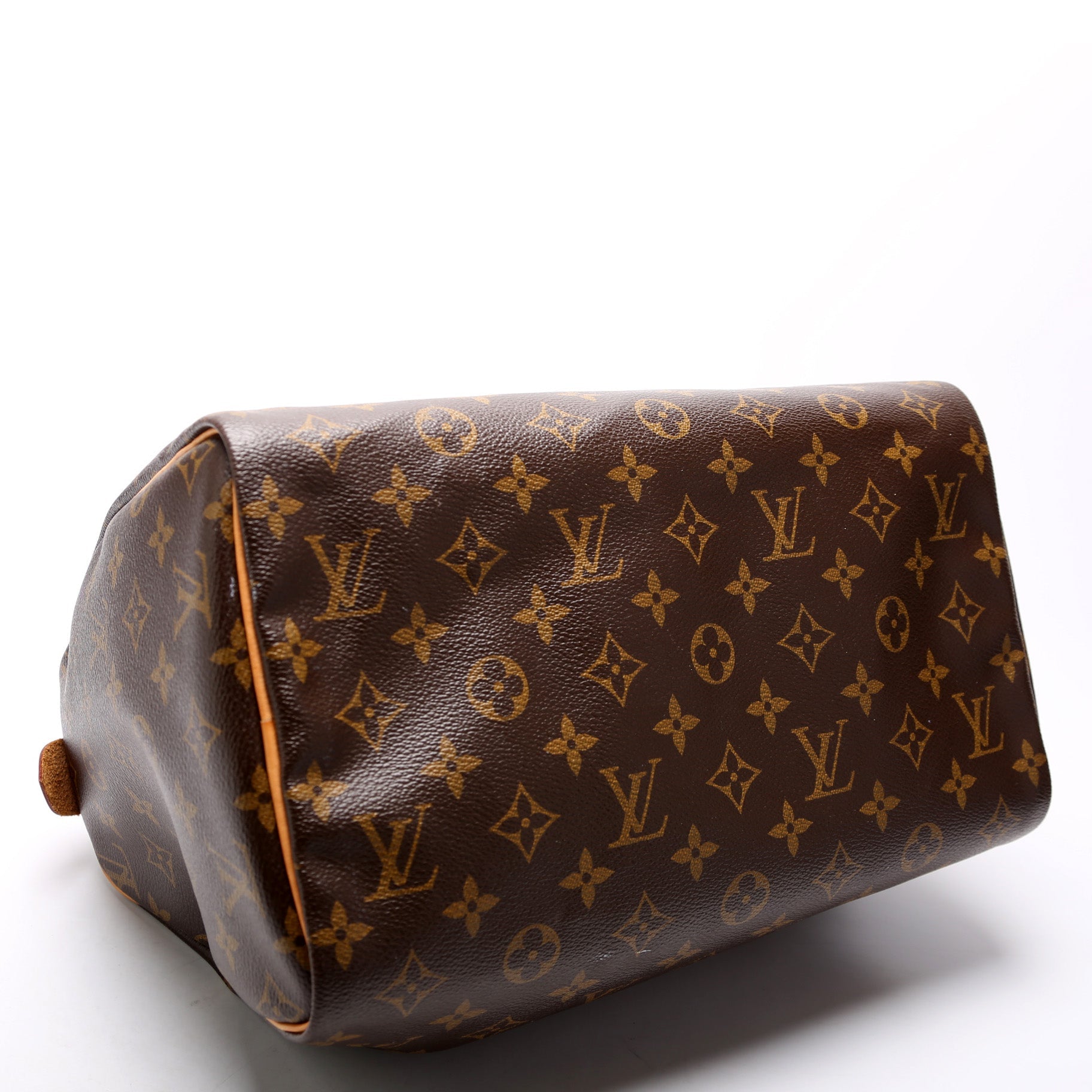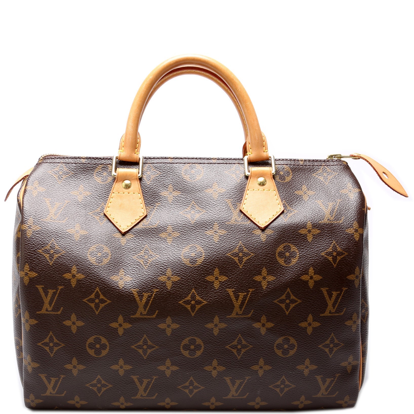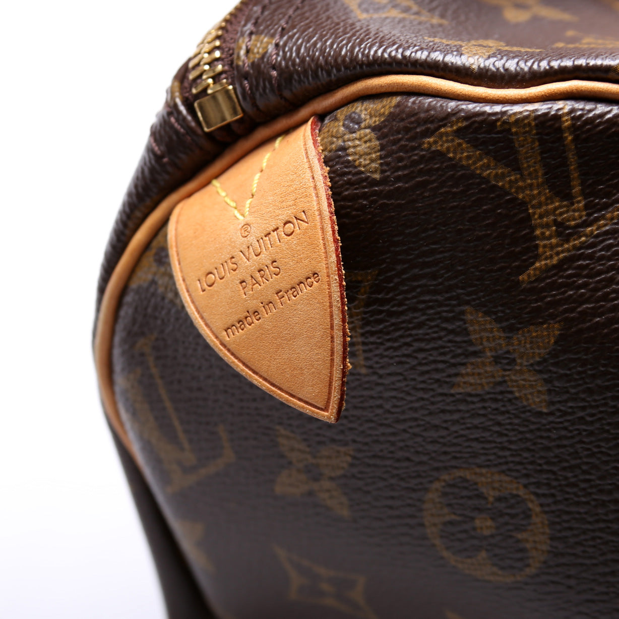 This Louis Vuitton Speedy 30is eye catching bag. The exterior is in the classic Louis Vuitton Monogram coated canvas.
