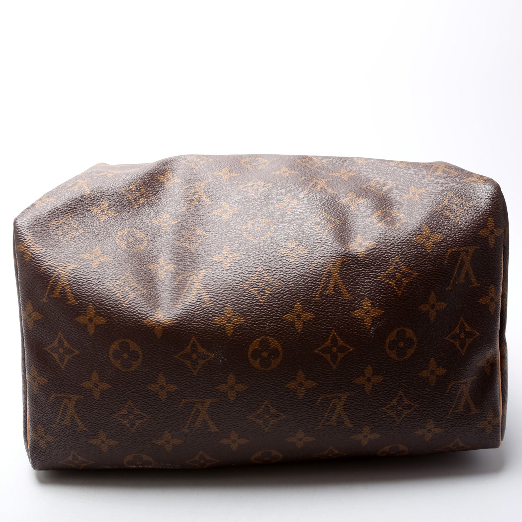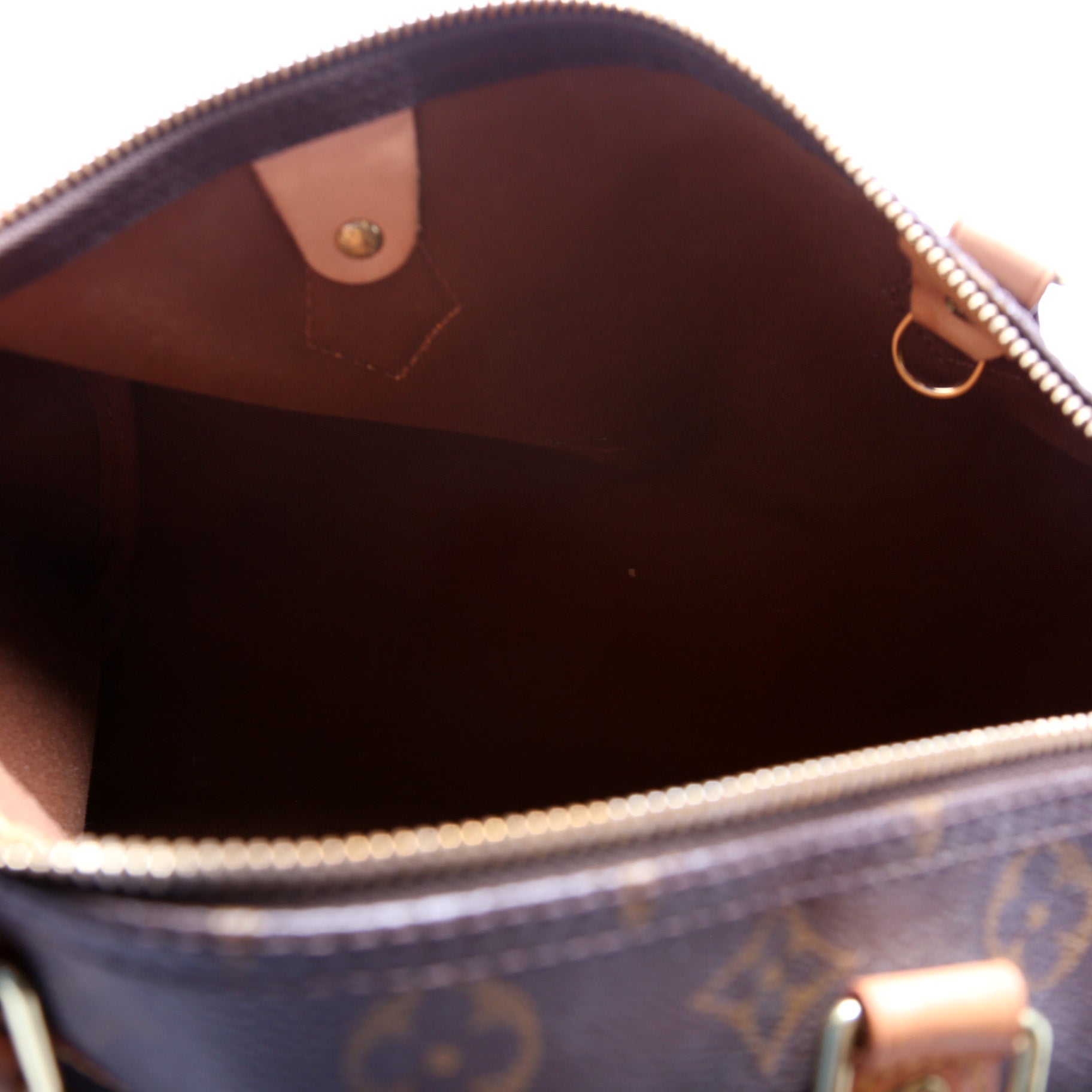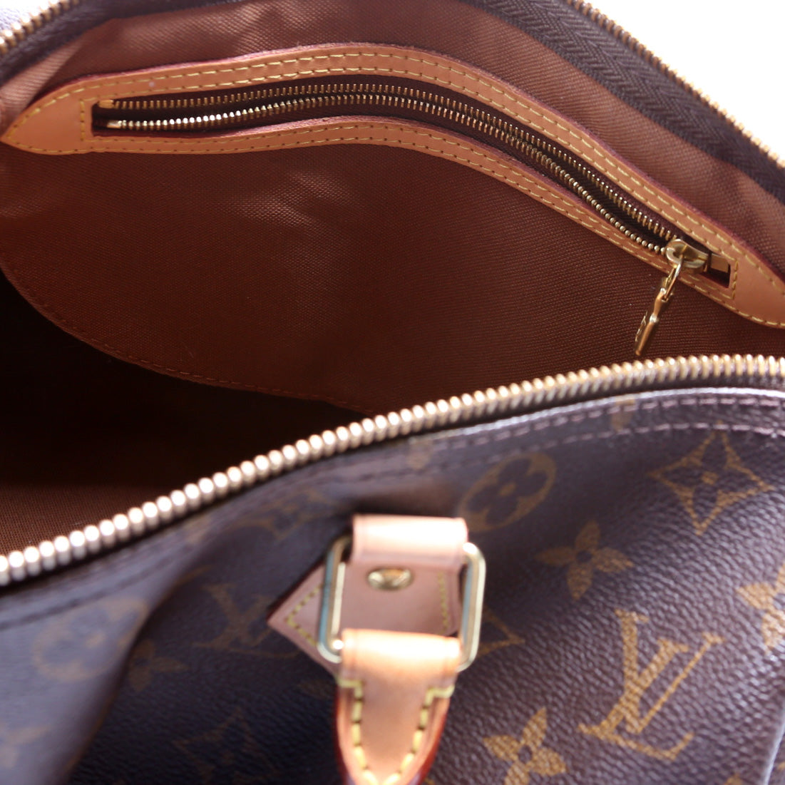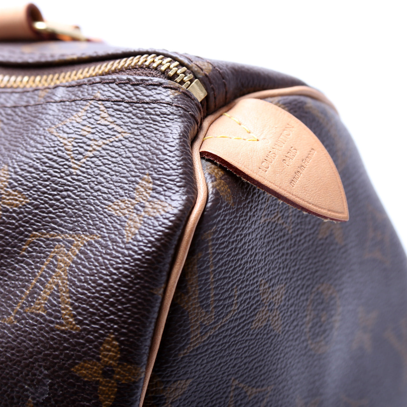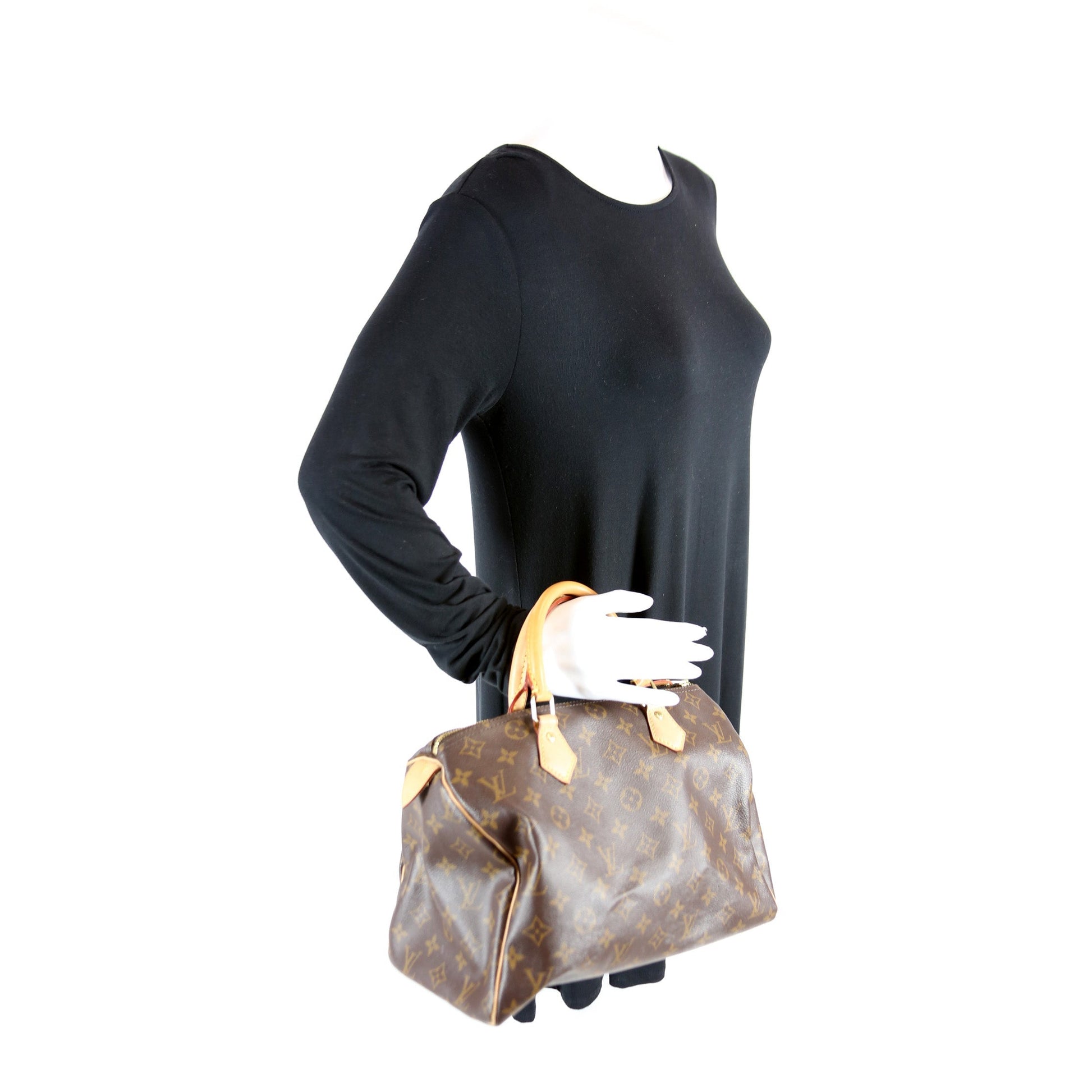 This Louis Vuitton Speedy 30is eye catching bag. The exterior is in the classic Louis Vuitton Monogram coated canvas.