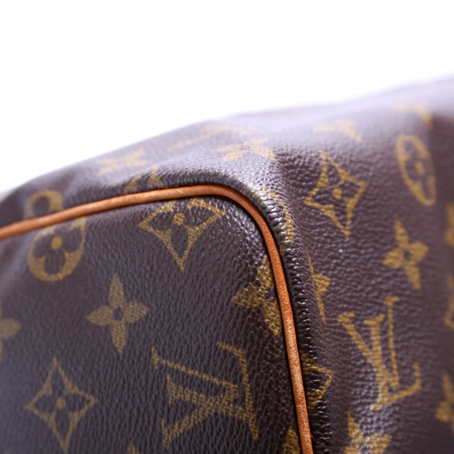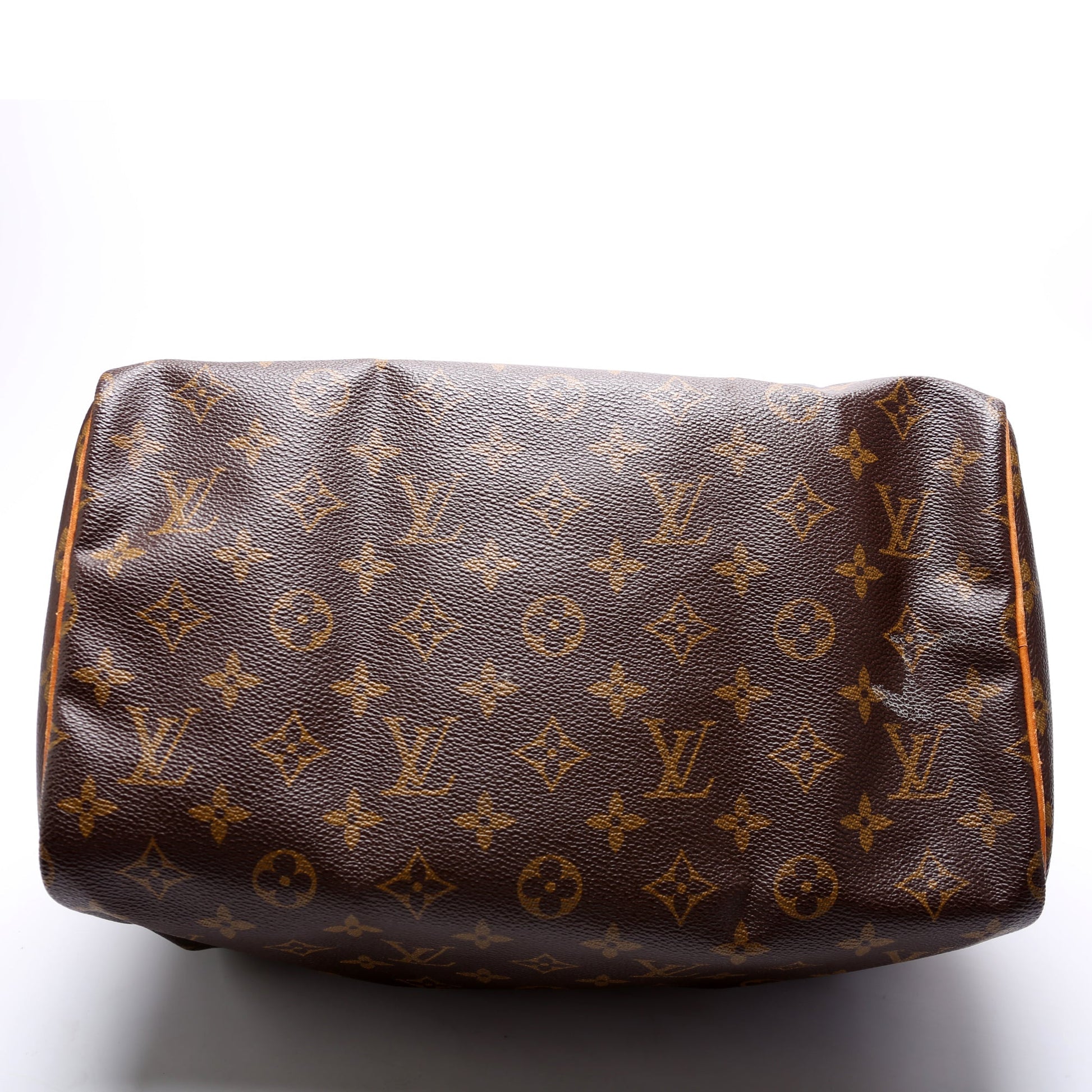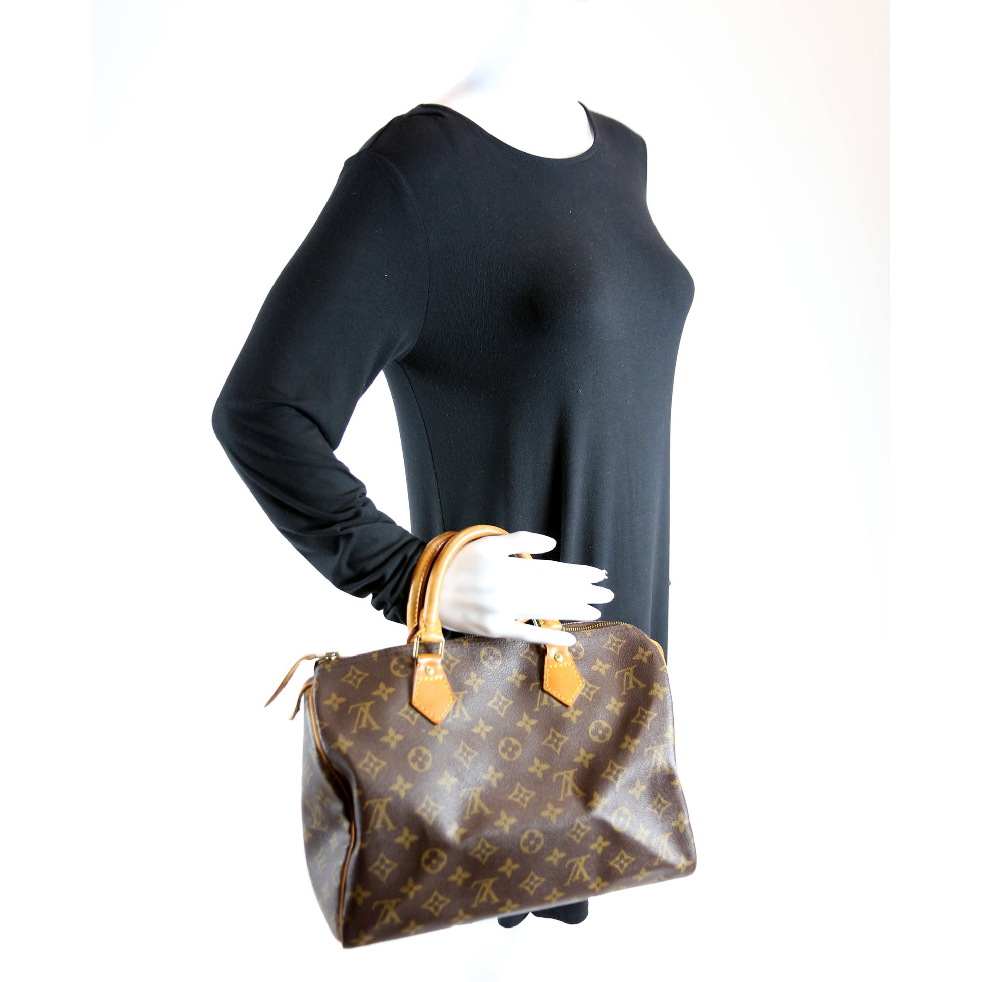 This Louis Vuitton Speedy 30is eye catching bag. The exterior is in the classic Louis Vuitton Monogram coated canvas.
