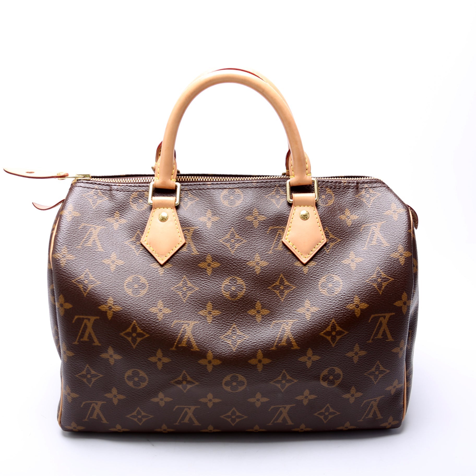 This Louis Vuitton Speedy 30is eye catching bag. The exterior is in the classic Louis Vuitton Monogram coated canvas.