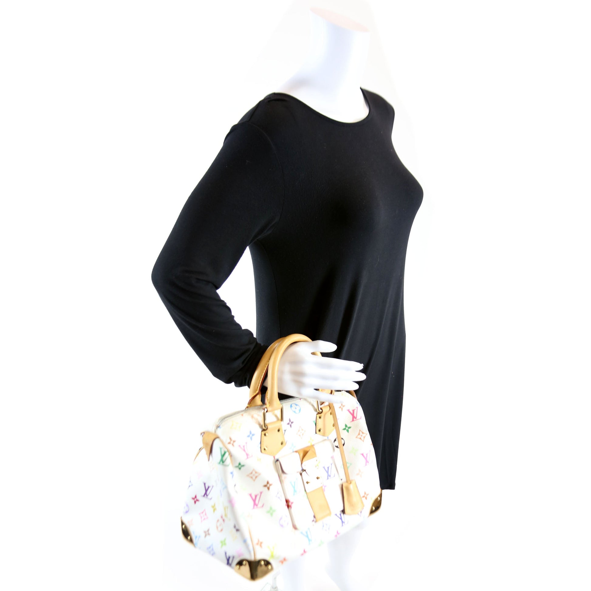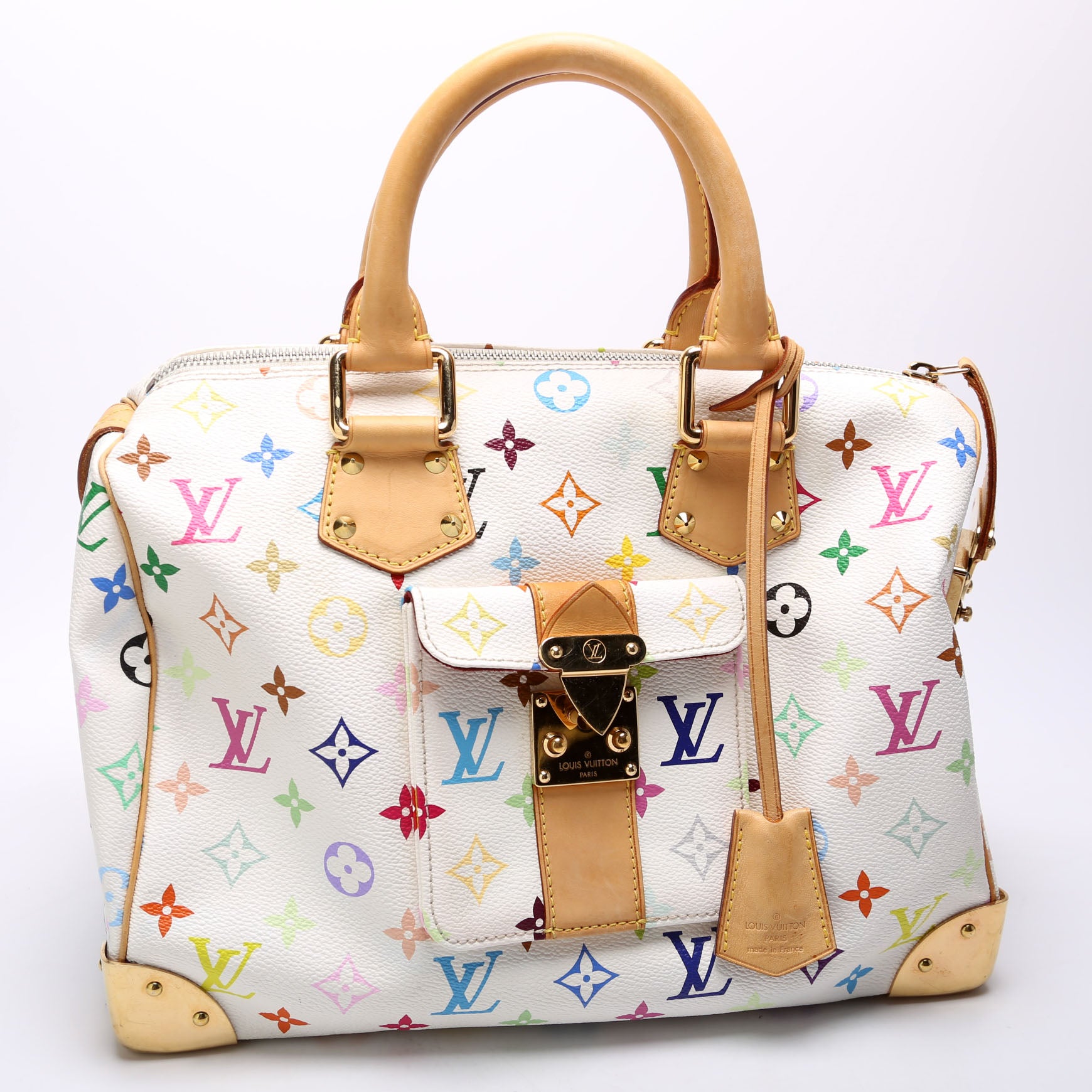 This Louis Vuitton Speedy 30is eye catching bag. The exterior is in the Louis Vuitton Multicolor Monogram coated canvas.