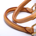 Handle: The leather handles show wear and discoloration throughout.