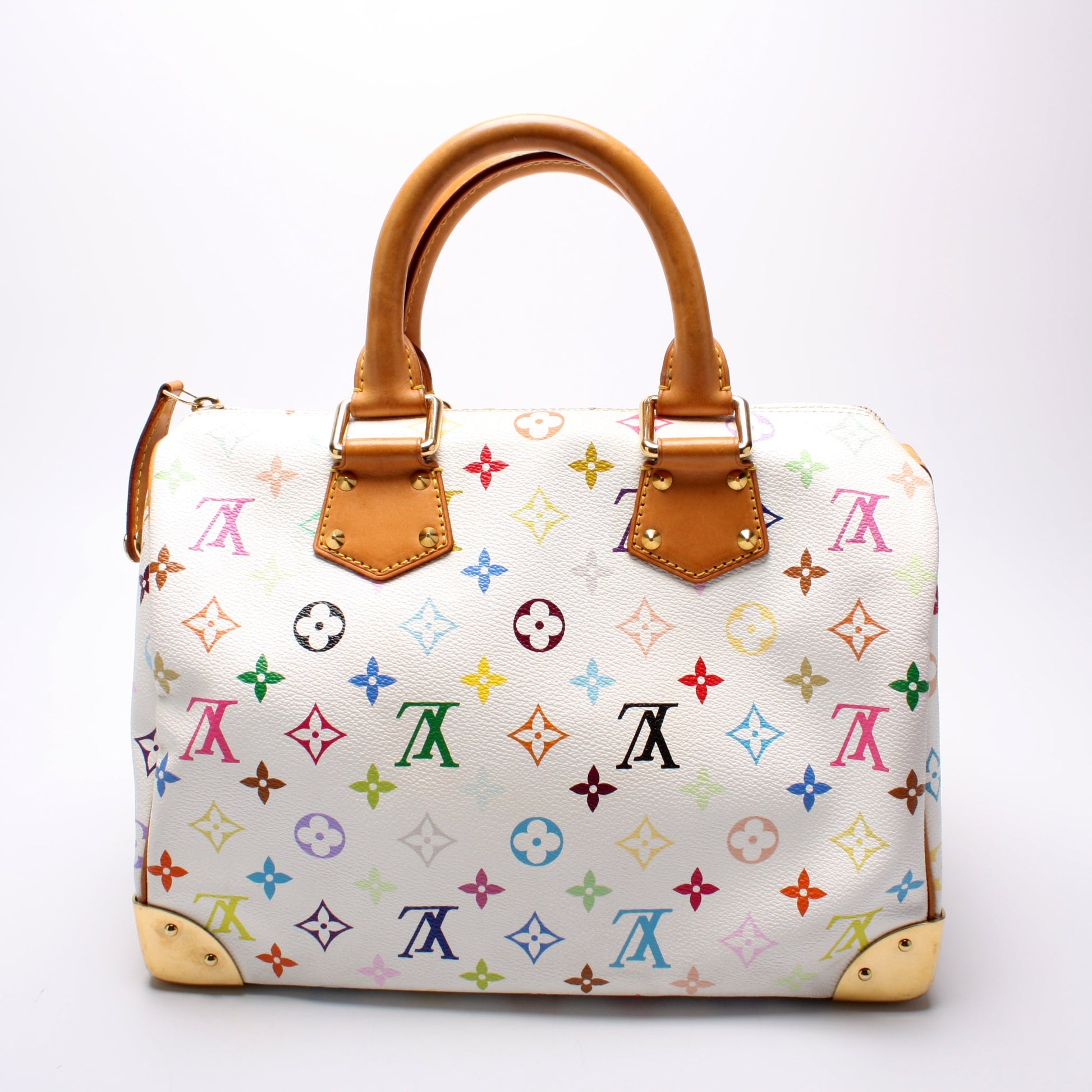 This Louis Vuitton Speedy 30is eye catching bag. The exterior is in the Louis Vuitton Multicolor Monogram coated canvas.