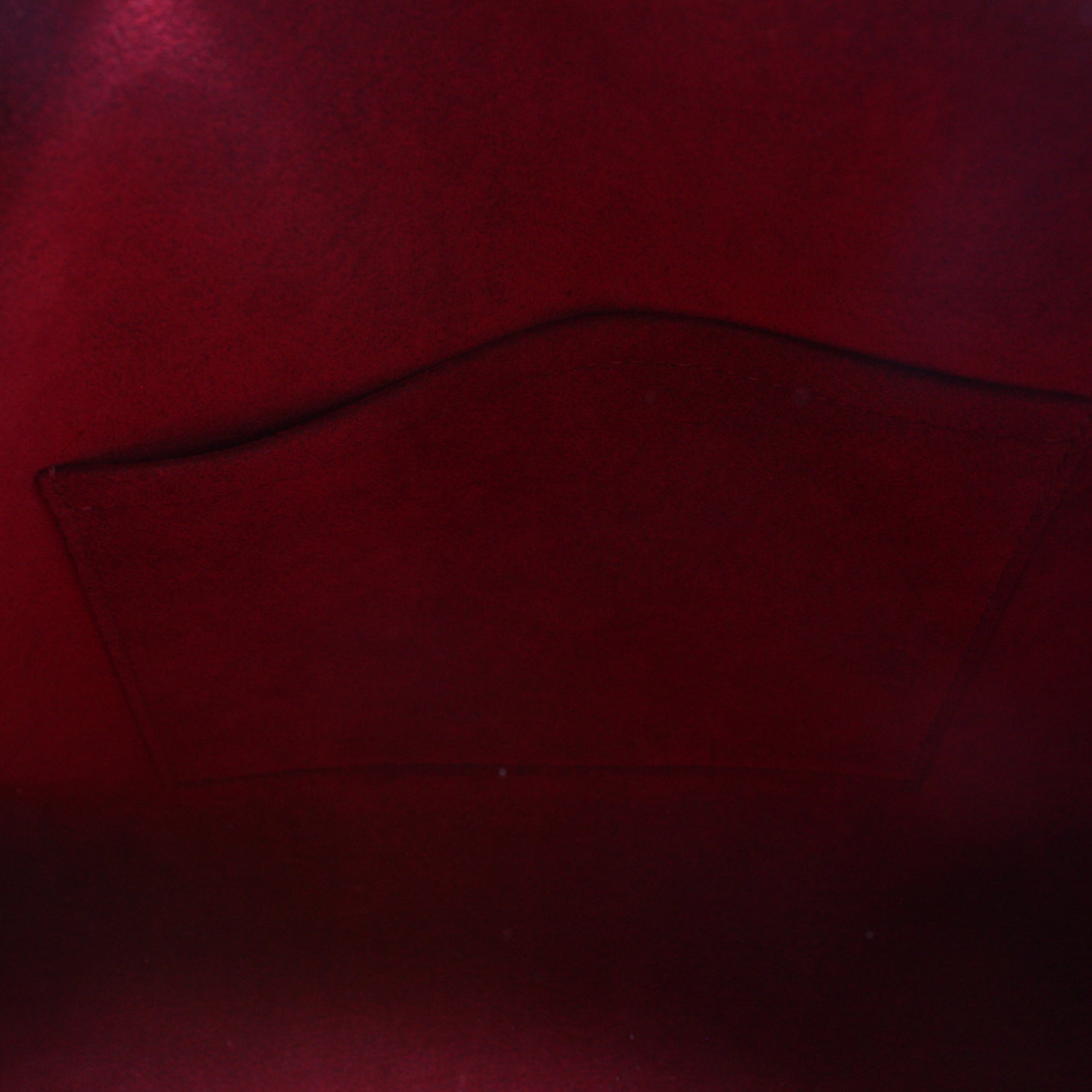 Exterior: The exterior coated canvas is free of any rips or cracks, there are minor scuffs throughout. The leather trim shows minor wear and discoloration. The gold corners show minor wear. The exterior features one clasp closure pocket.