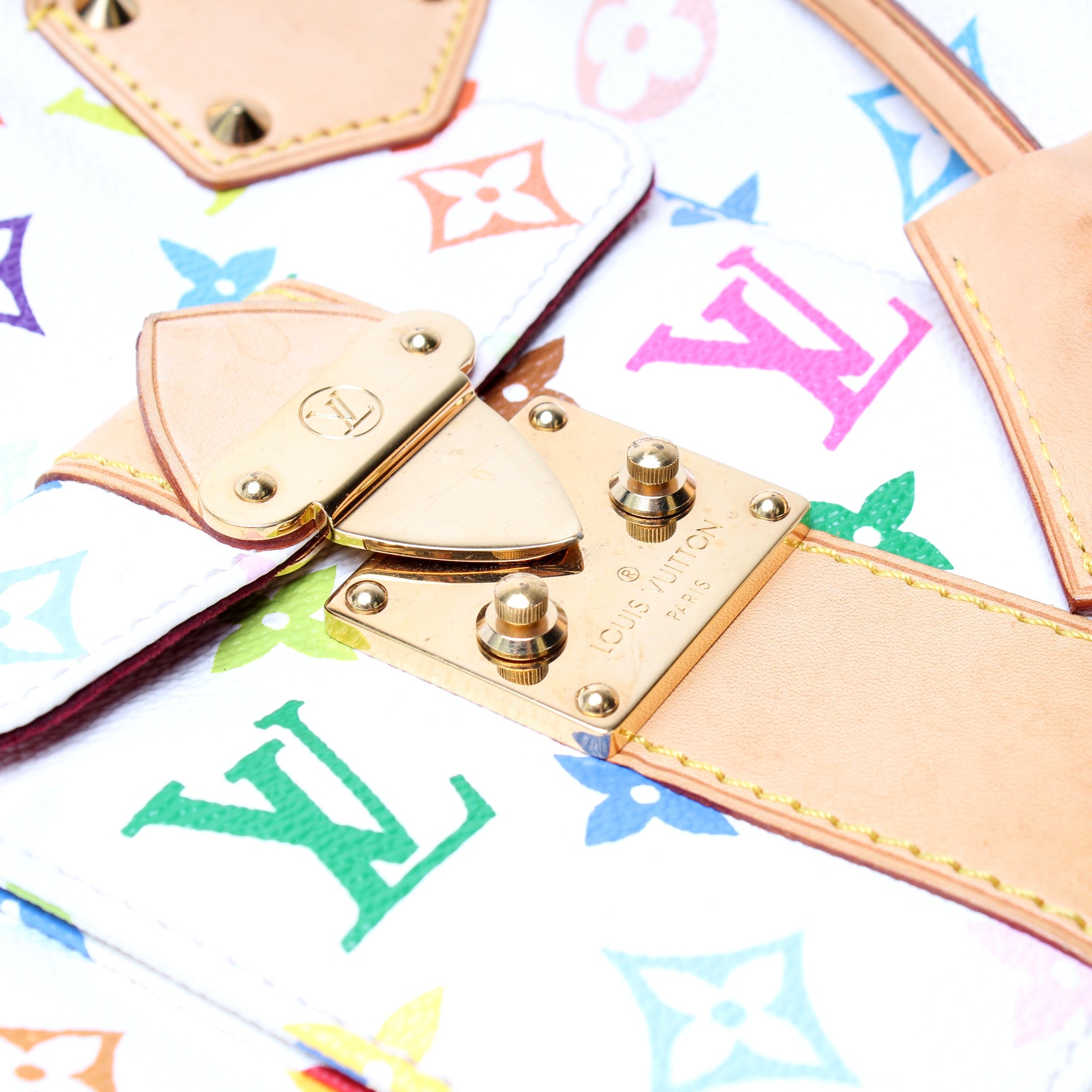 This Louis Vuitton Speedy 30is eye catching bag. The exterior is in the Louis Vuitton Multicolor Monogram coated canvas.