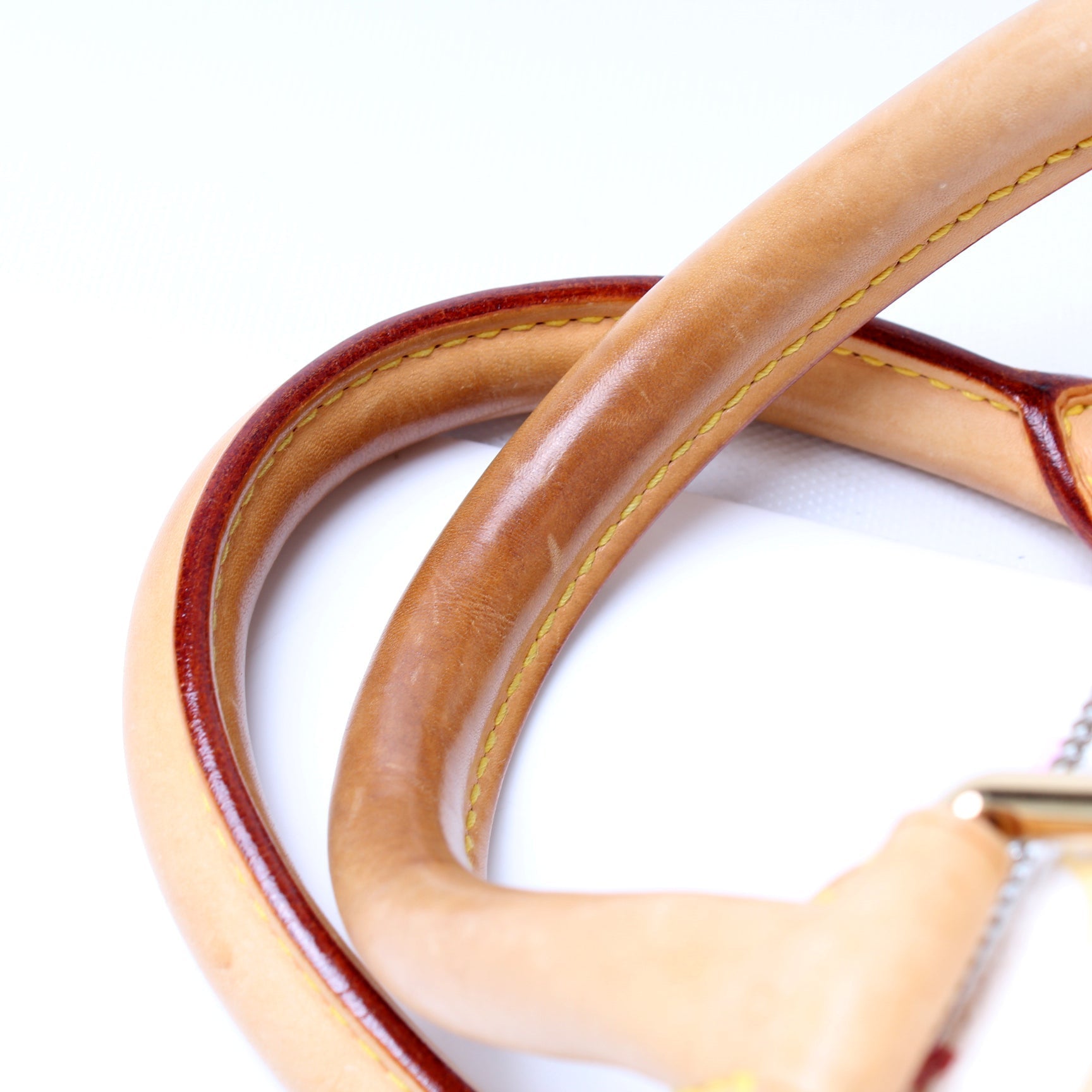 Exterior: The exterior coated canvas is free of any rips or cracks, there are light scuffs throughout. The corners show light wear. The exterior features one clasp closure pocket.