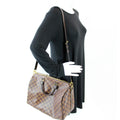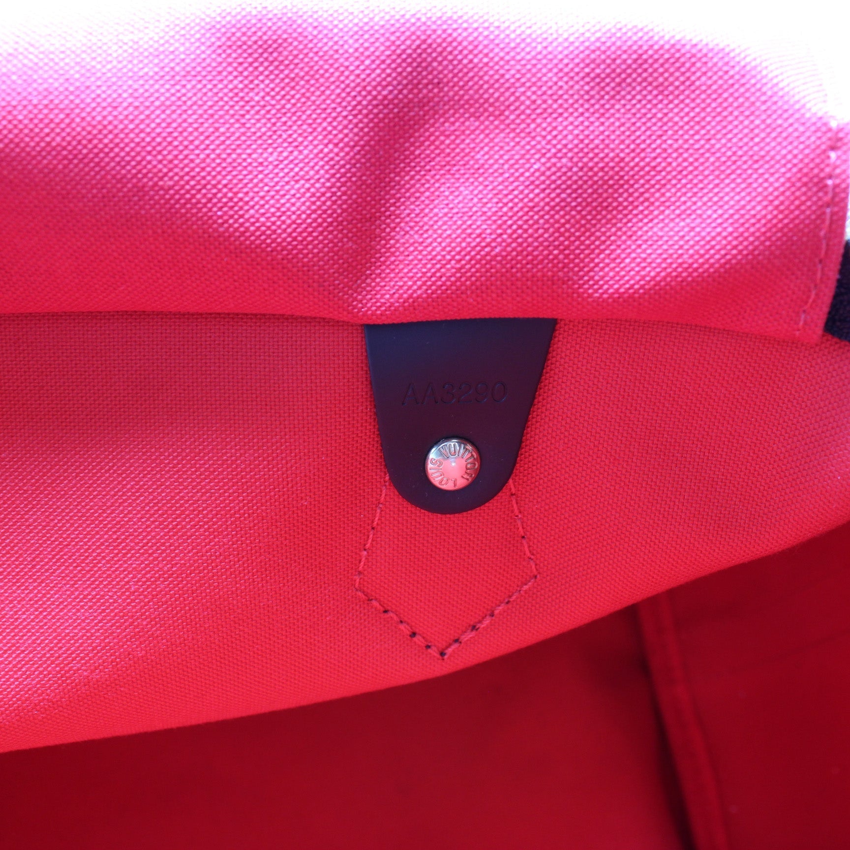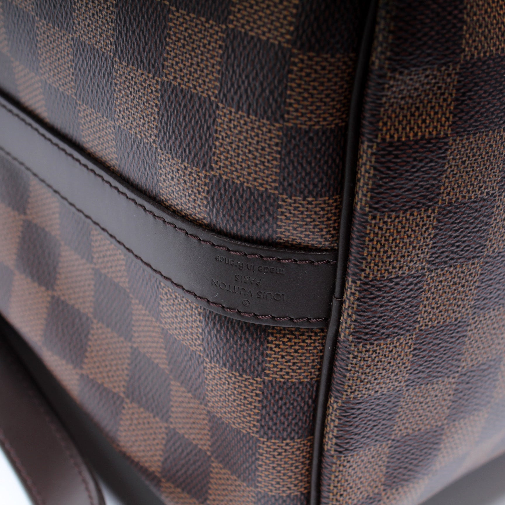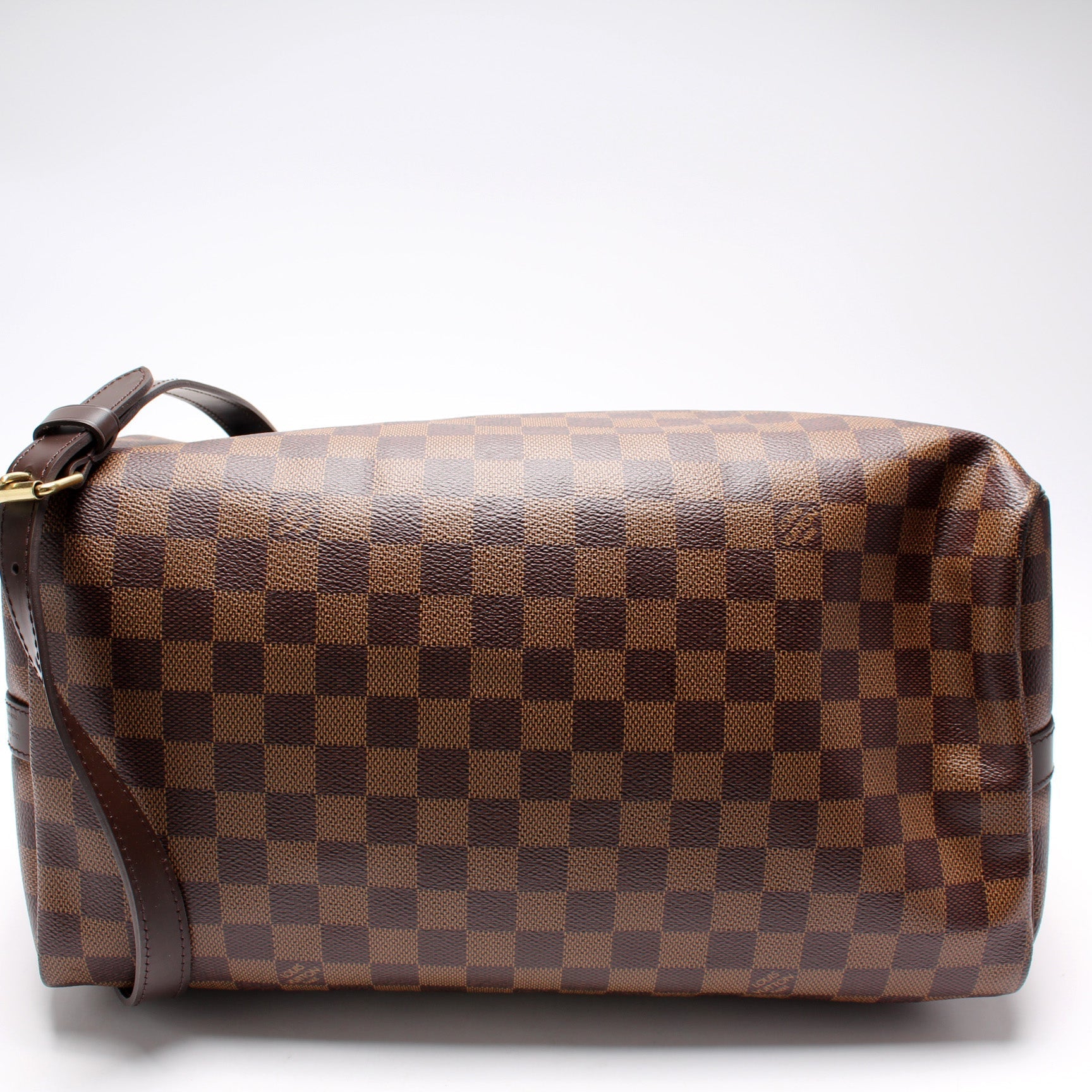 This Louis Vuitton Speedy 35 Bandouliereis eye catching bag. The exterior is in the classic Louis Vuitton Damier Ebene coated canvas.