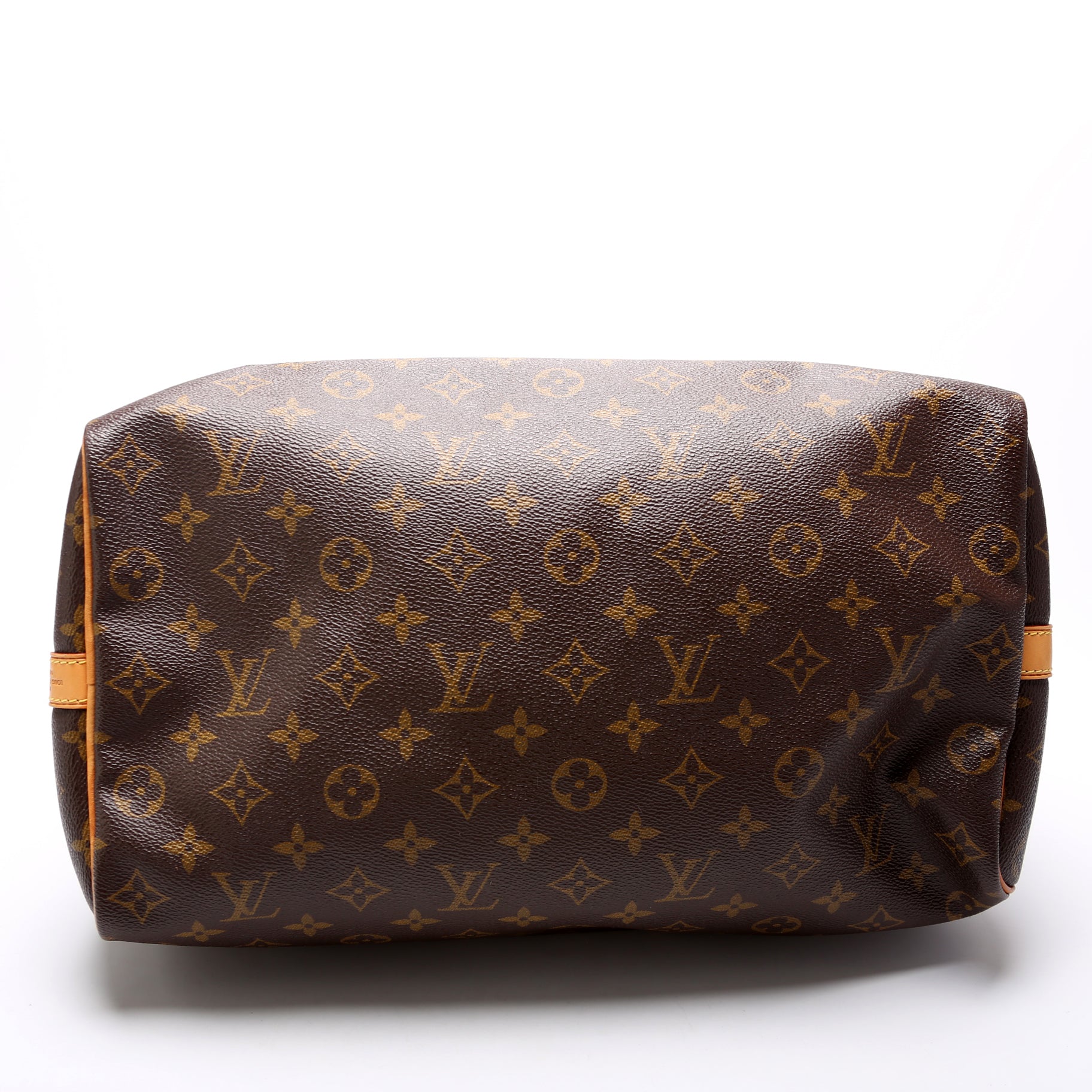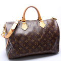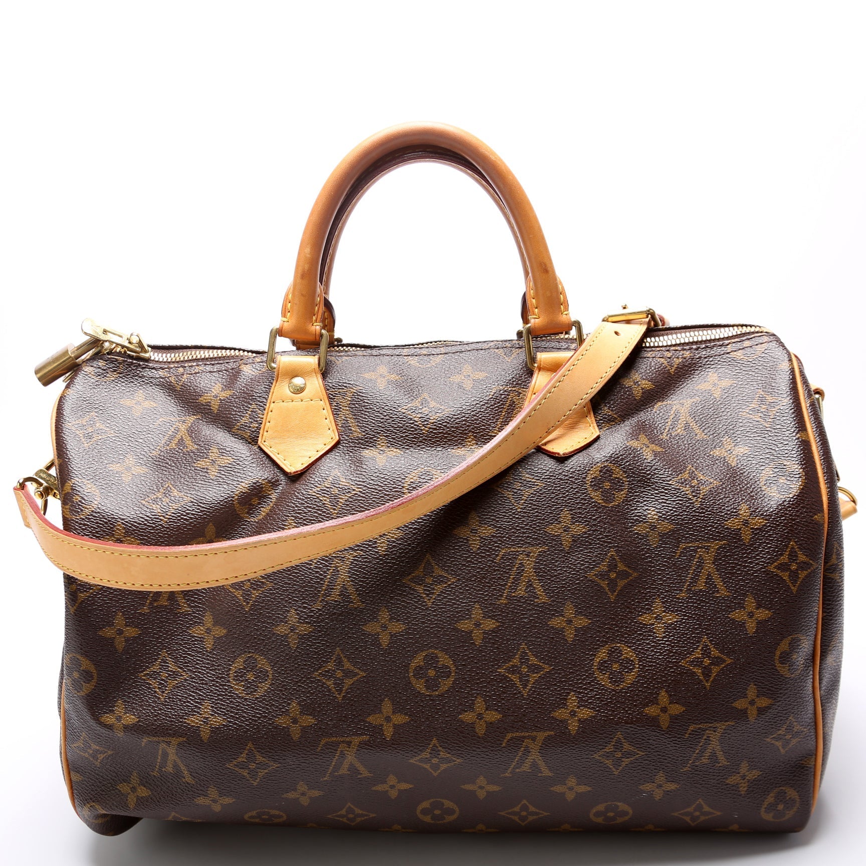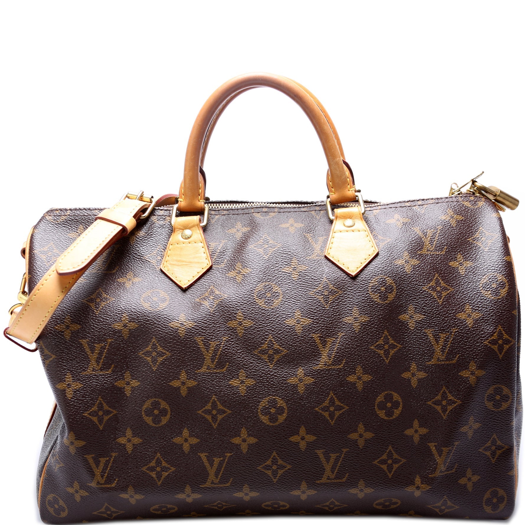This Louis Vuitton Speedy 35 Bandouliereis eye catching bag. The exterior is in the classic Louis Vuitton Monogram coated canvas.