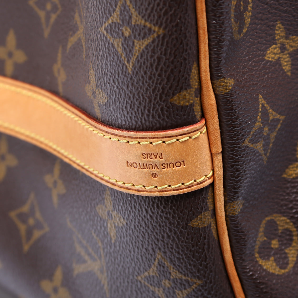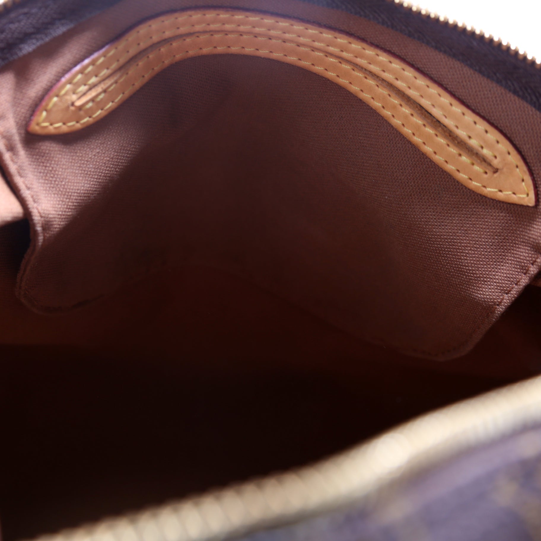 Exterior: The exterior Monogram coated canvas is free from major wear. The leather trim shows minor discoloration. The coated canvas shows minor fading.
