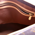 Exterior: The exterior Monogram coated canvas is free from major wear. The corners and leather trim show light wear and water spots.