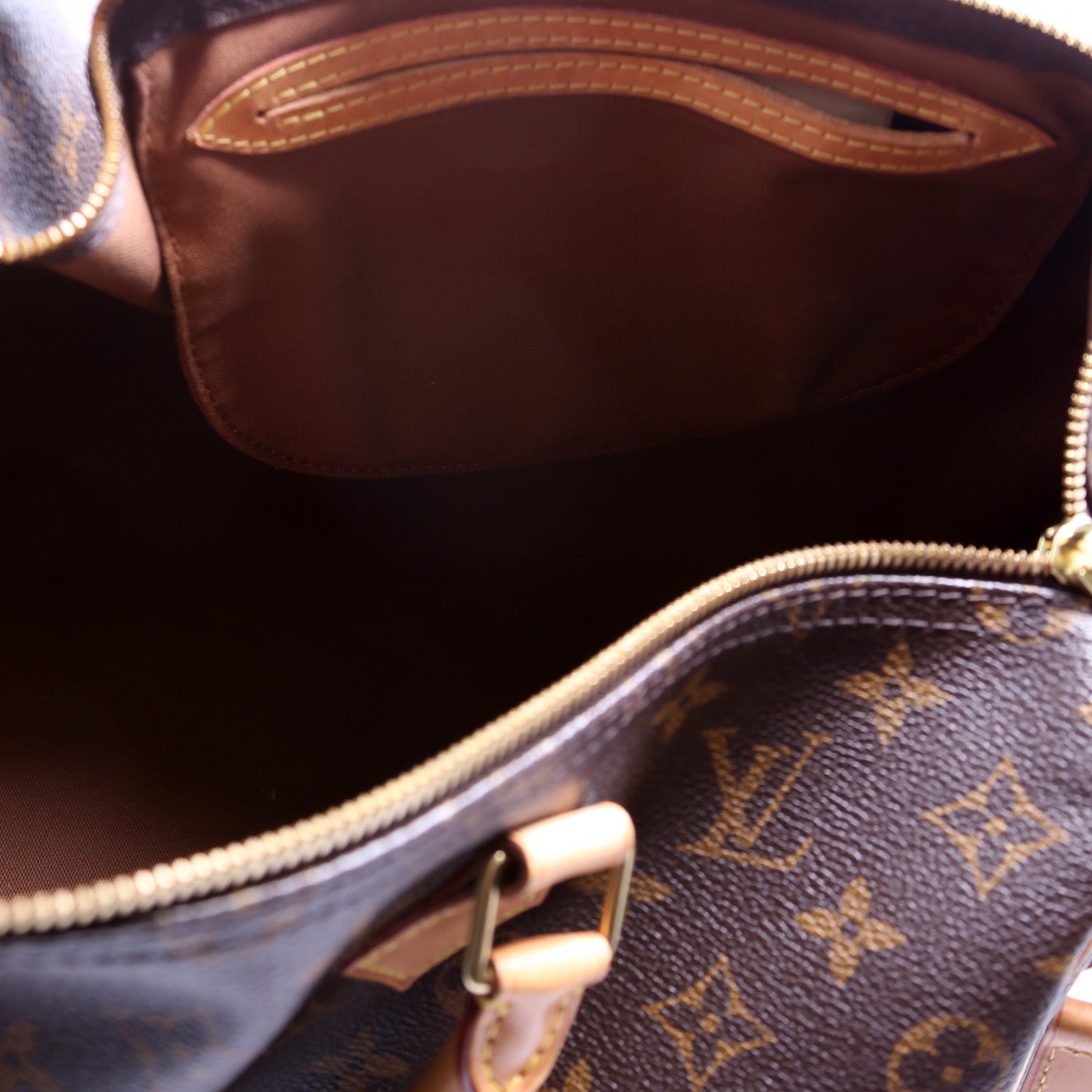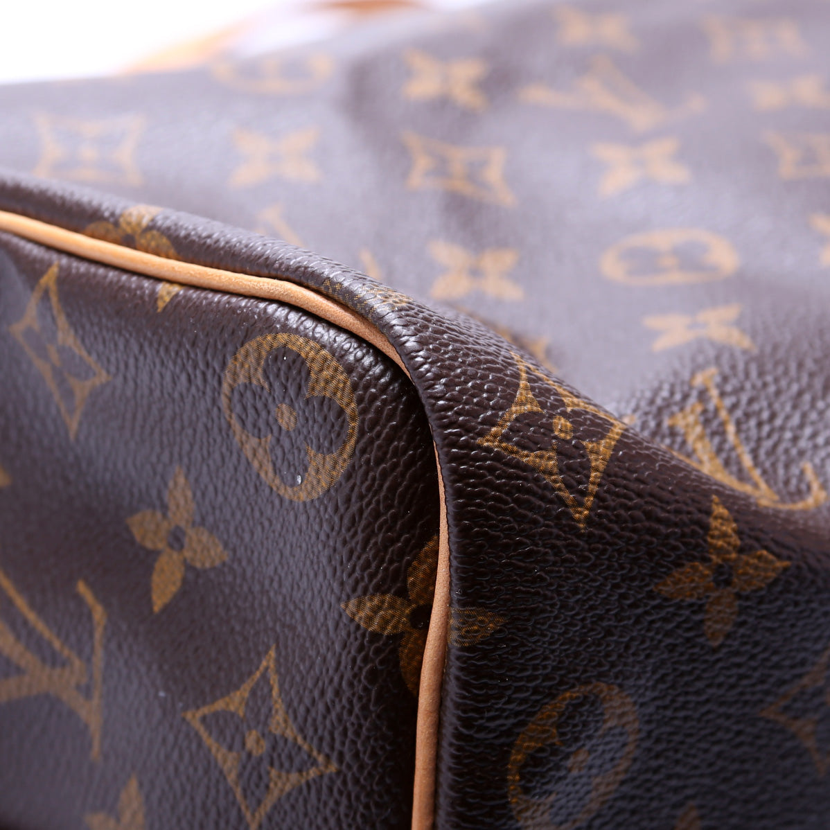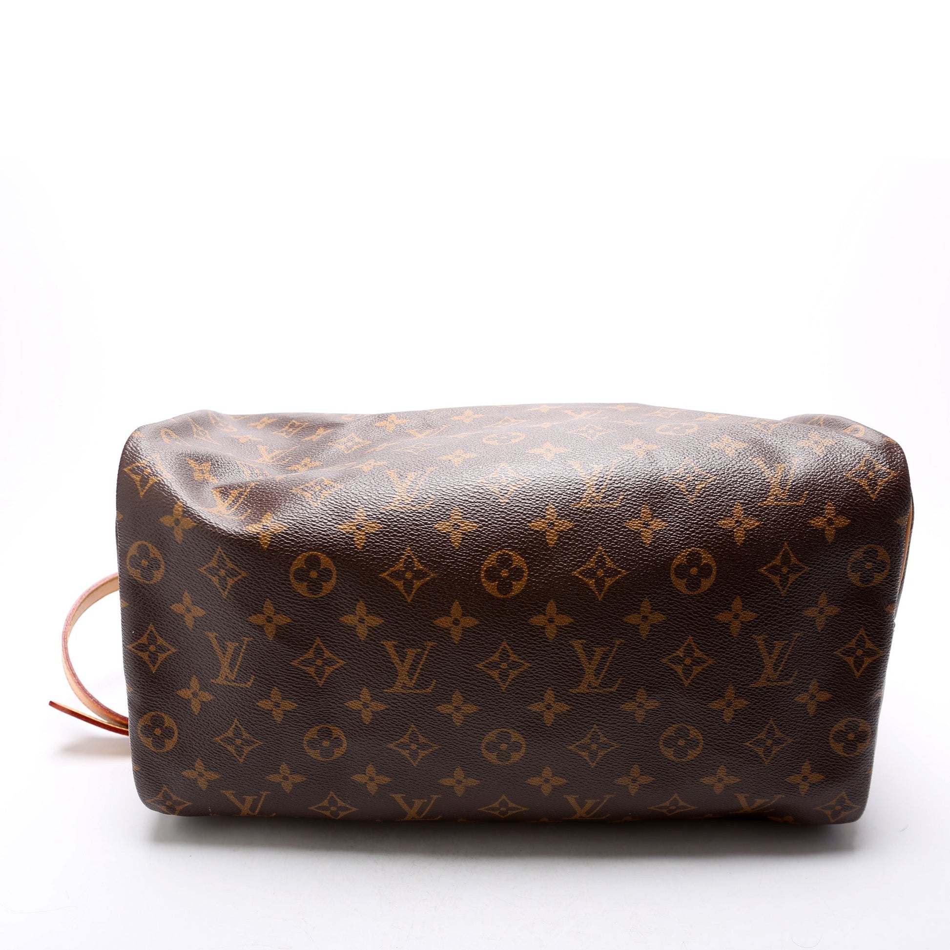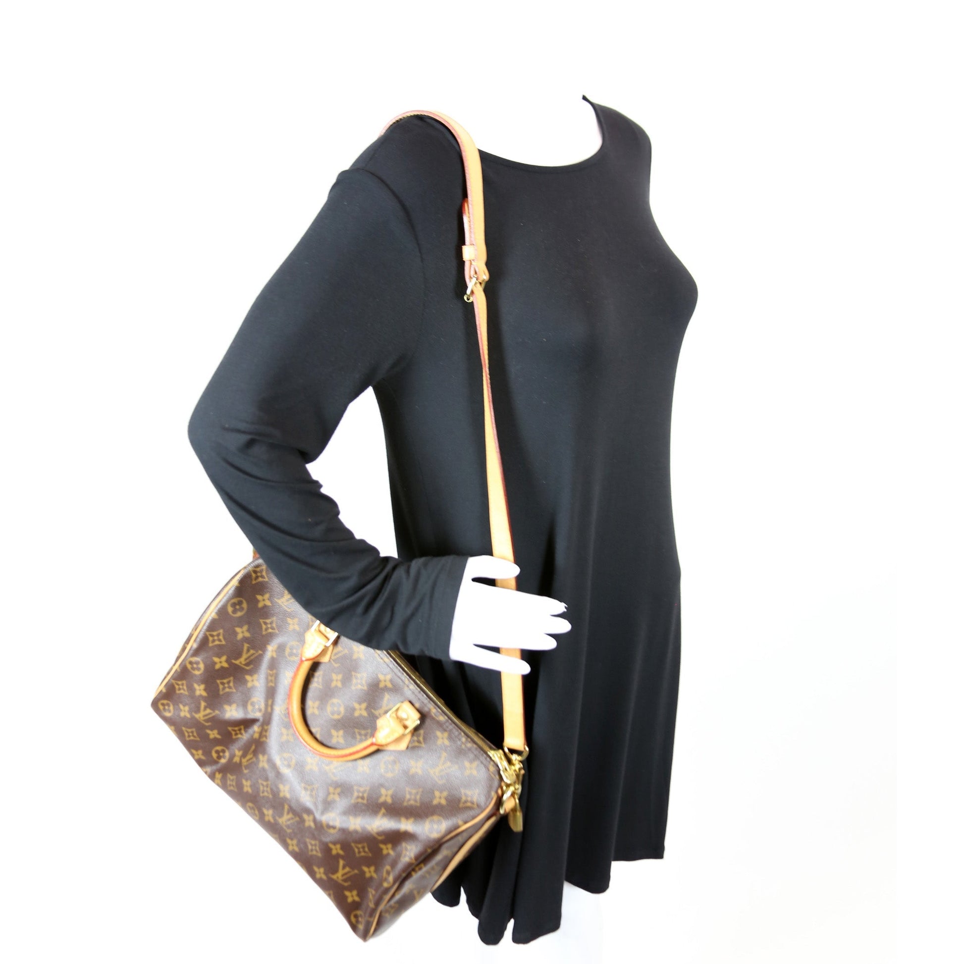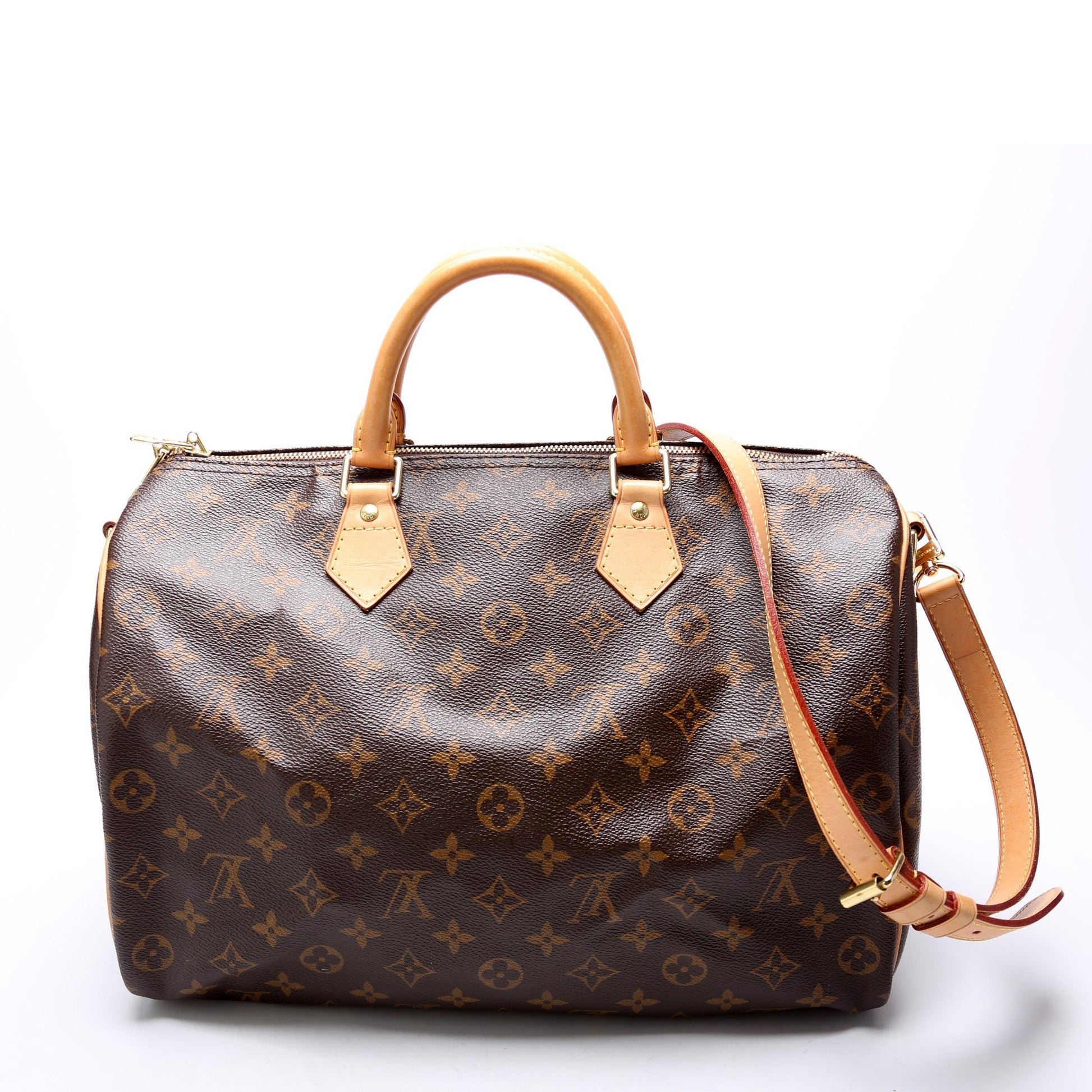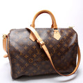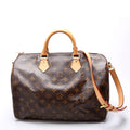 This Louis Vuitton Speedy 35is eye catching bag. The exterior is in the classic Louis Vuitton Monogram coated canvas.
