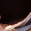 Exterior: The exterior coated canvas is free of any rips or cracks. The leather trim shows minor wear and water spots.
