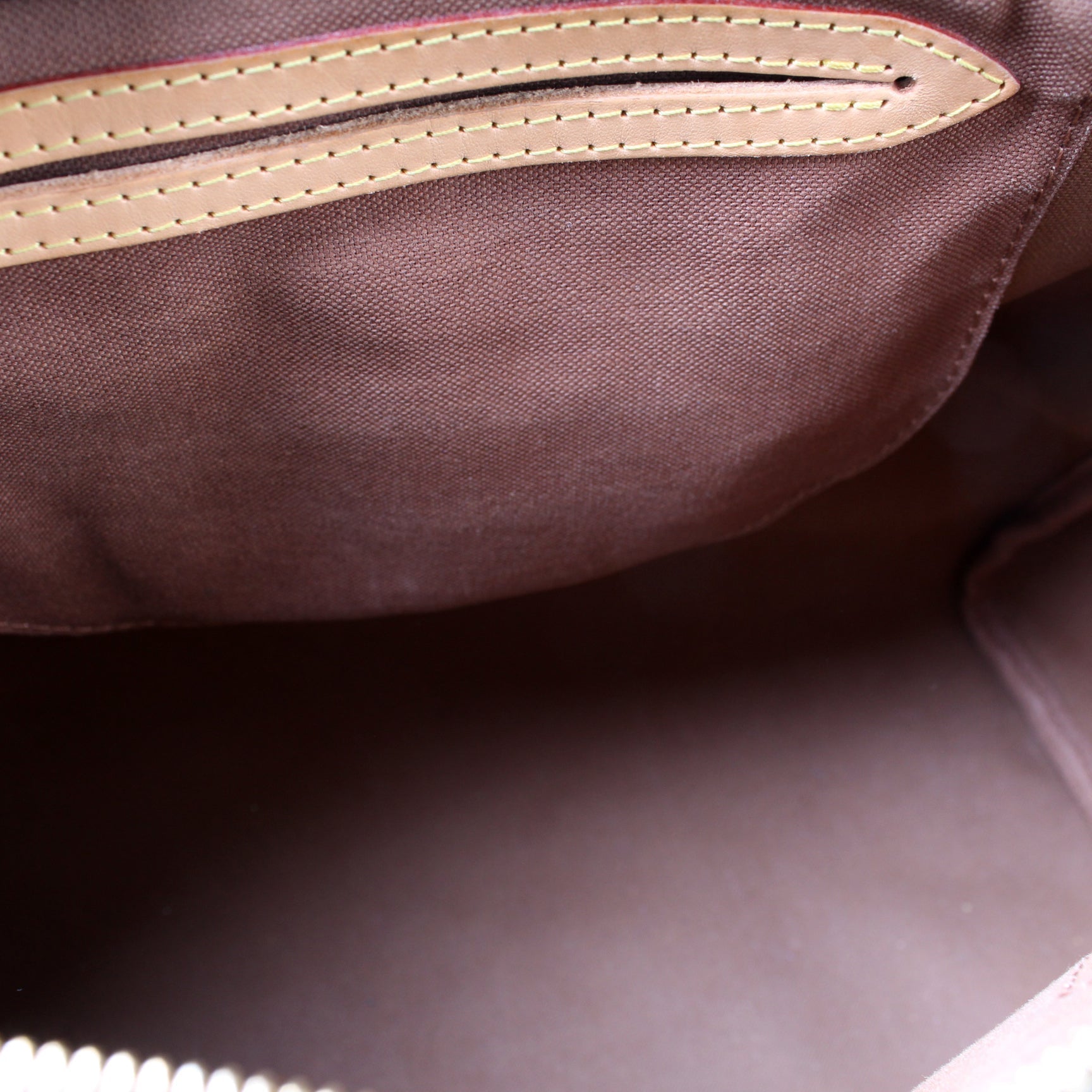 Exterior: The exterior Monogram coated canvas is free of any rips or cracks. The corners and leather trim show minor signs of wear as pictured. The pipping shows minor wear.