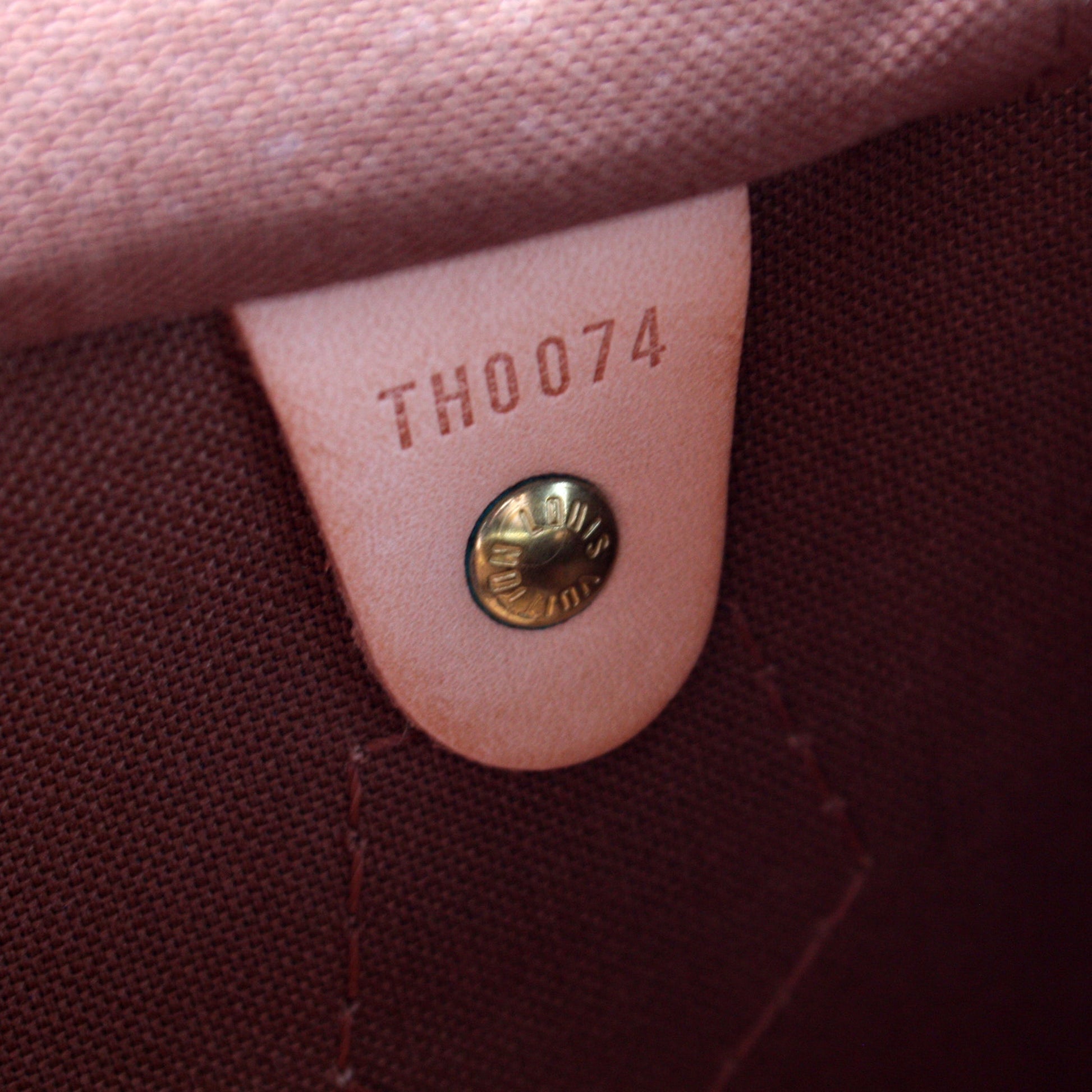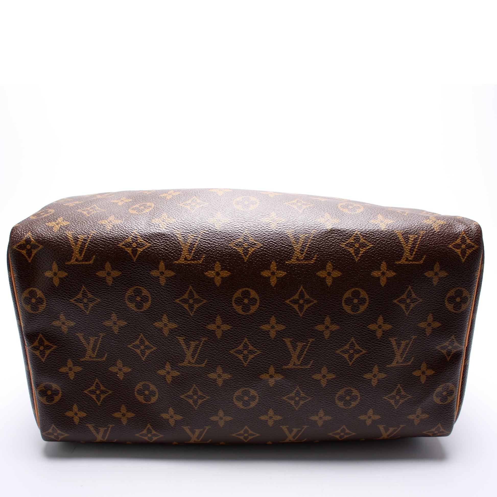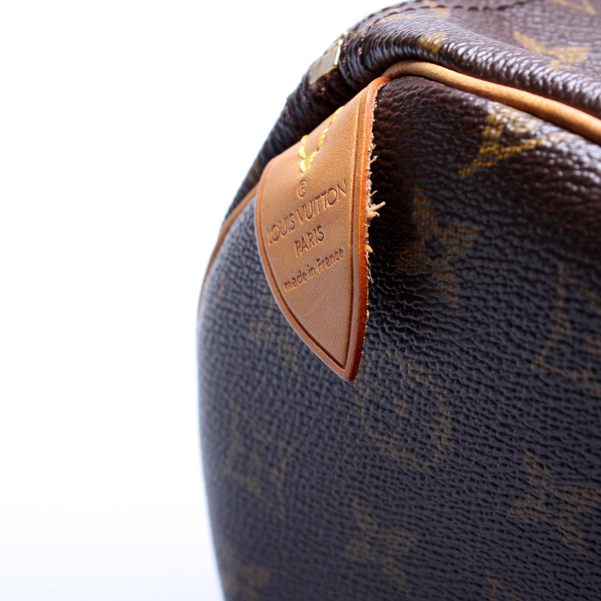 This Louis Vuitton Speedy 35is eye catching bag. The exterior is in the classic Louis Vuitton Monogram coated canvas.