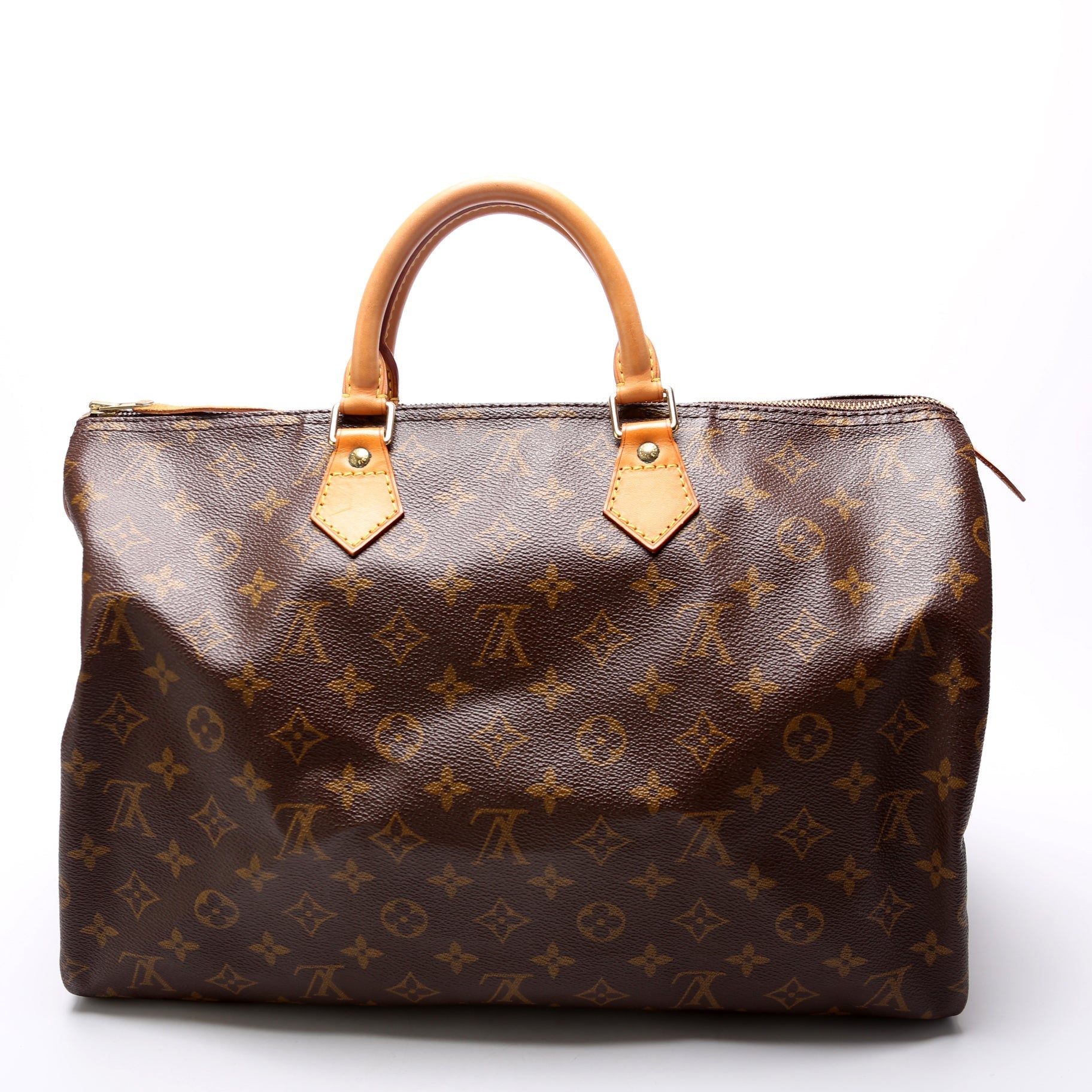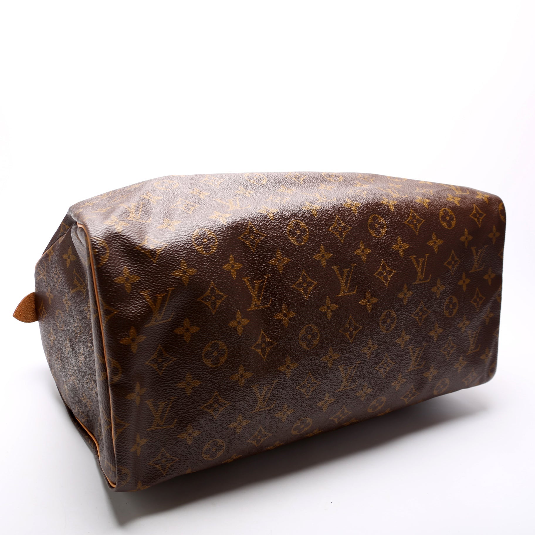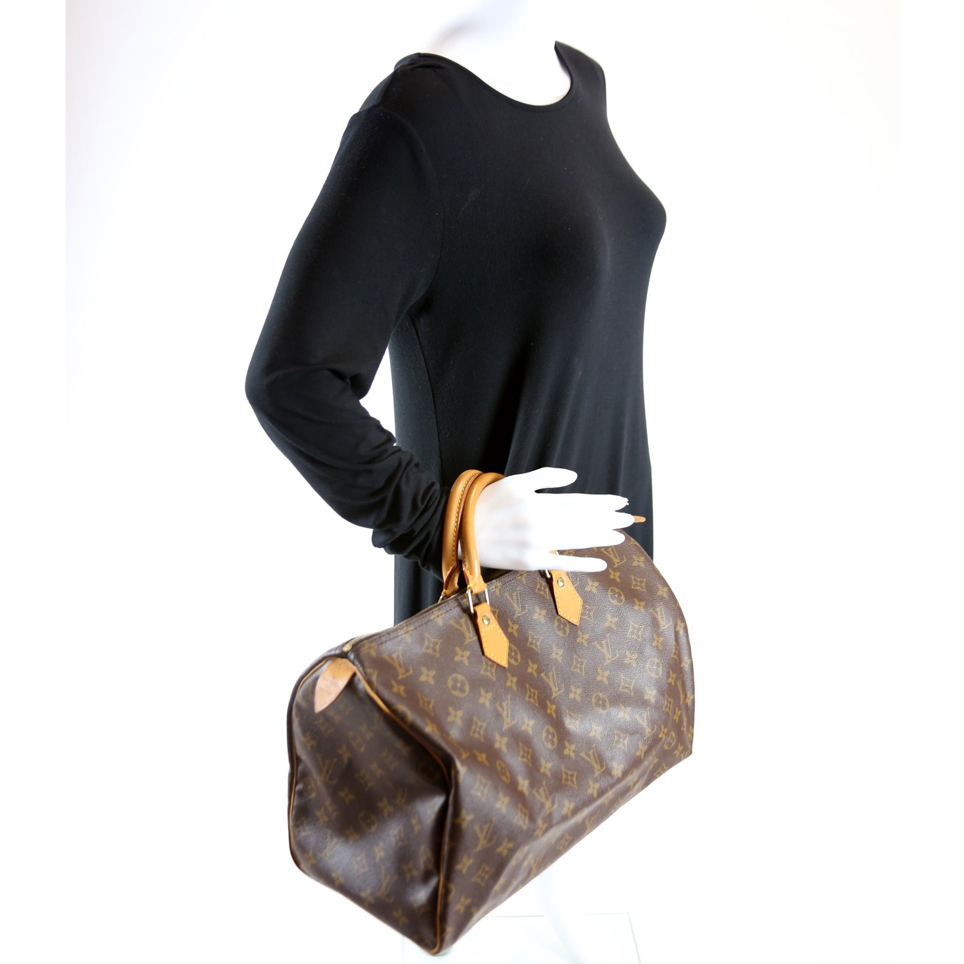 This Louis Vuitton Speedy 40 is d 100% . The exterior is in the classic Louis Vuitton Monogram coated canvas.