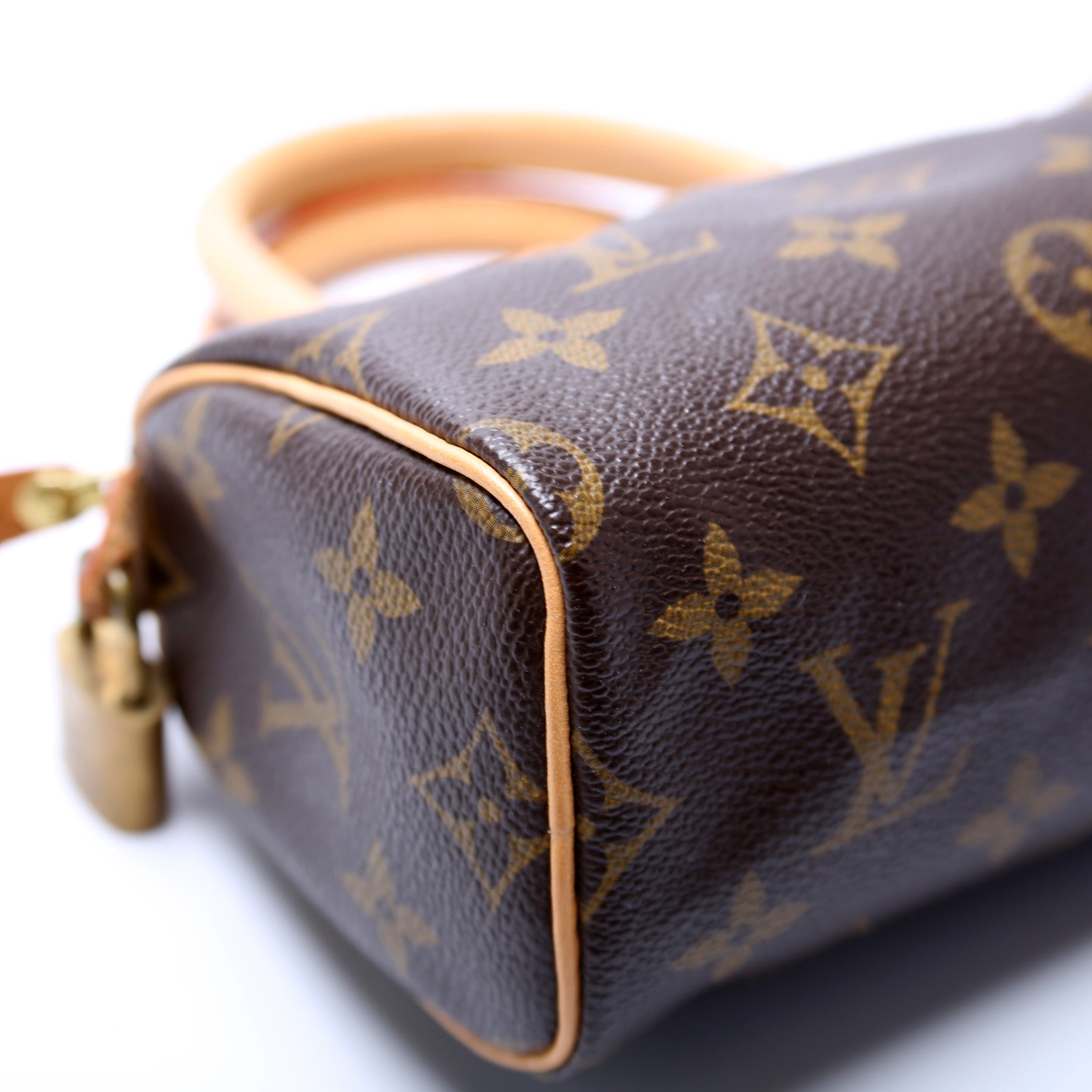 This Louis Vuitton Speedy Mini HL is d 100% . The exterior is in the classic Louis Vuitton Monogram coated canvas.