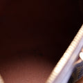 Exterior: The exterior coated canvas is free of any rips or cracks. The corners and leather trim show light wear and discoloration.