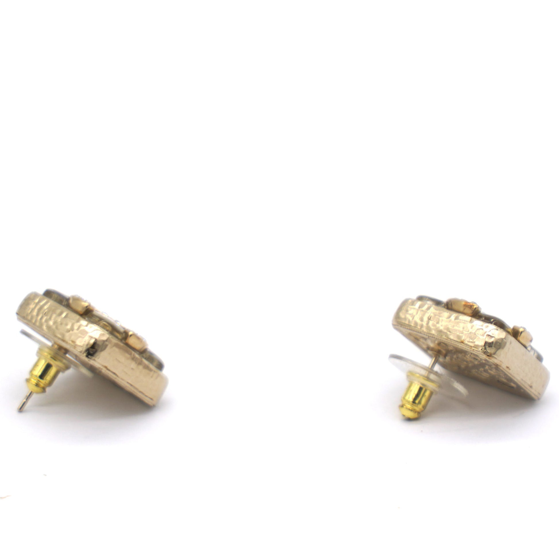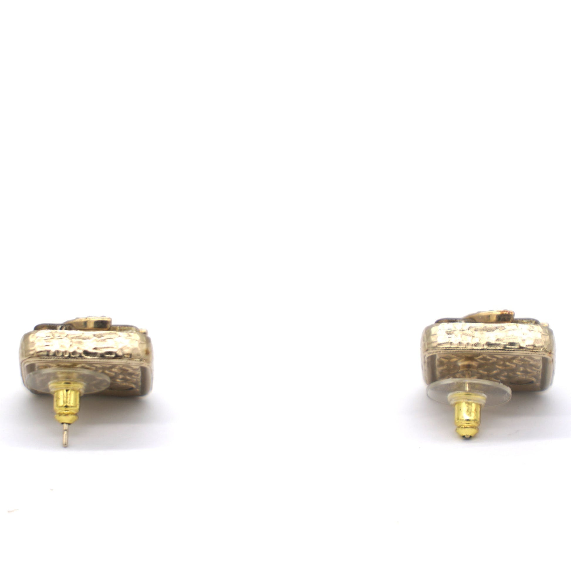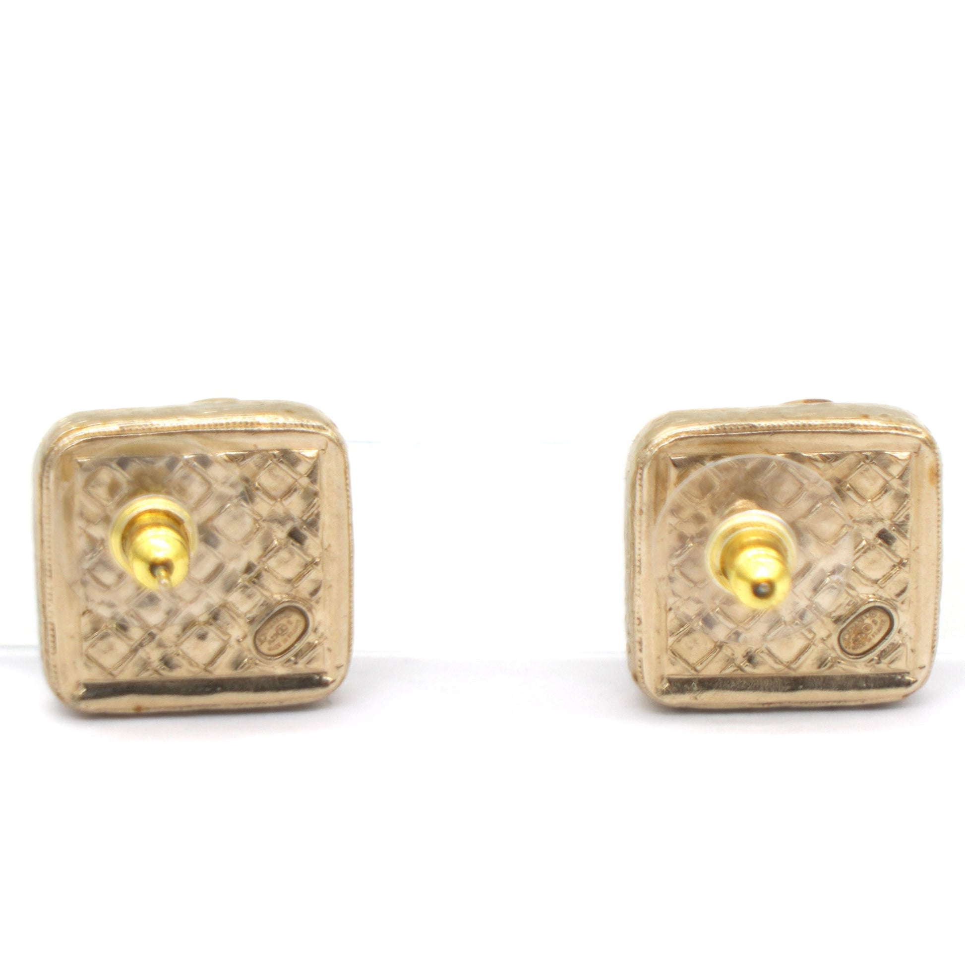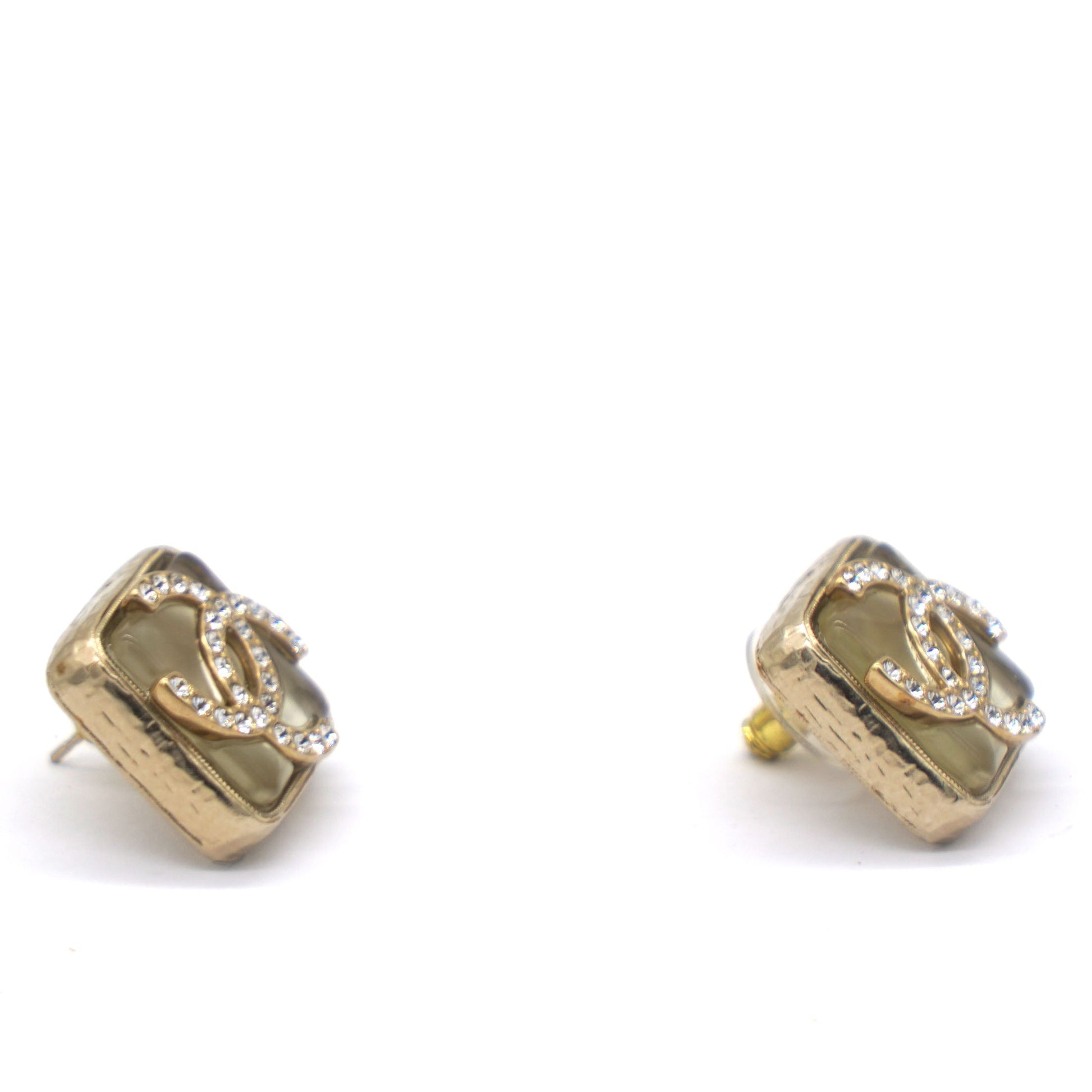 Chanel Square Rhinestone CC Logo Earrings