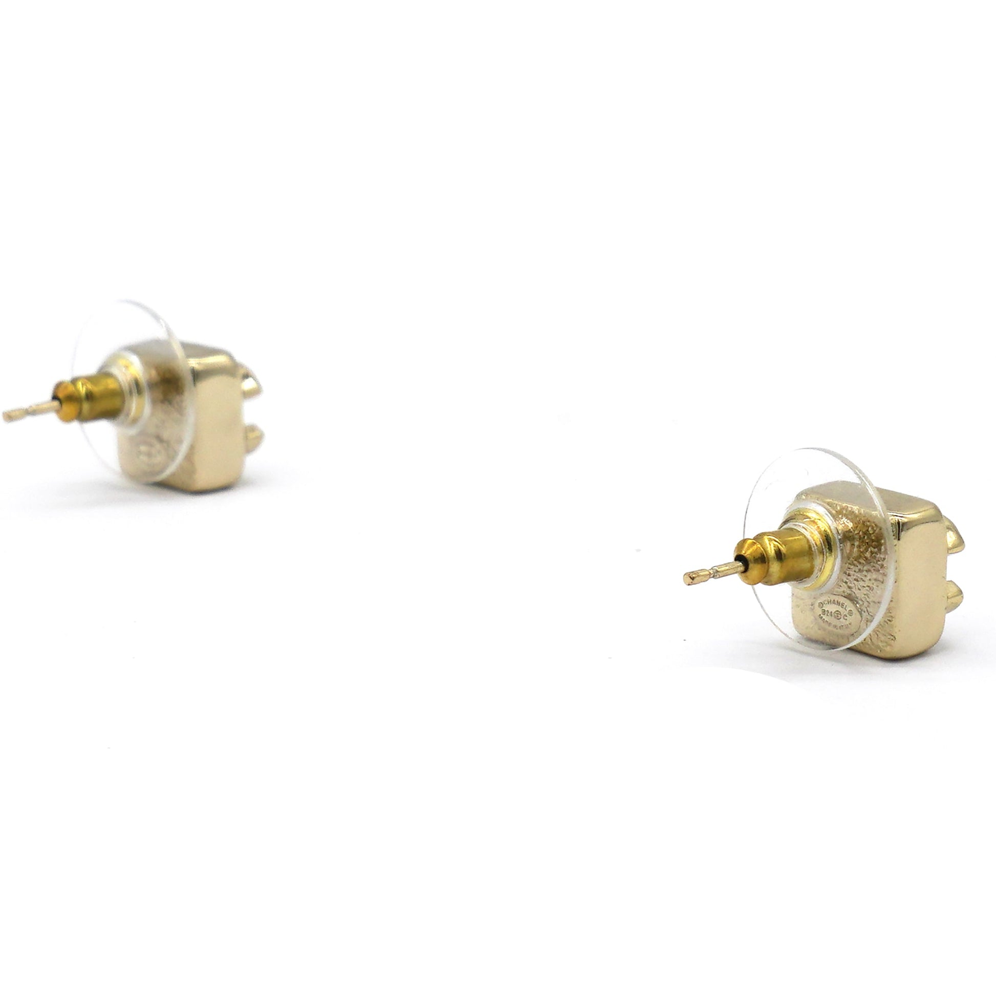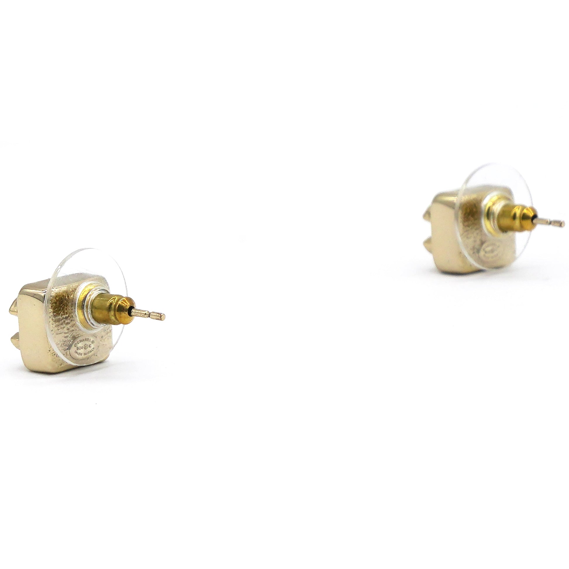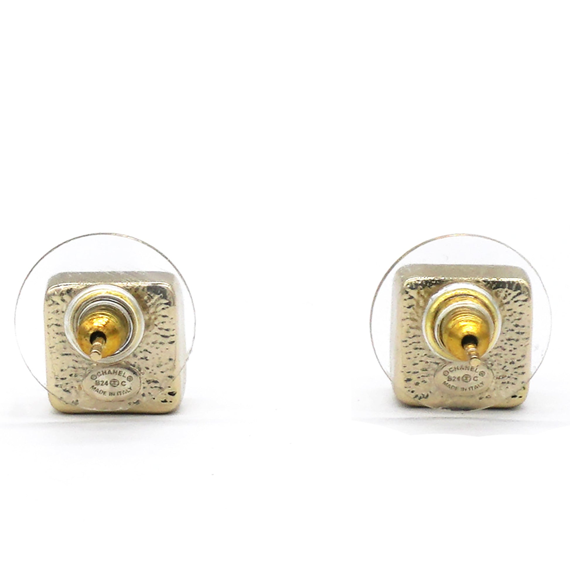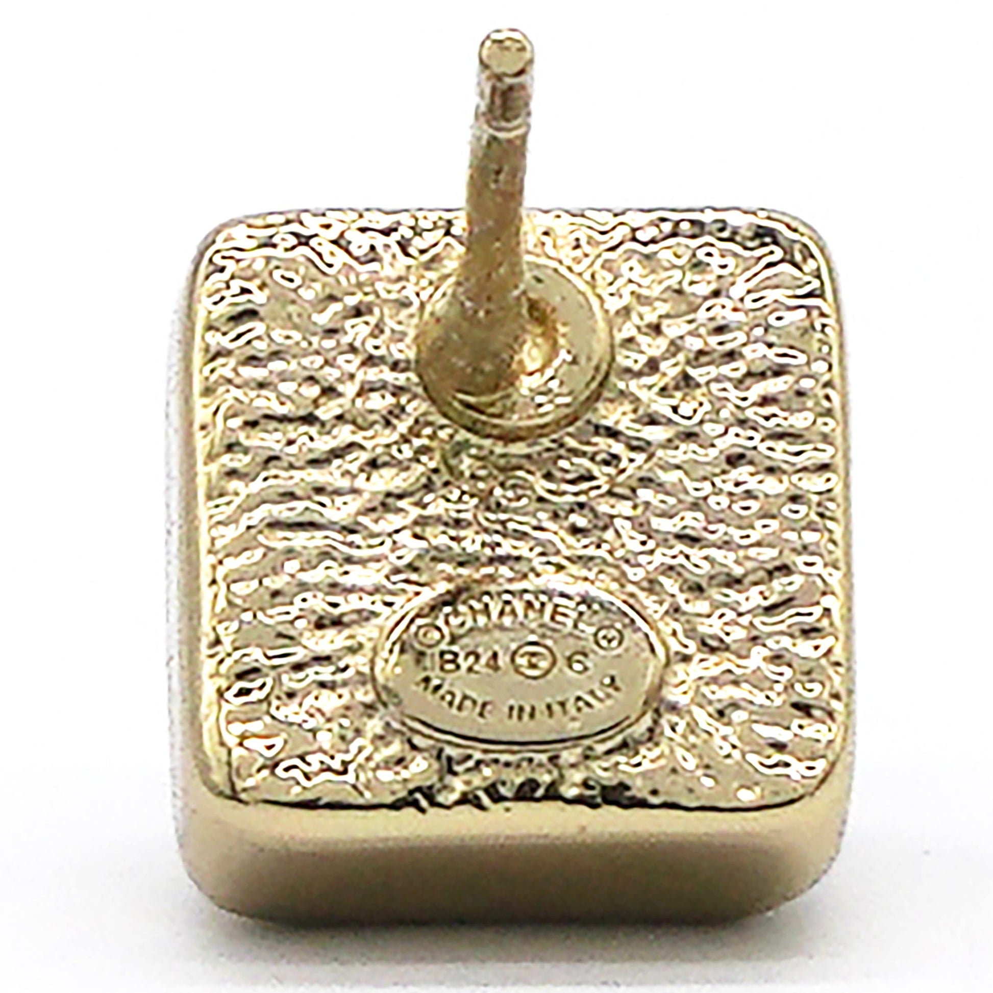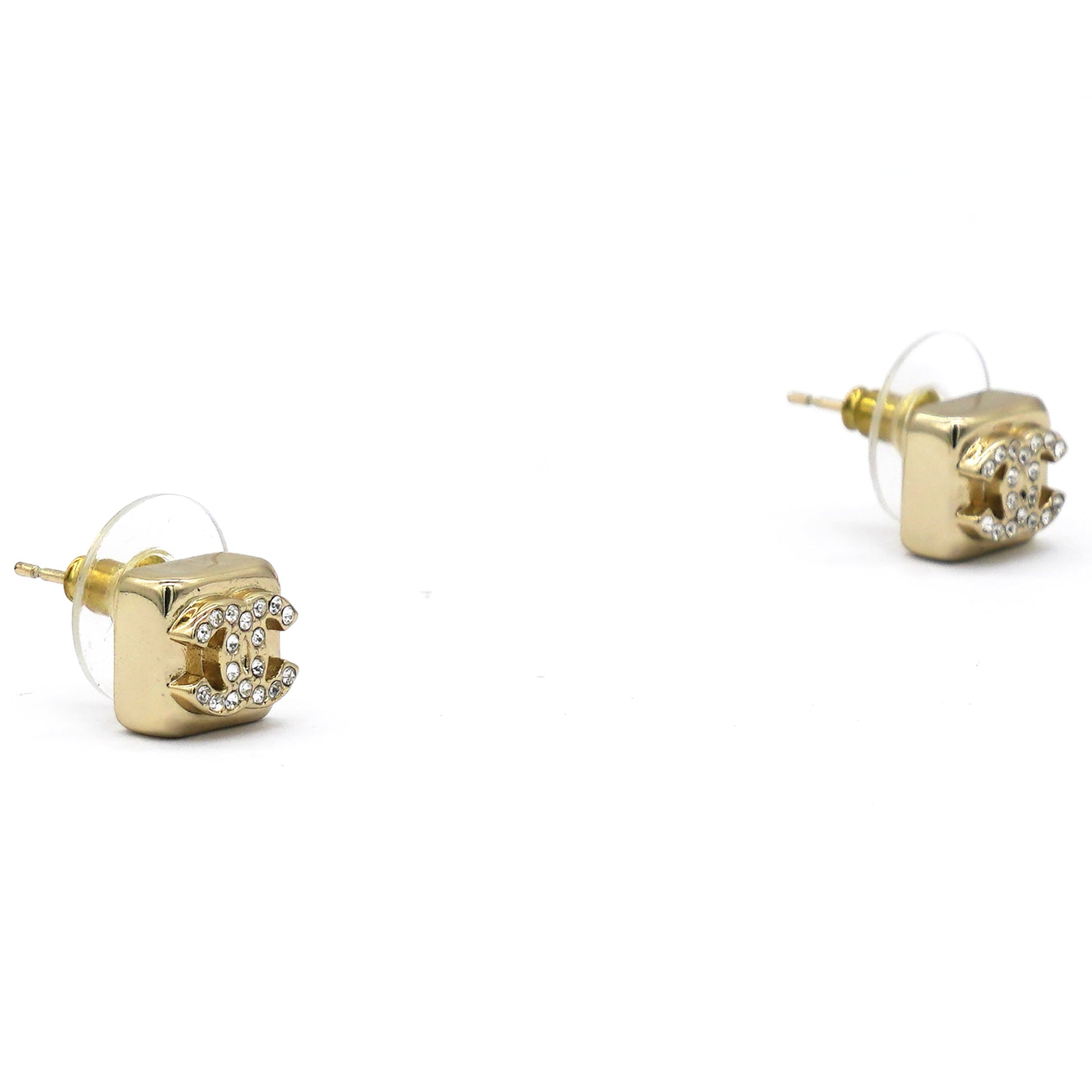 Chanel Square Rhinestone Gold CC Logo Earrings