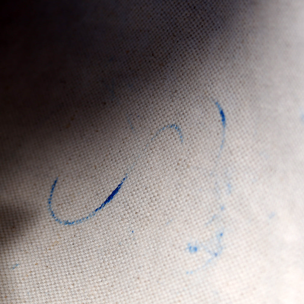 Interior: The interior has minor discoloration and pen marks. The interior features one removable pouch.