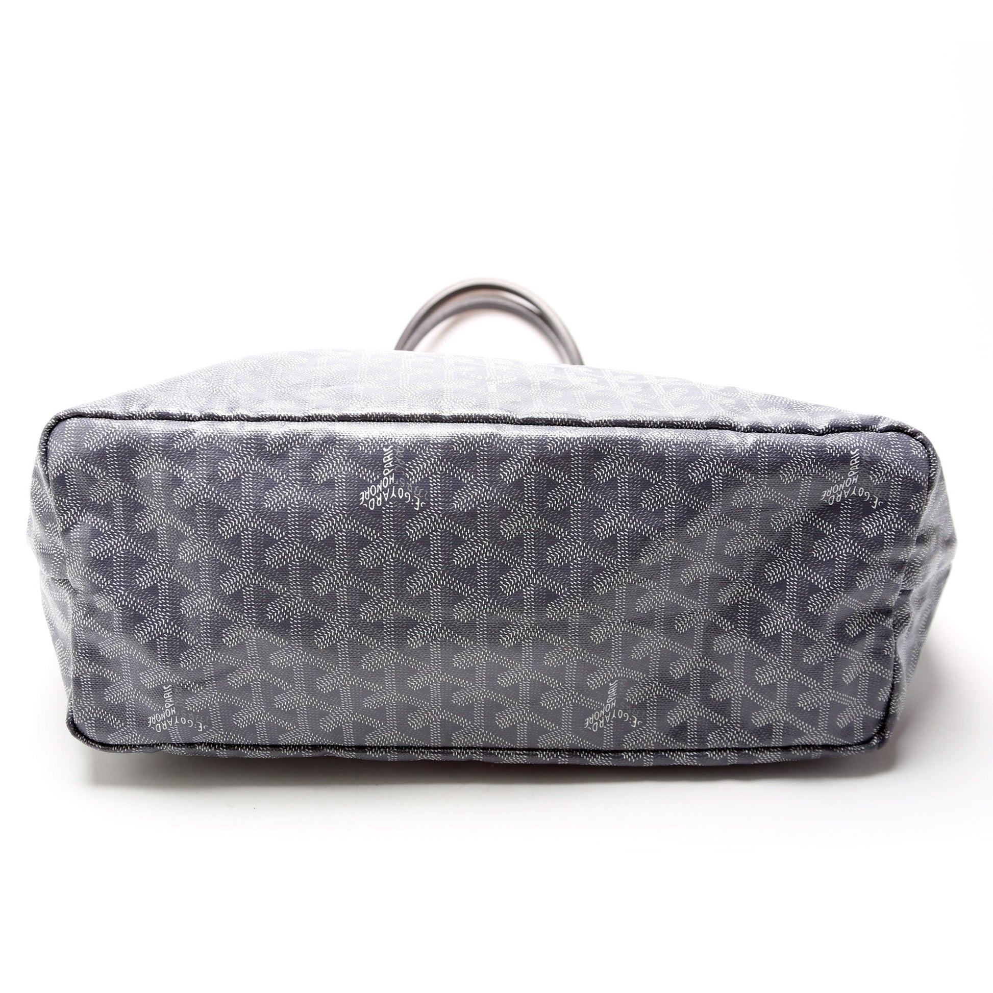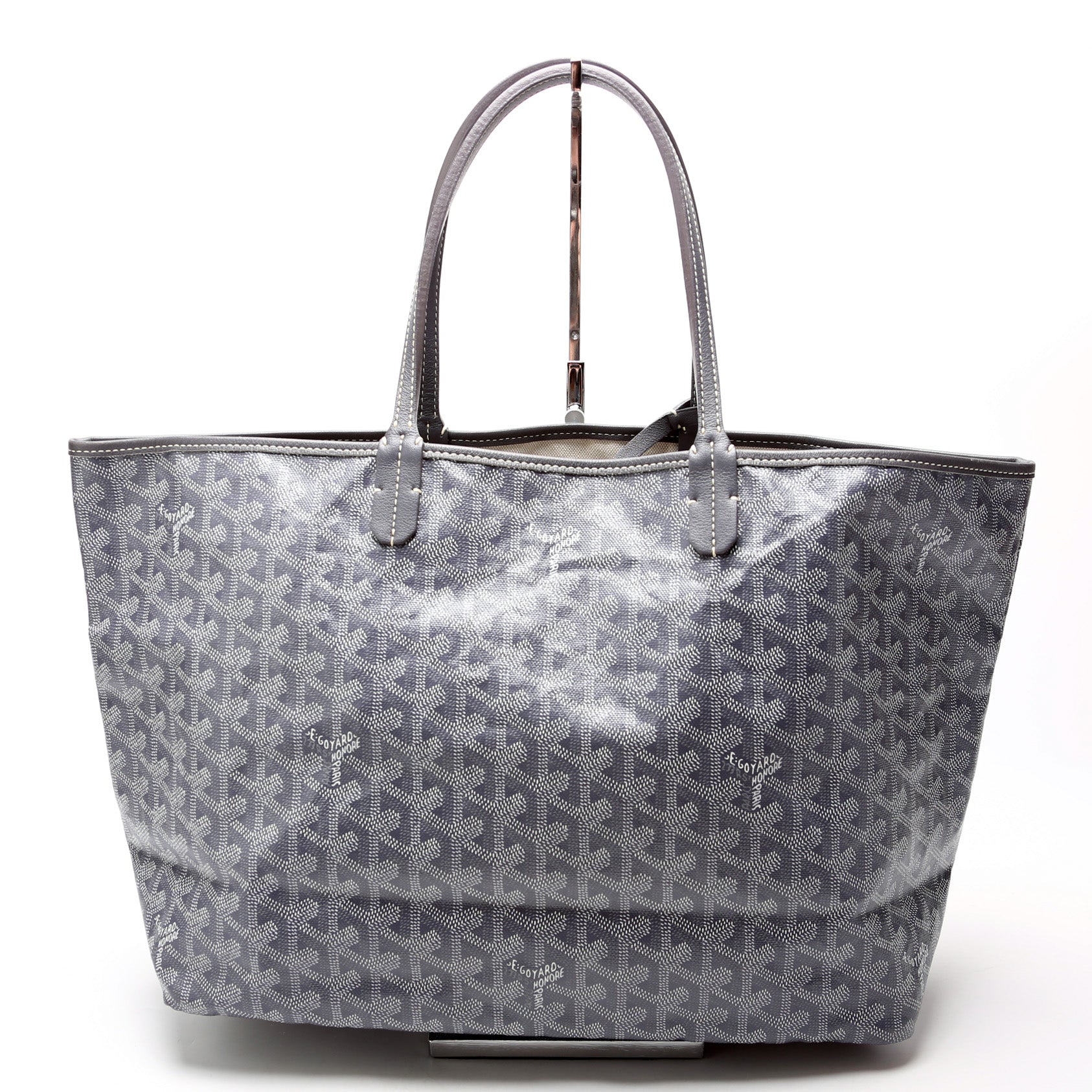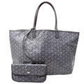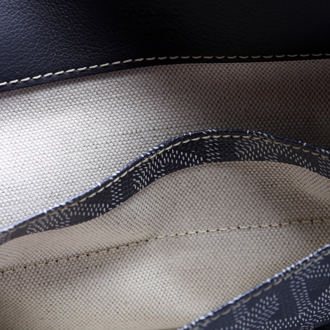 This Goyard St Louis PMis eye catching bag. The exterior is in the classic Goyard St Louis coated canvas.