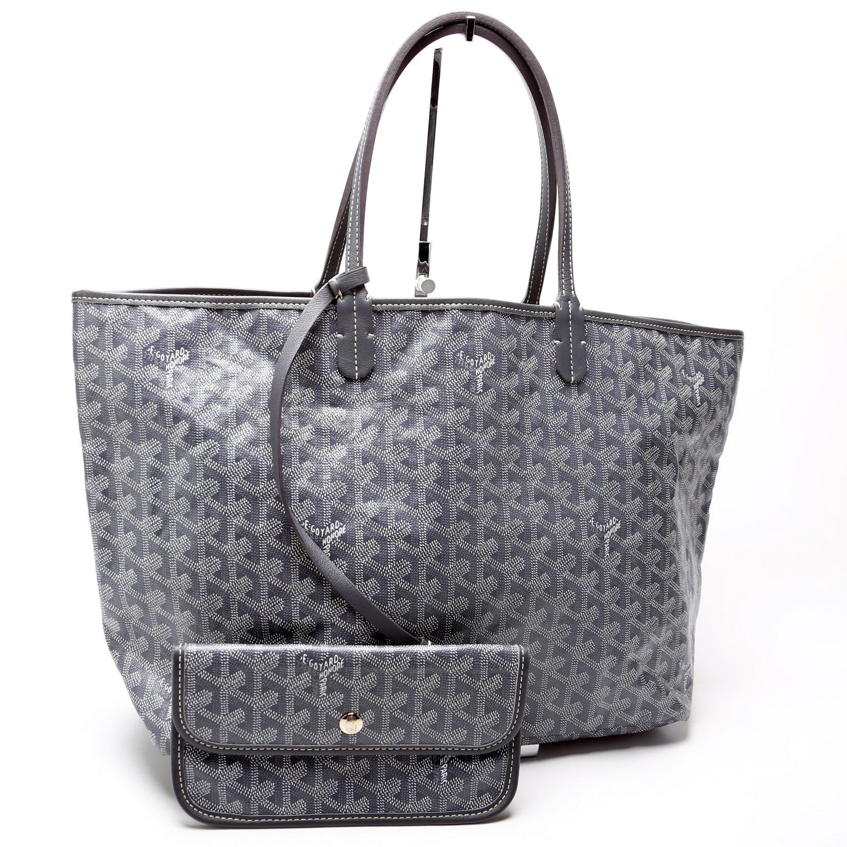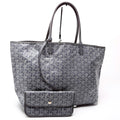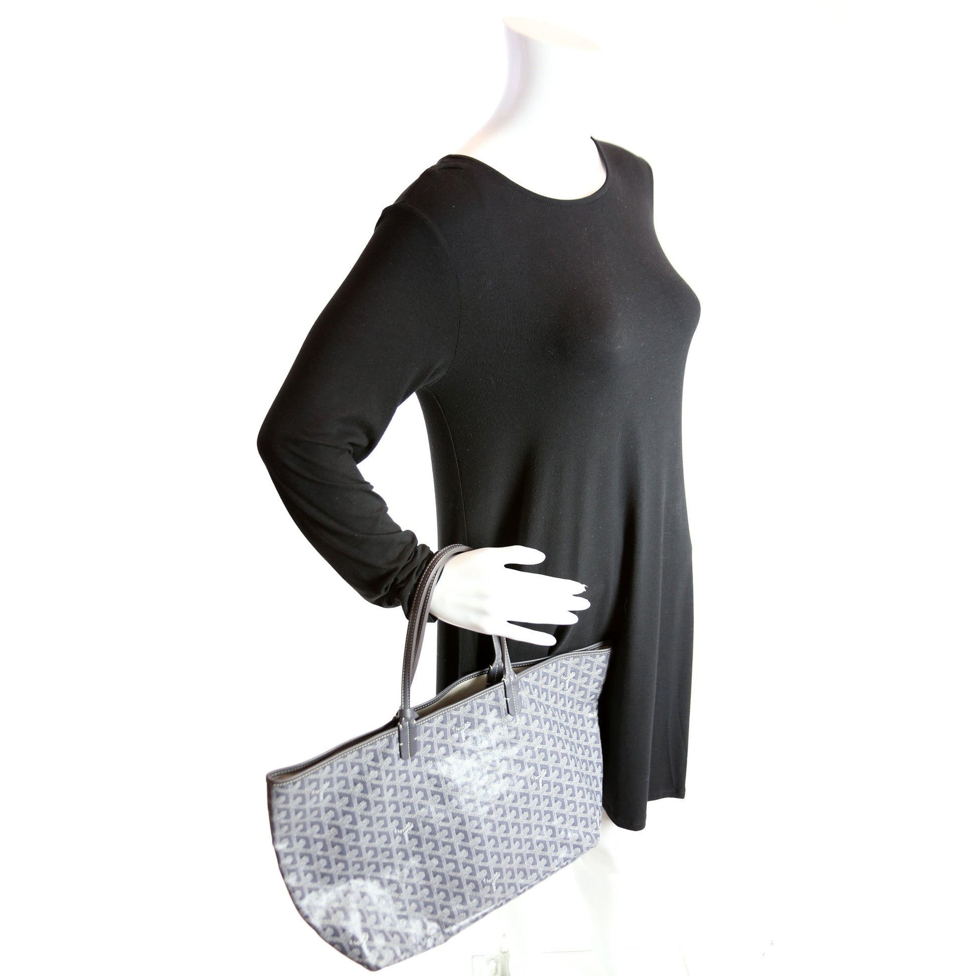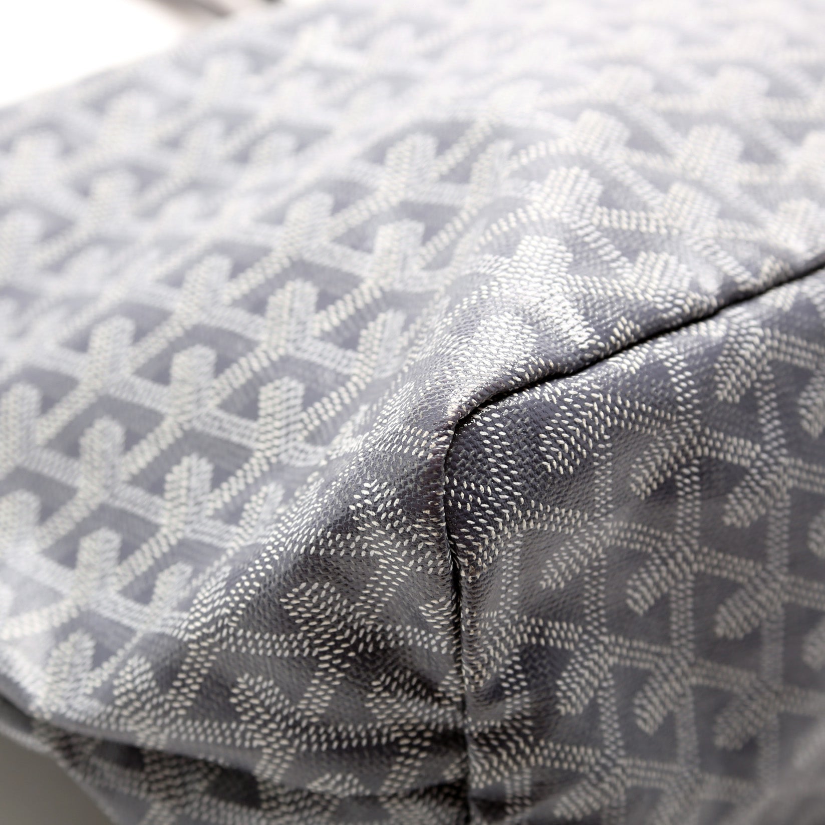 This Goyard St Louis PMis eye catching bag. The exterior is in the classic Goyard St Louis coated canvas.