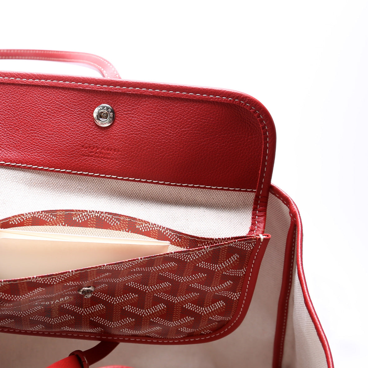 This Goyard St Louis PMis eye catching bag. The exterior is in the classic Goyard Special Colors coated canvas.