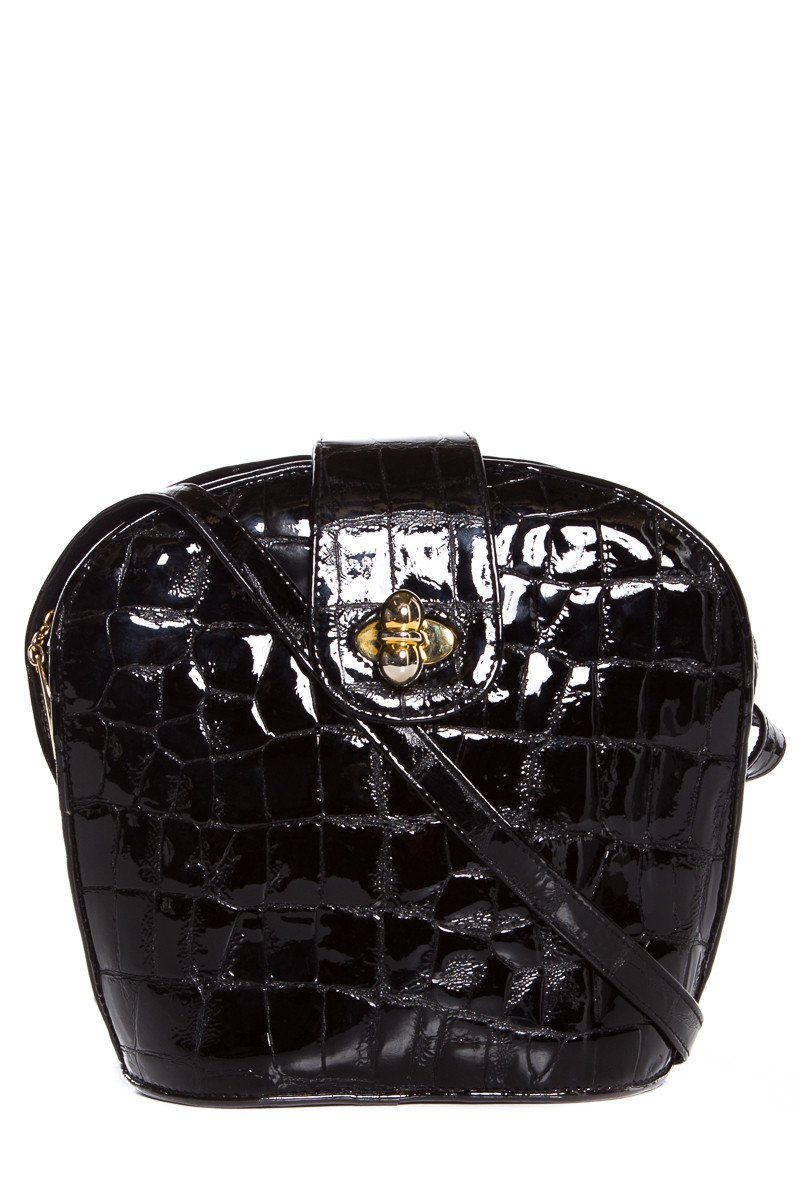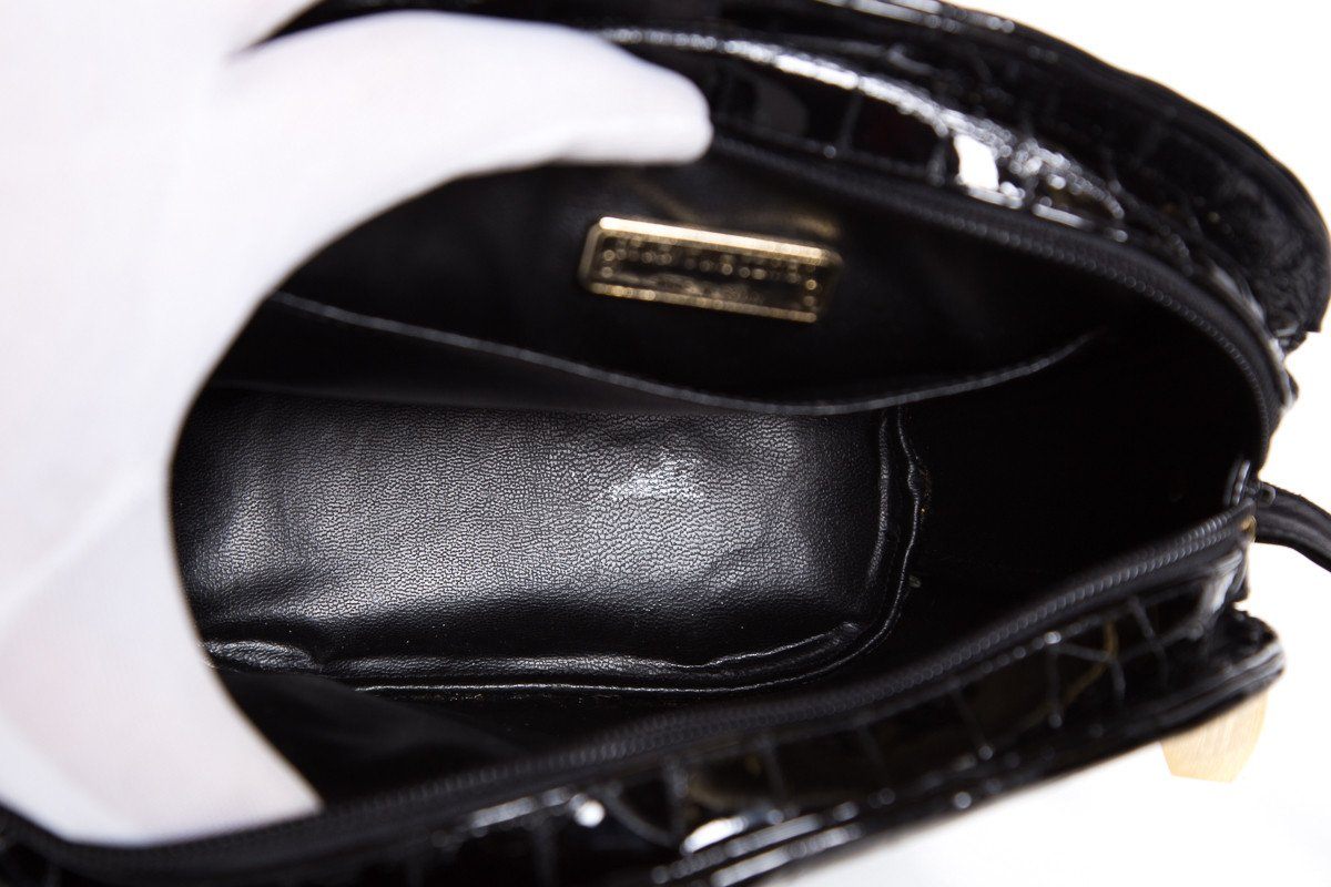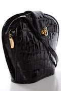 Stuart Weitzman Black Croco Embossed Patent Shoulder Bag