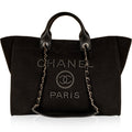 Don't worry girls, we had the same reaction in case you're wondering if you're the only one with their jaw on the floor. Yes, this bag is real and yes, it is for sale - and to say we're obsessed would be an understatement. Carefully crafted from luxurious black fabrics and imitation pearls in silver hardware, the Chanel Deauville handbag is just...beyond stunning, to say the very least. The Deauville is undoubtedly the holy grail of luxury totes. Spacious enough to hold literally everything one would need throughout their day, the Deauville is suitable for travelling, a day at the beach or just basic daily usage. Need to carry your laptop and papers with you to work? The Deauville can easily hold it. Your textbooks for all you international students? No problem. Your dog? Your toddler? Your husband when you don't feel like dealing with him anymore? Girl, go ahead. Jokes aside, the Deauville is an absolute must-have for any woman with a love for luxury and a lot to carry.