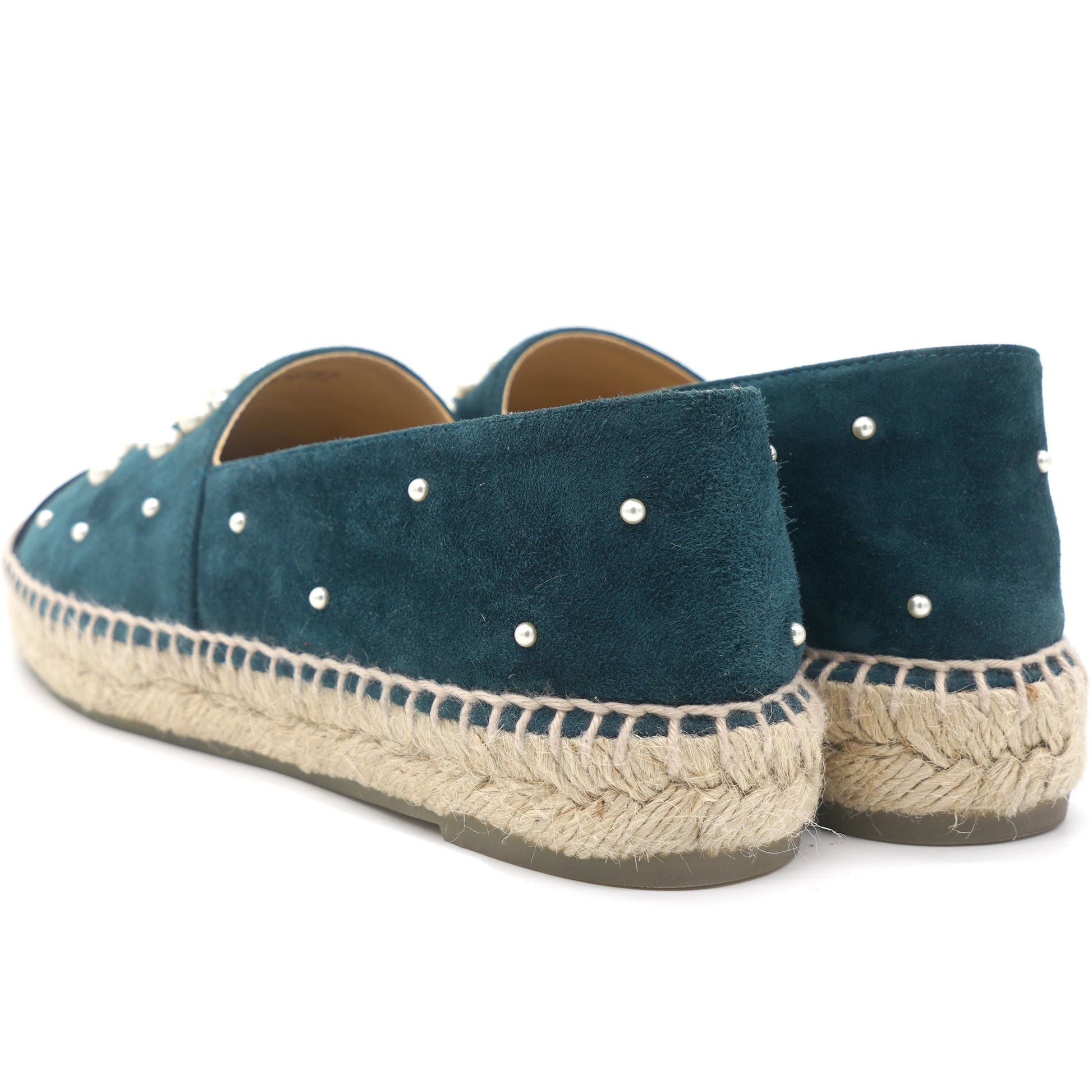 Chanel Suede Pearl CC Espadrilles 37 Teal