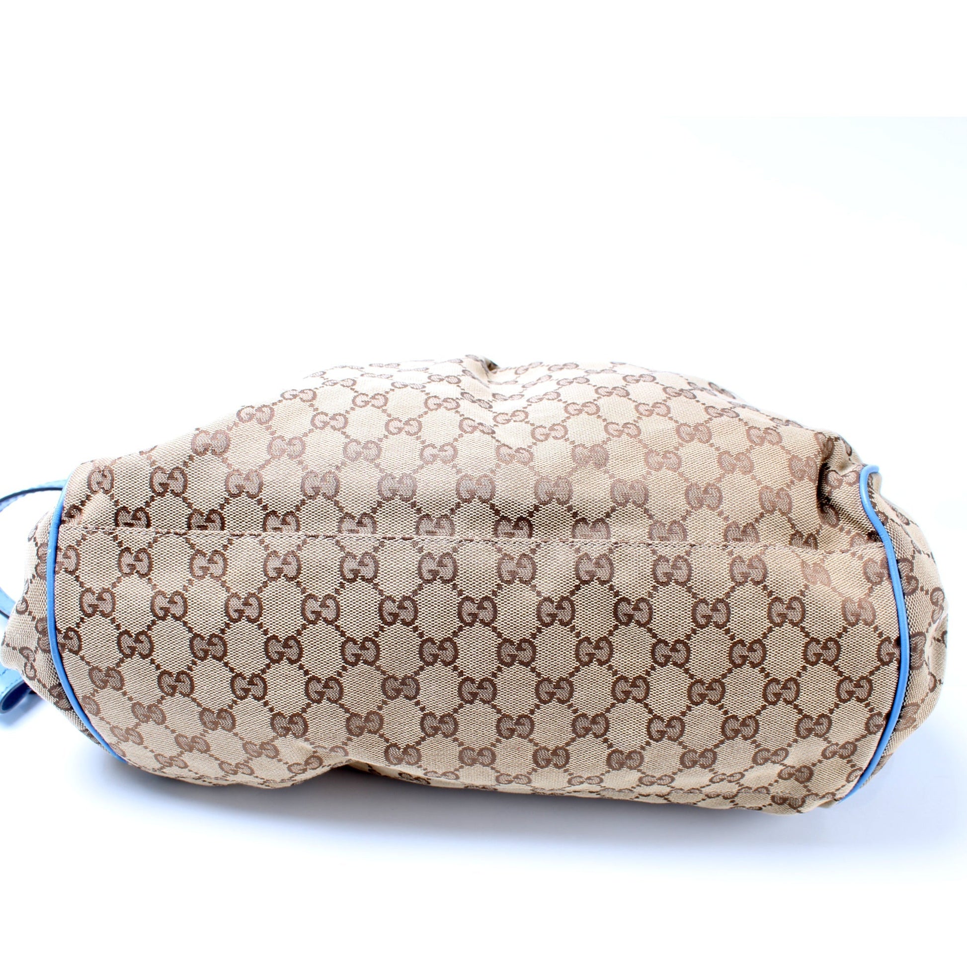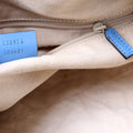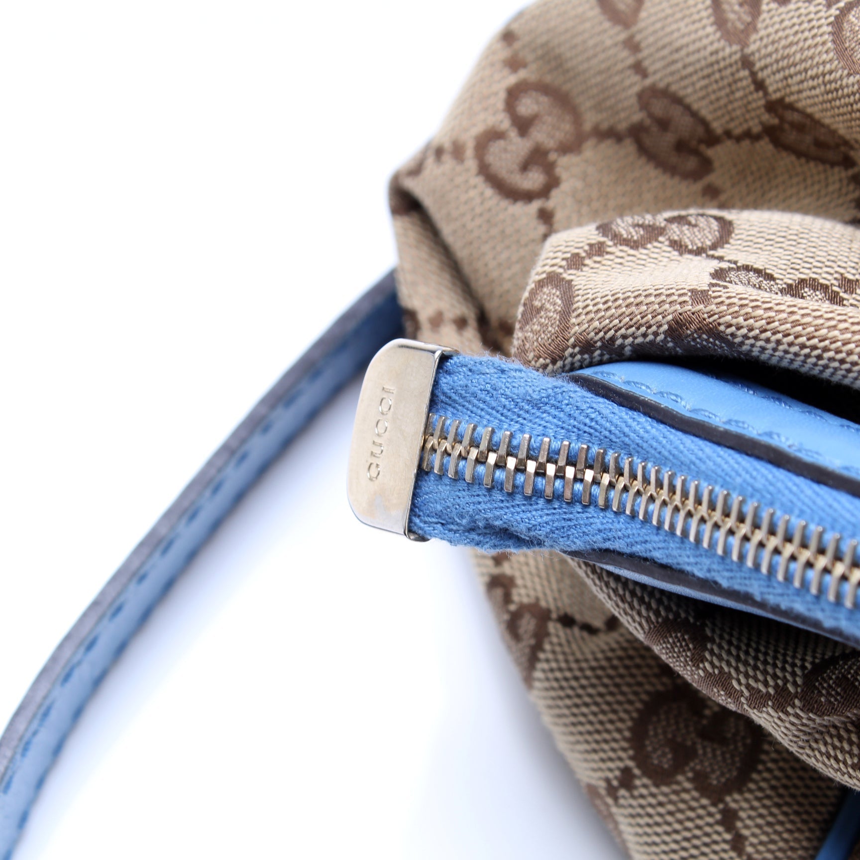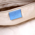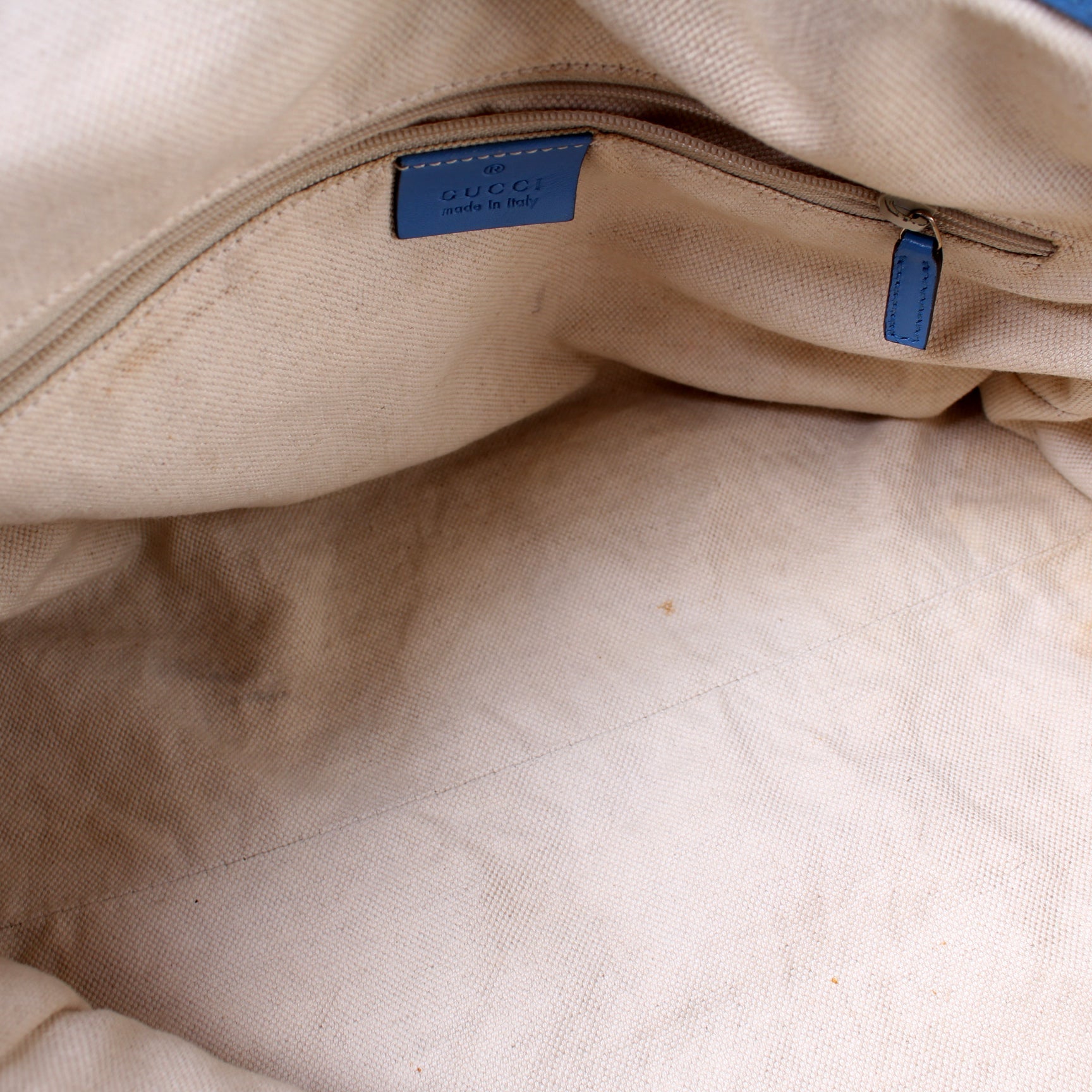 Interior: The interior shows minor stains at the base. The interior features one zip closure pocket.
