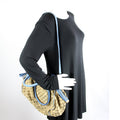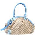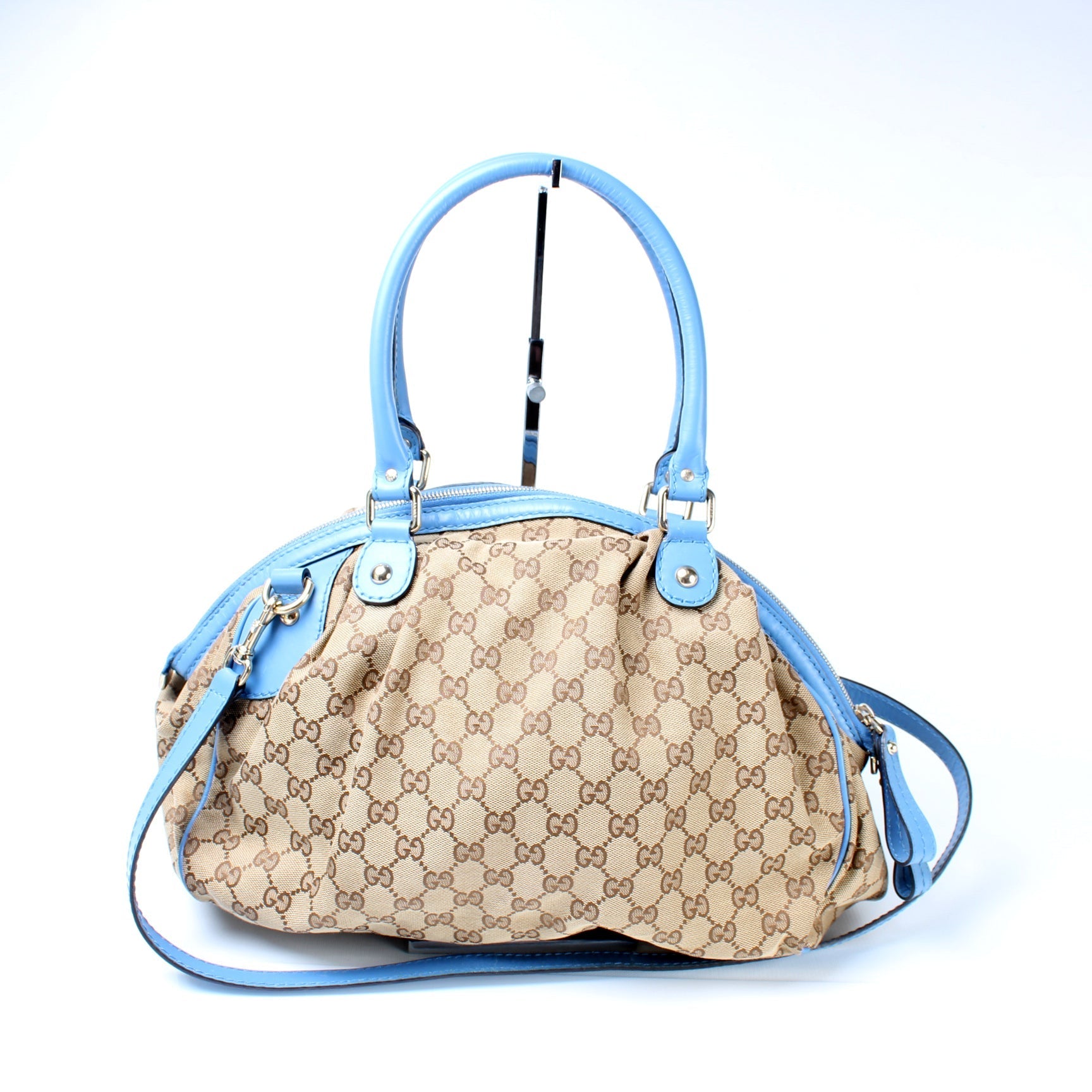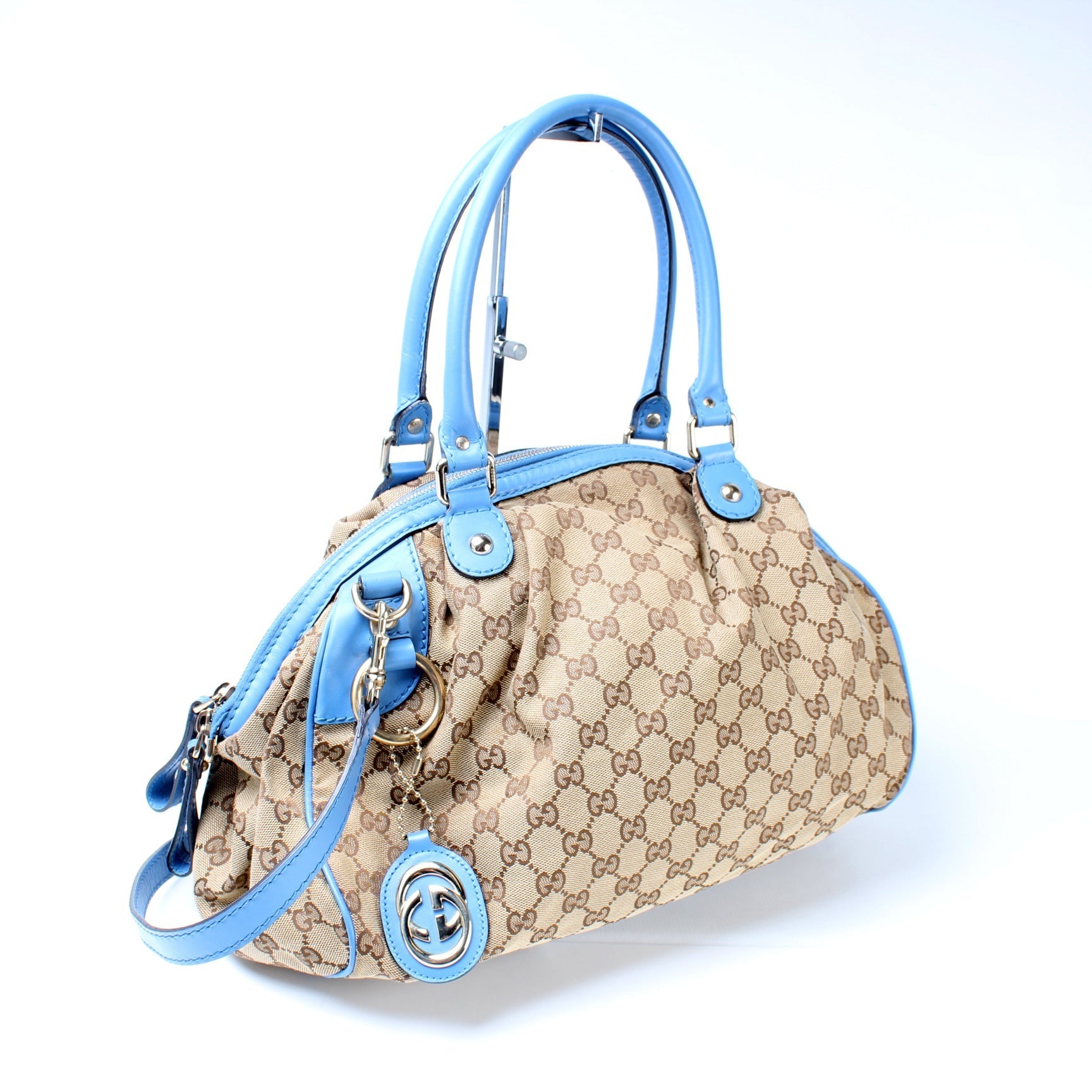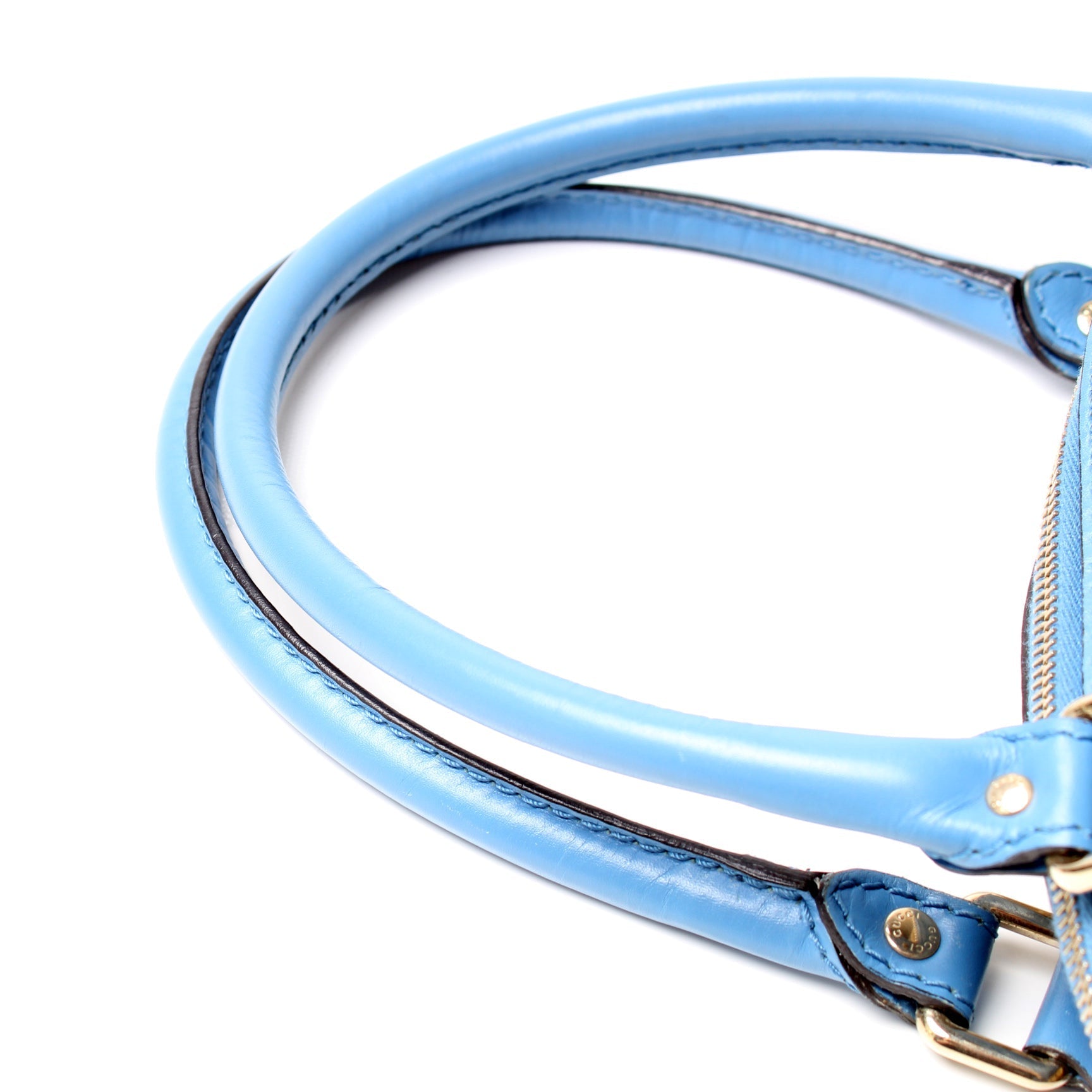 Interior: The interior shows minor stains at the base. The interior features one zip closure pocket.