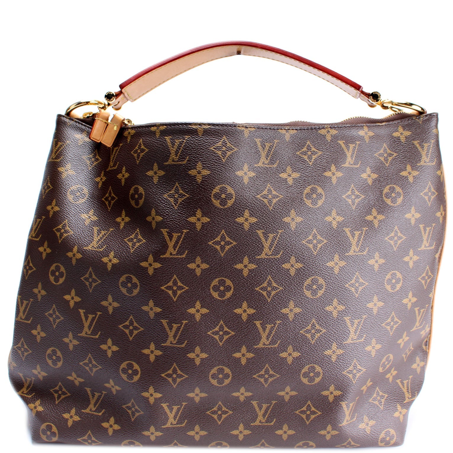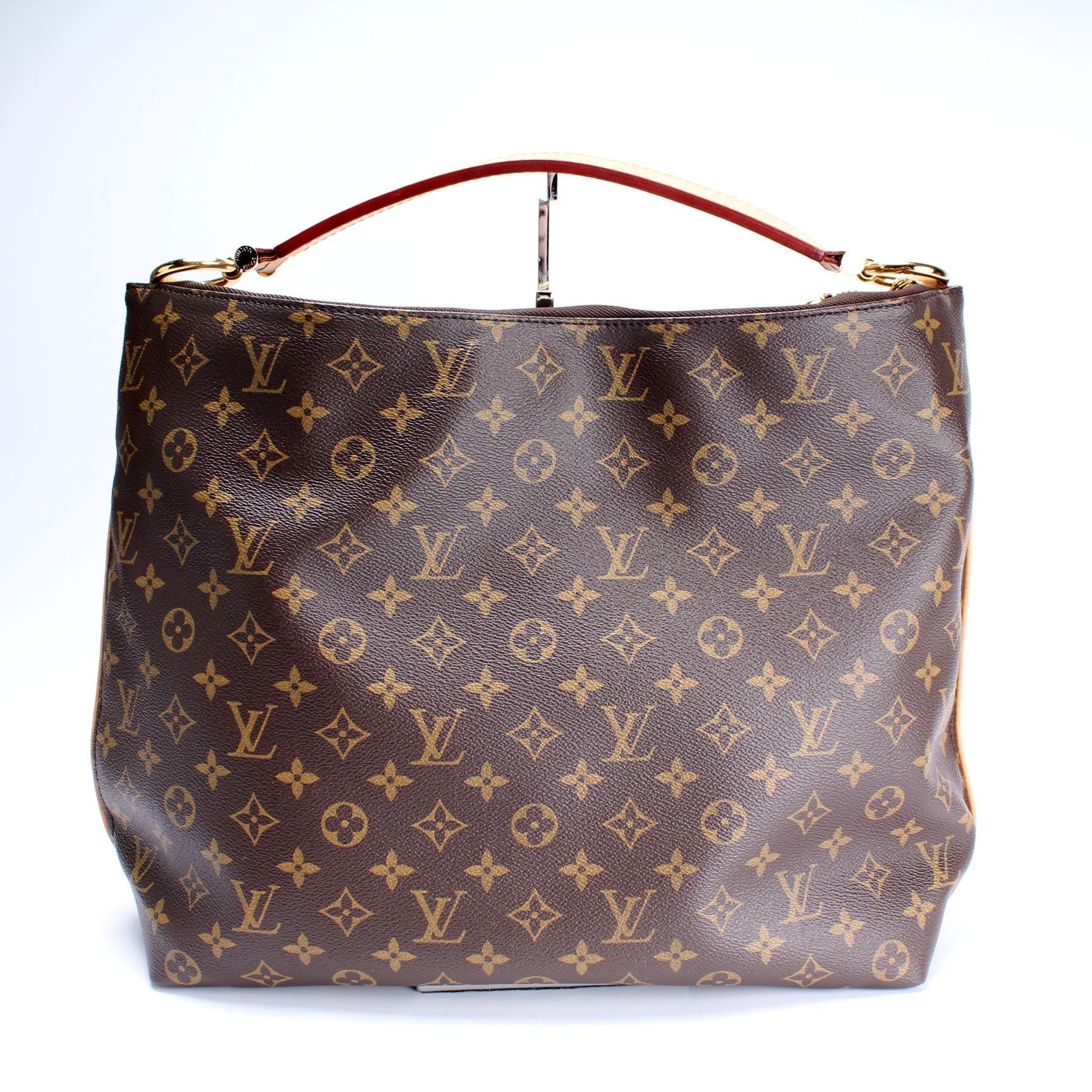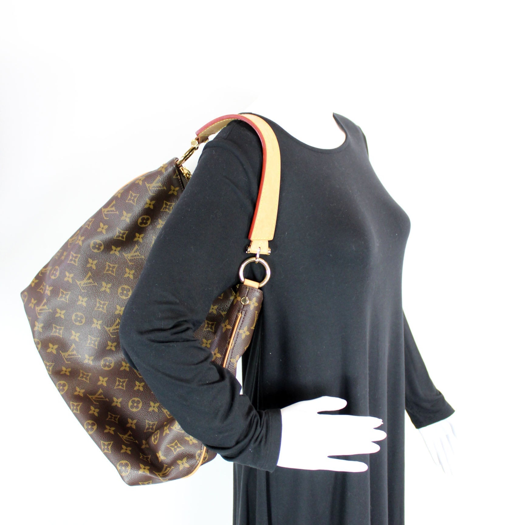 This Louis Vuitton Sully MMis eye catching bag. The exterior is in the classic Monogram coated canvas.