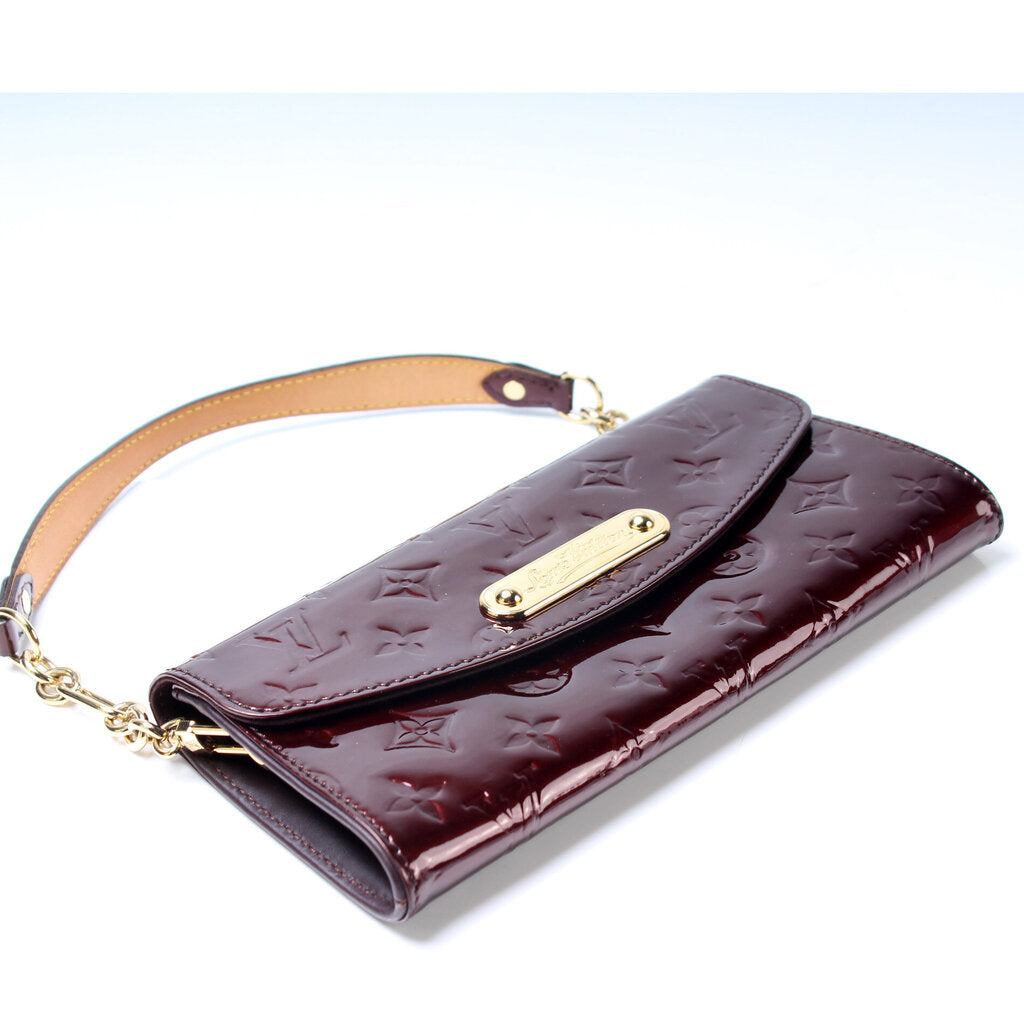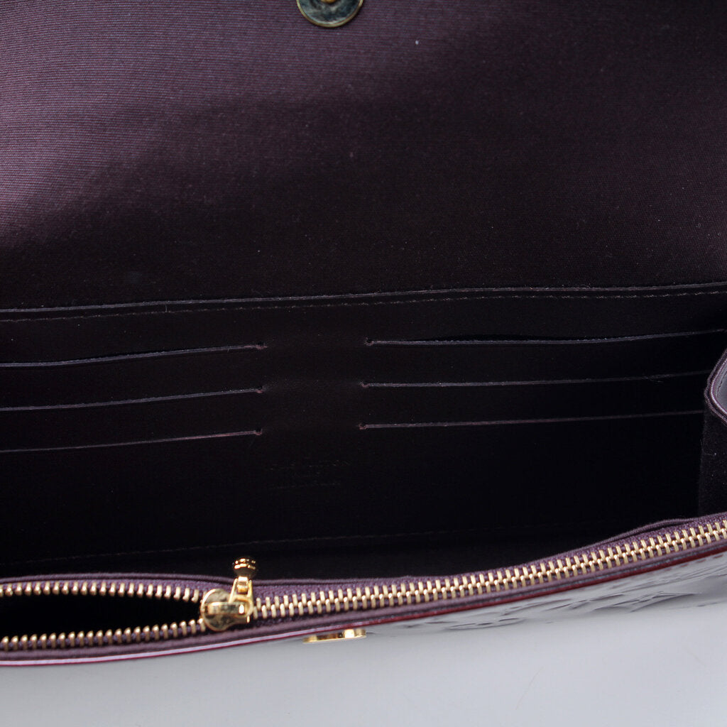 This Louis Vuitton Sunset Blvd Clutchis eye catching bag. The exterior is in the classic Louis Vuitton Vernis leather.