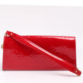 This Louis Vuitton Sunset Boulevard Clutchis eye catching bag. The exterior is in the classic Louis Vuitton Vernis leather.