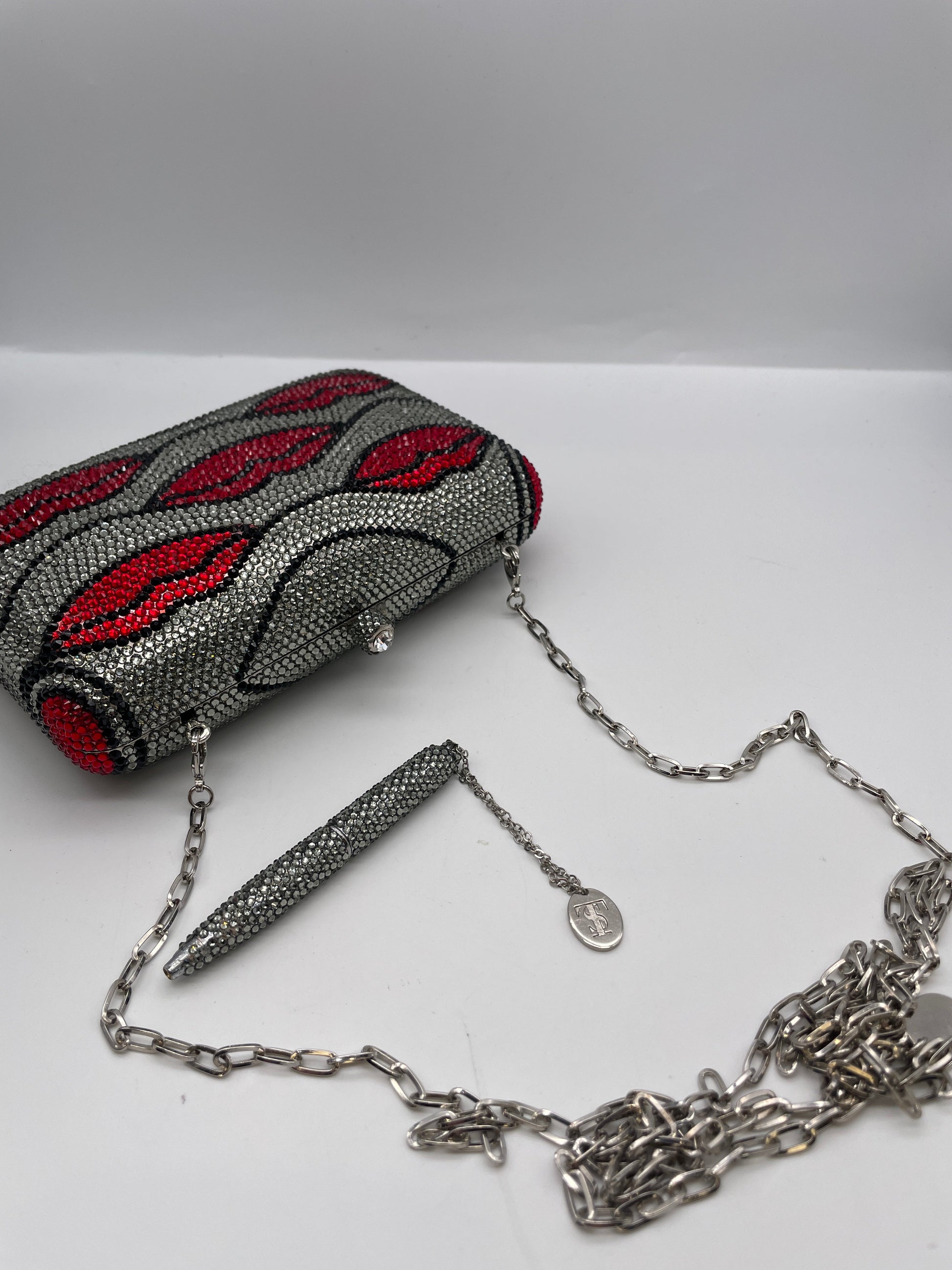 Handmade Clutch in Metal with Swarovski Crystal. Leather gold or silver. Removable Cross-Body Chain. Matching Pen with Swarovski Crystal. The set is presented in Jewel Box with a Protective Housse.