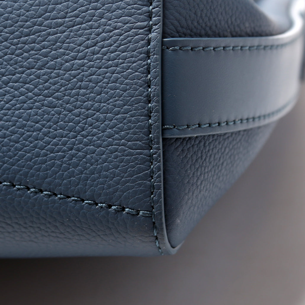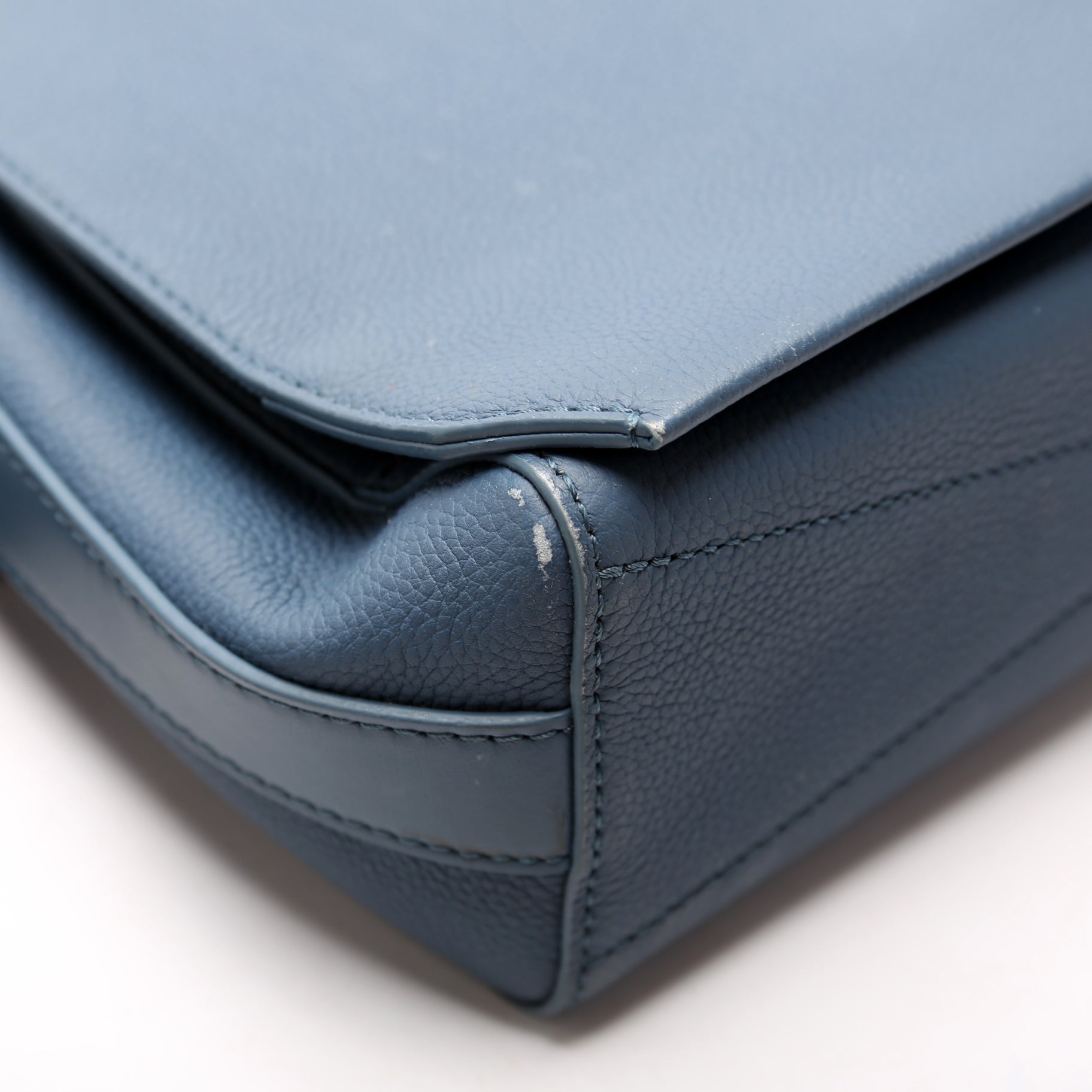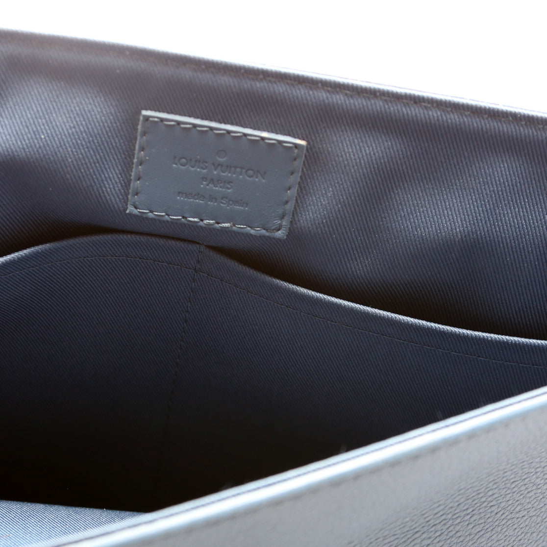 Exterior: The exterior leather is free of any rips or cracks. There are minor scuffs throughout. The exterior features one zip closure pocket.