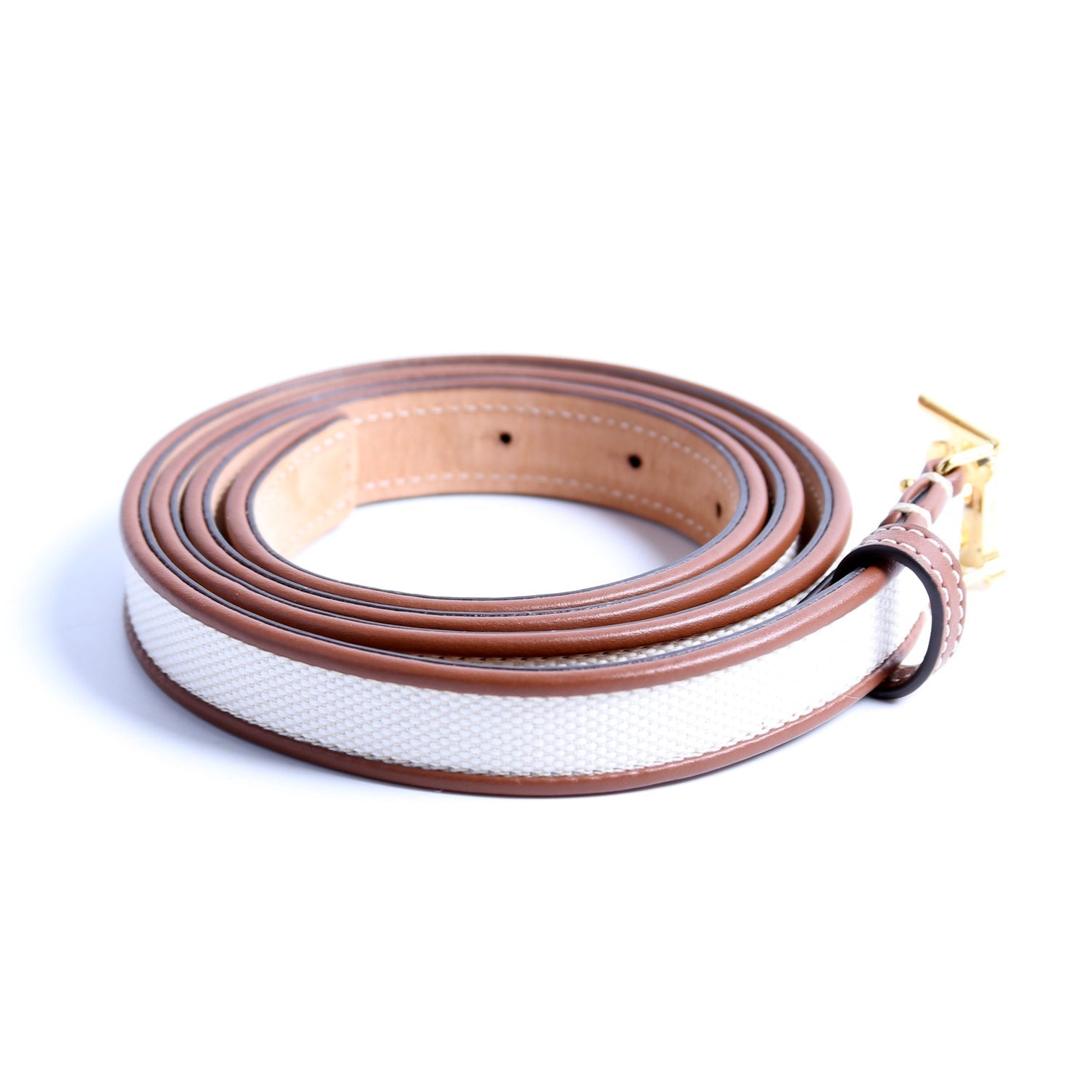 TB Logo Thin Canvas/Leather Belt Size Large Brown/White