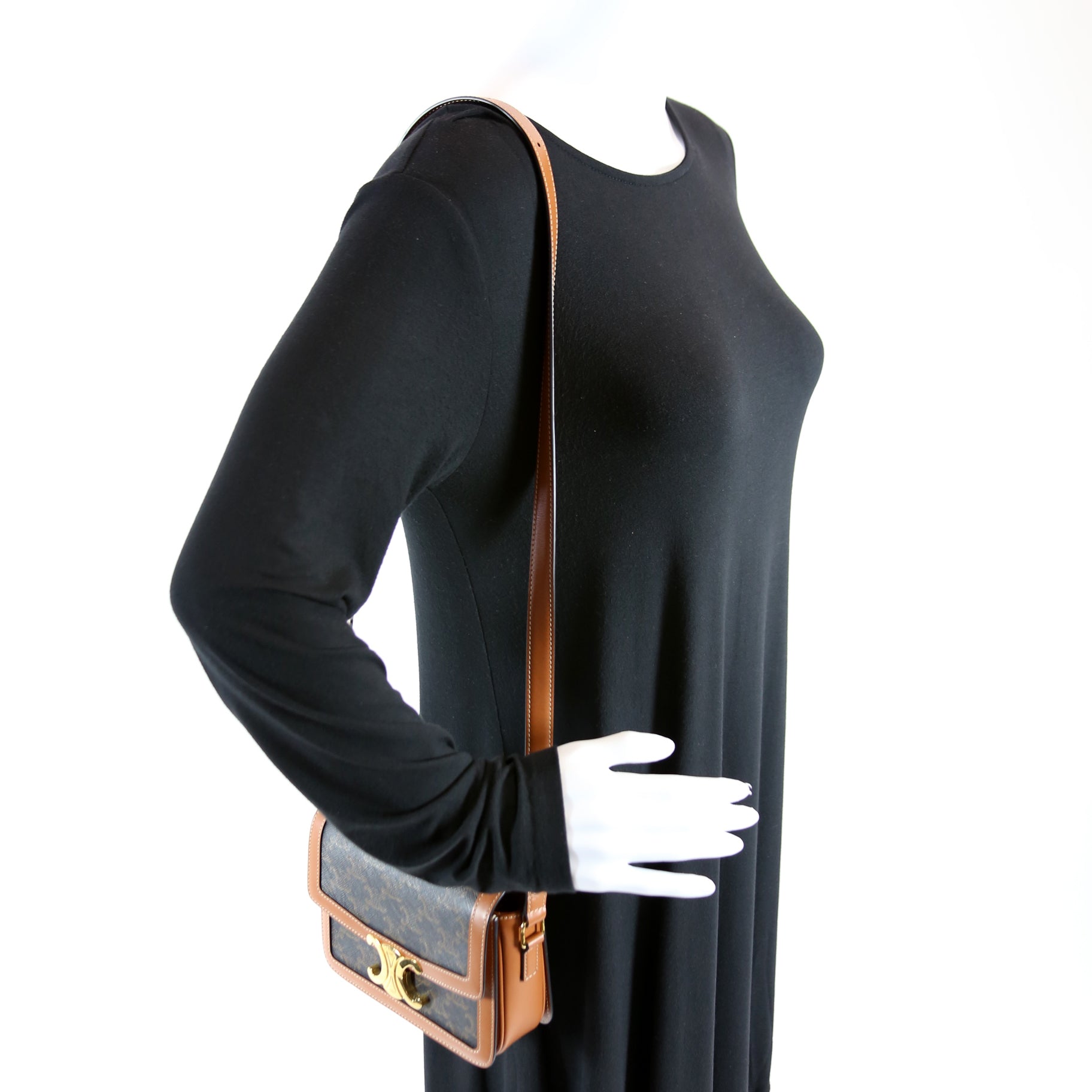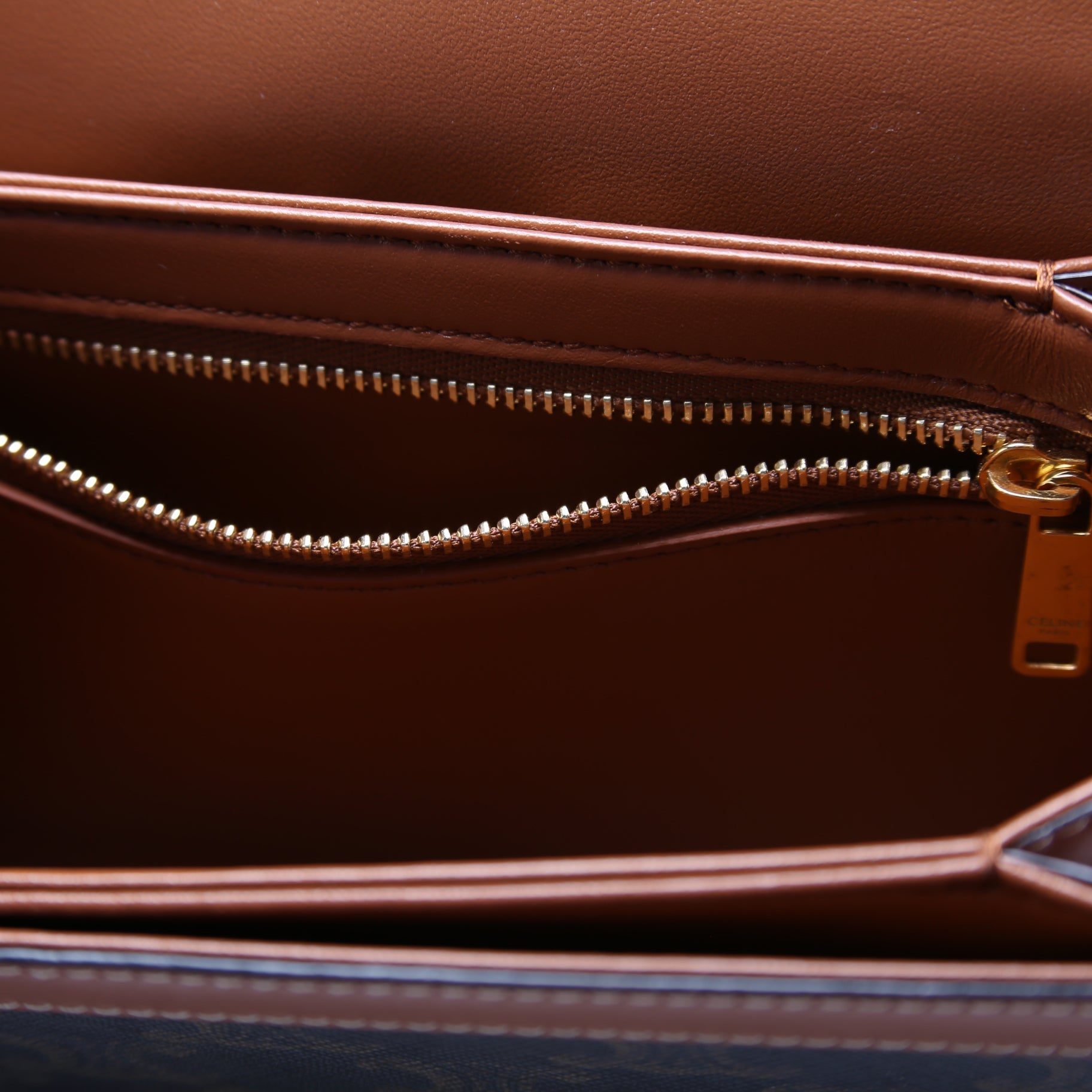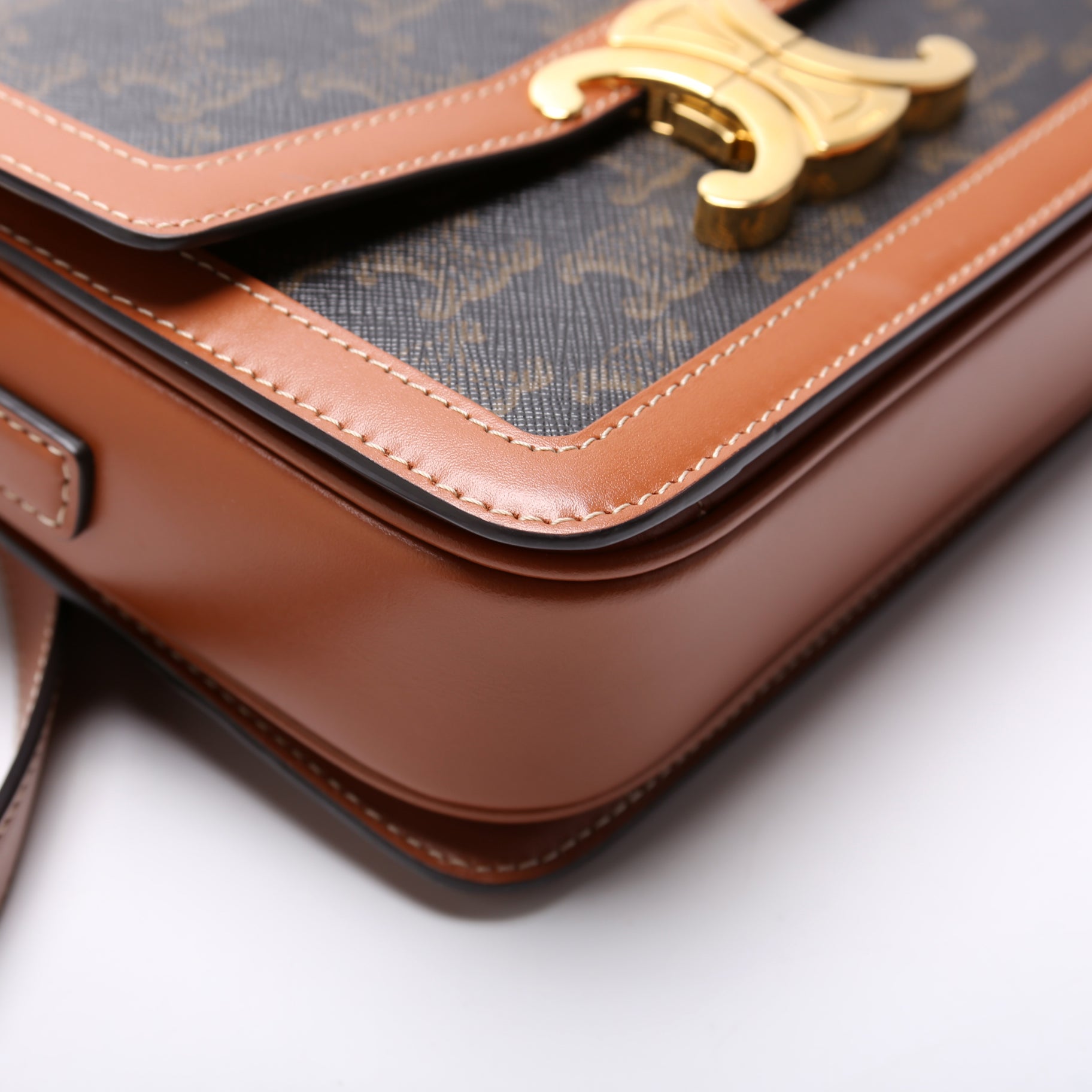 This Celine Teen Triomphe Bag Canvas/Calfskinis eye catching bag.