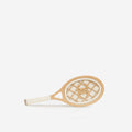 This adorable piece from Chanel's 2023 Cruise collection and showcased in Monte Carlo. The Racquet bag comes in a range of sizes for different purposes and features a pink canvas exterior and a delicate tennis racket shaped mirror. This bag is perfect for the ultimate Chanel collector