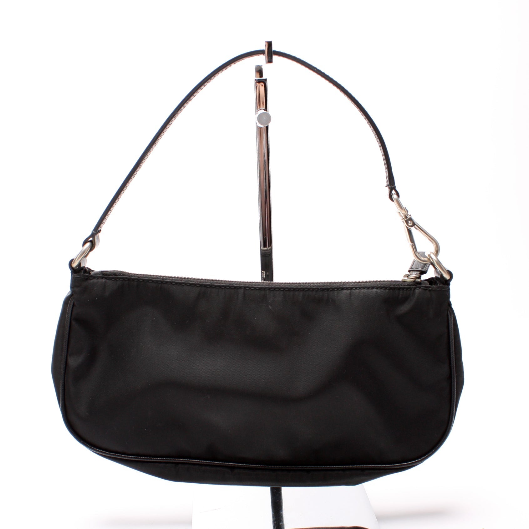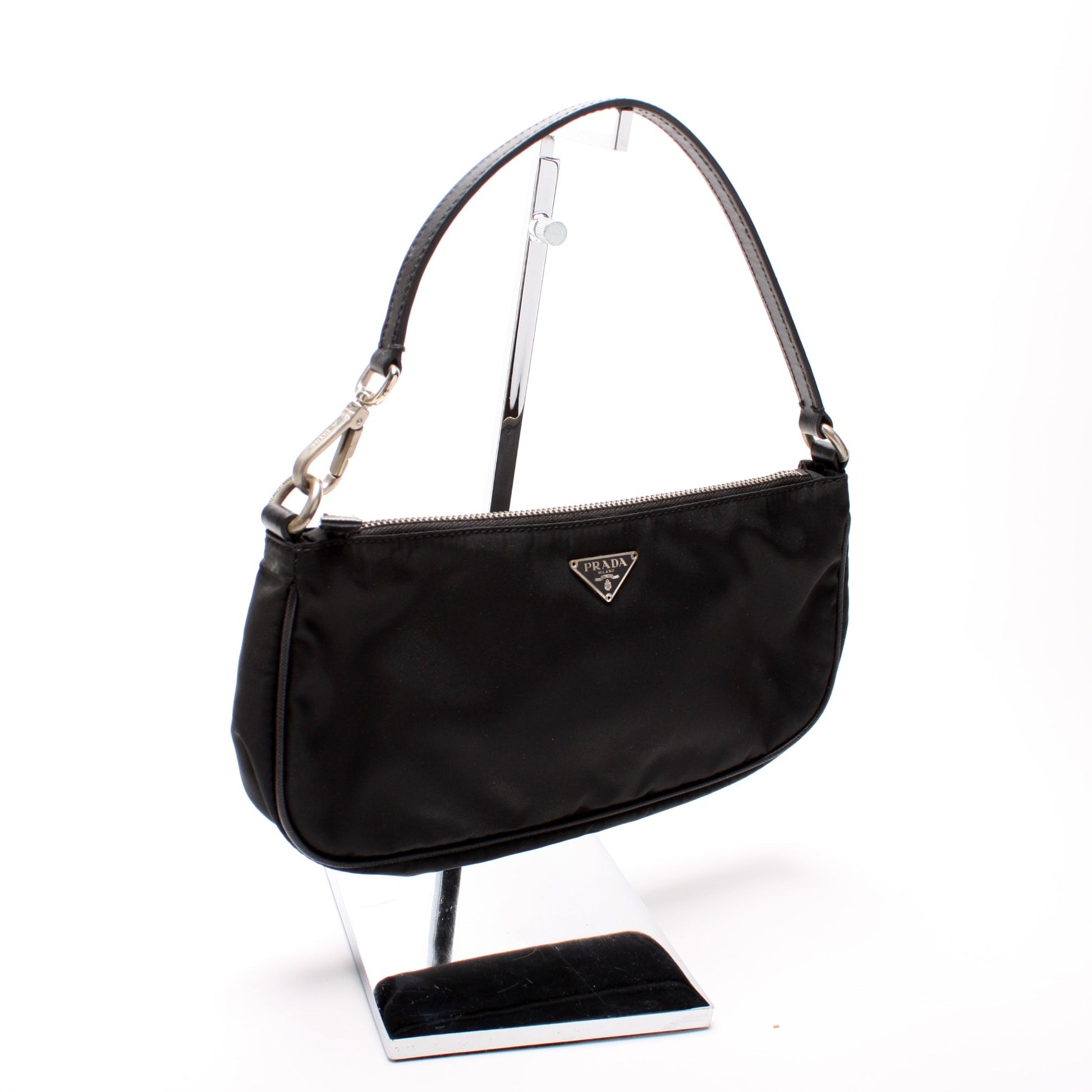This Prada Tessuto Nylon Pochette Shoulder Bagis eye catching bag.