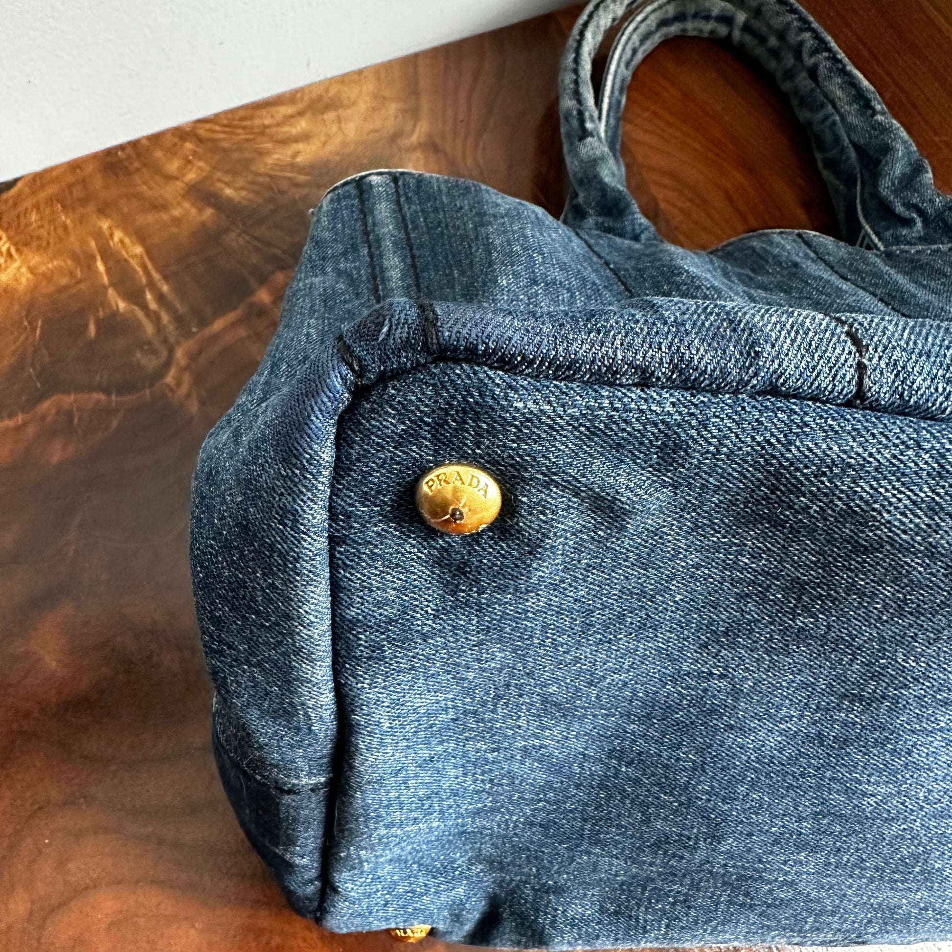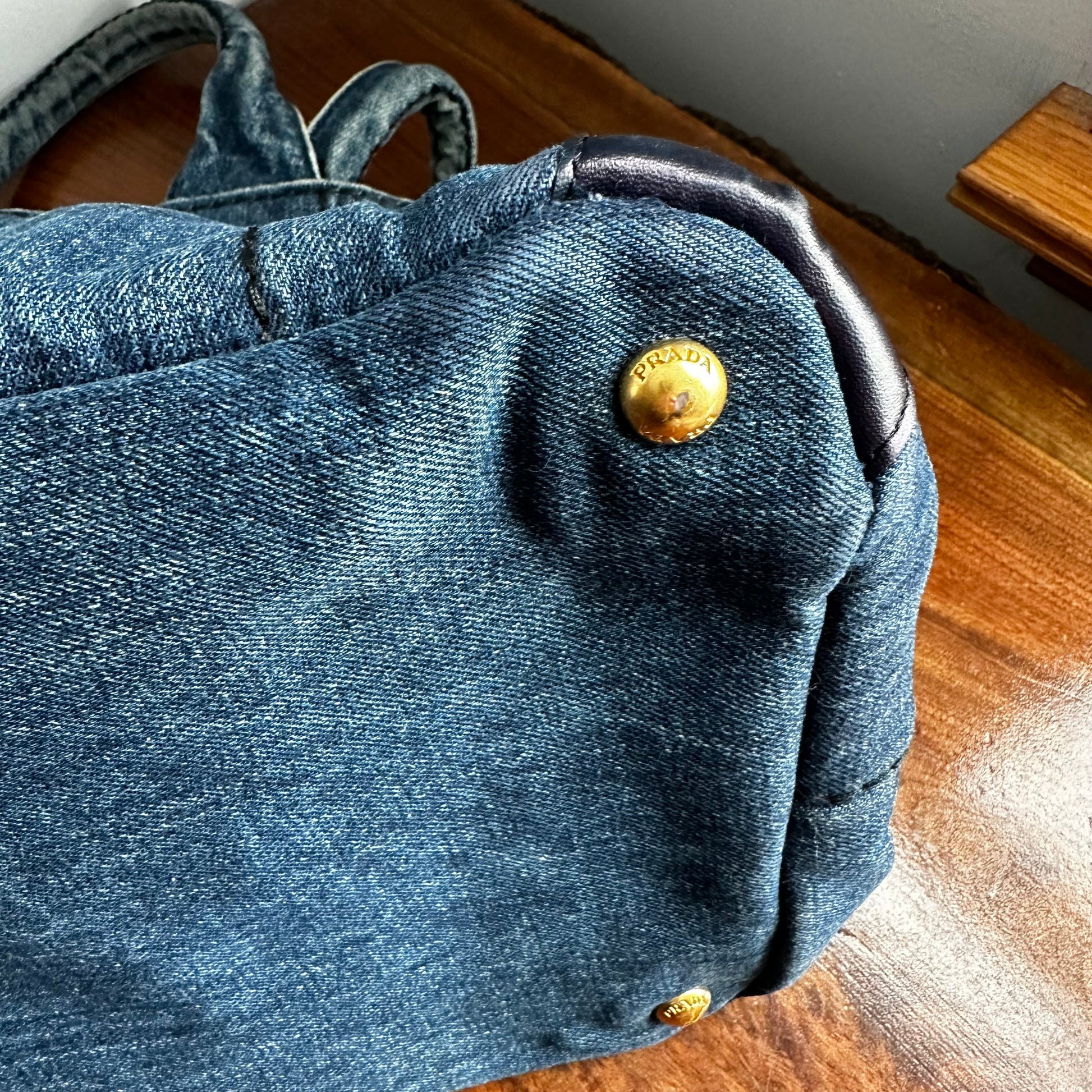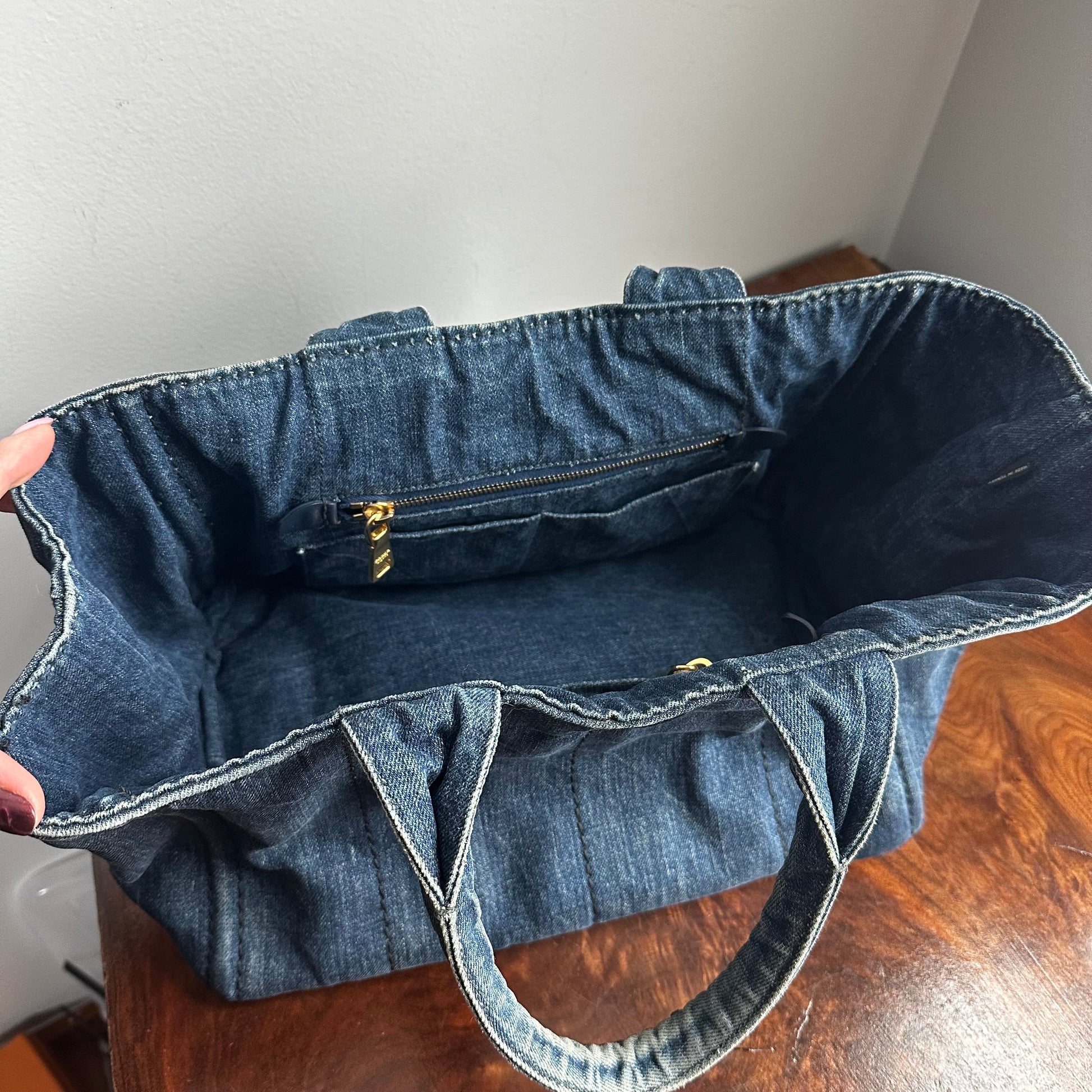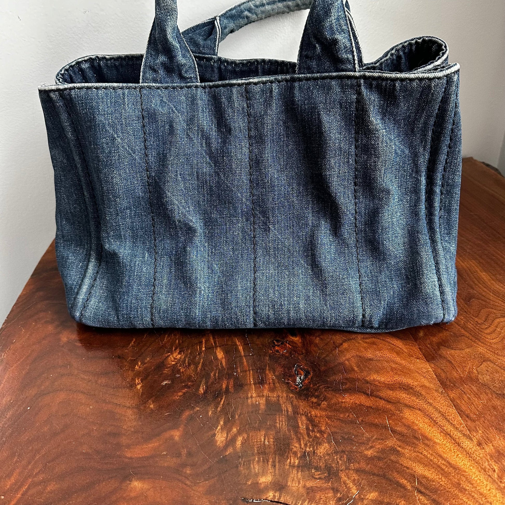 This beautifulPrestige Totes Prada Canapa Large Denim Tote just needed a little sprucing up to make her useable again. She got a bath and some touch up on some worn areas, and now she's gorgeous and ready for a new owner!!