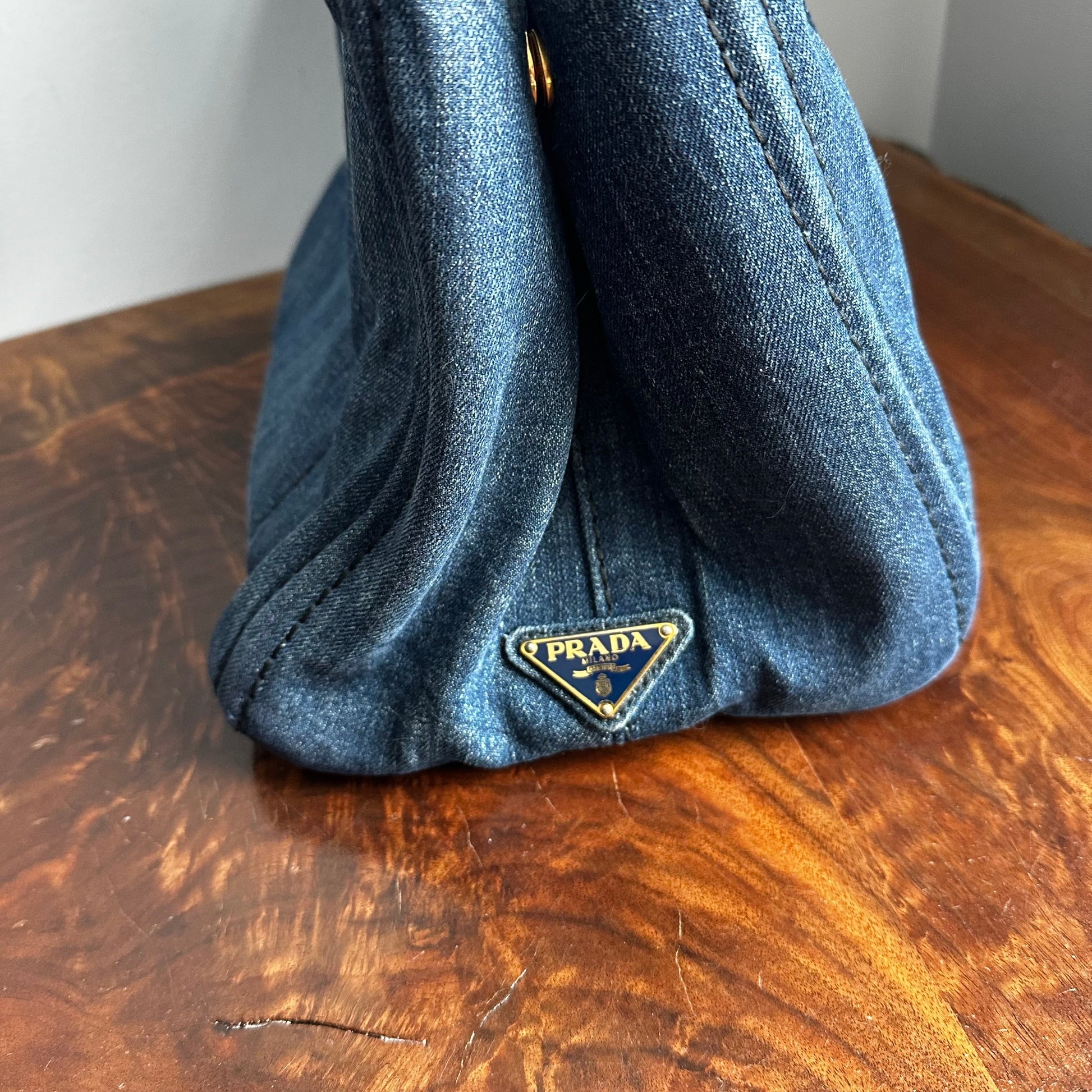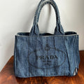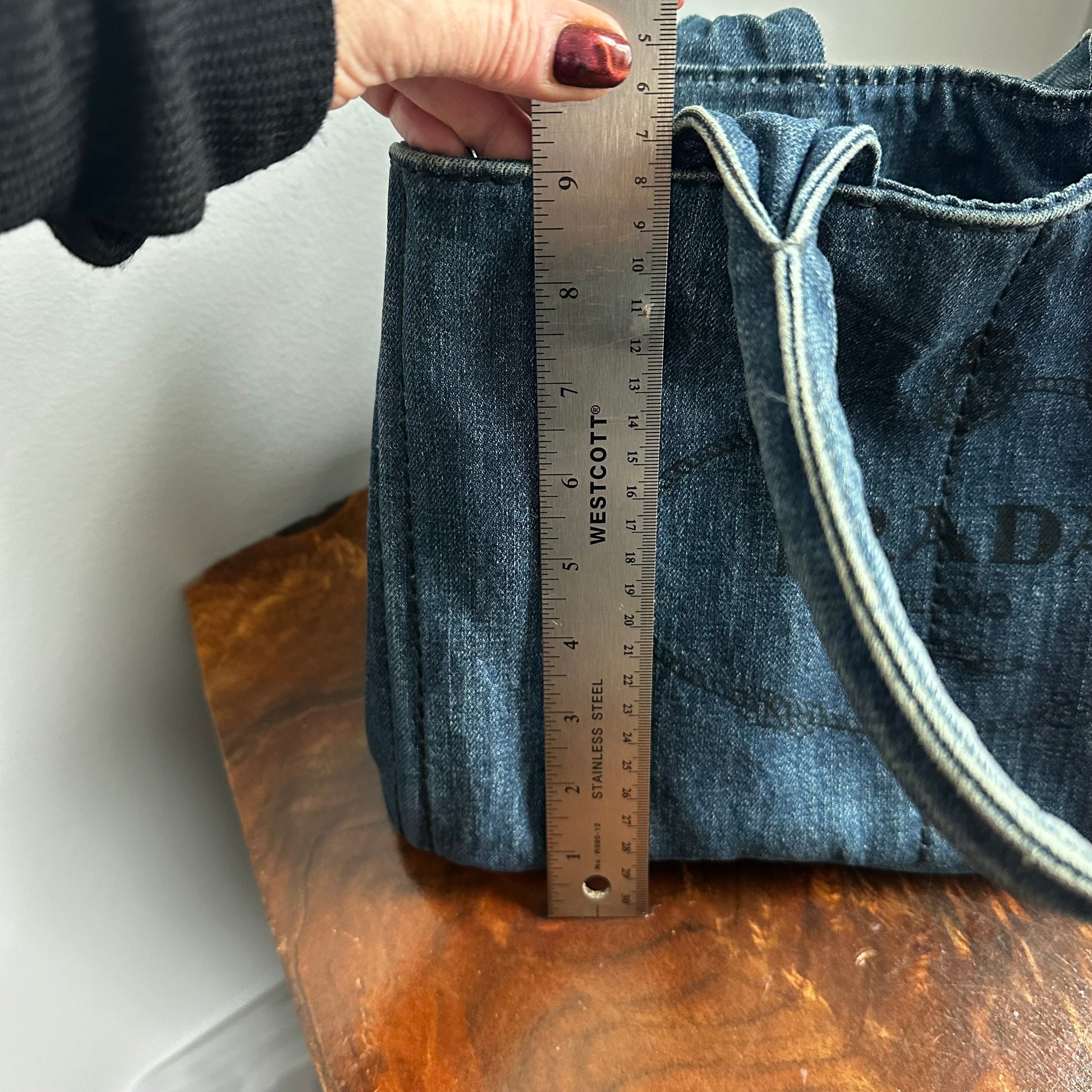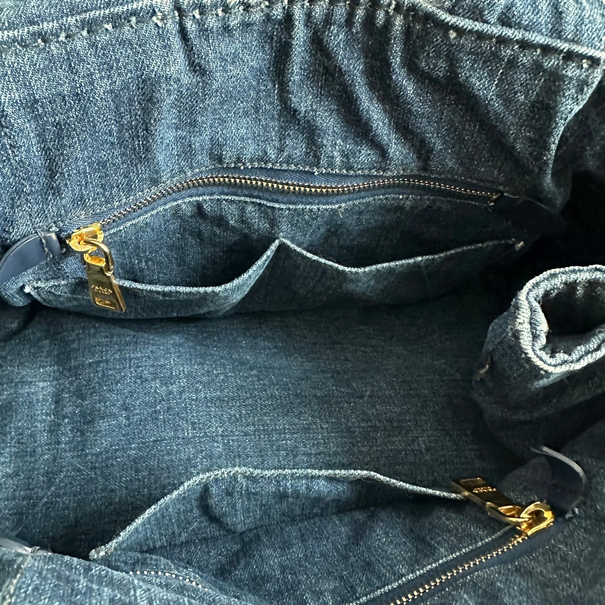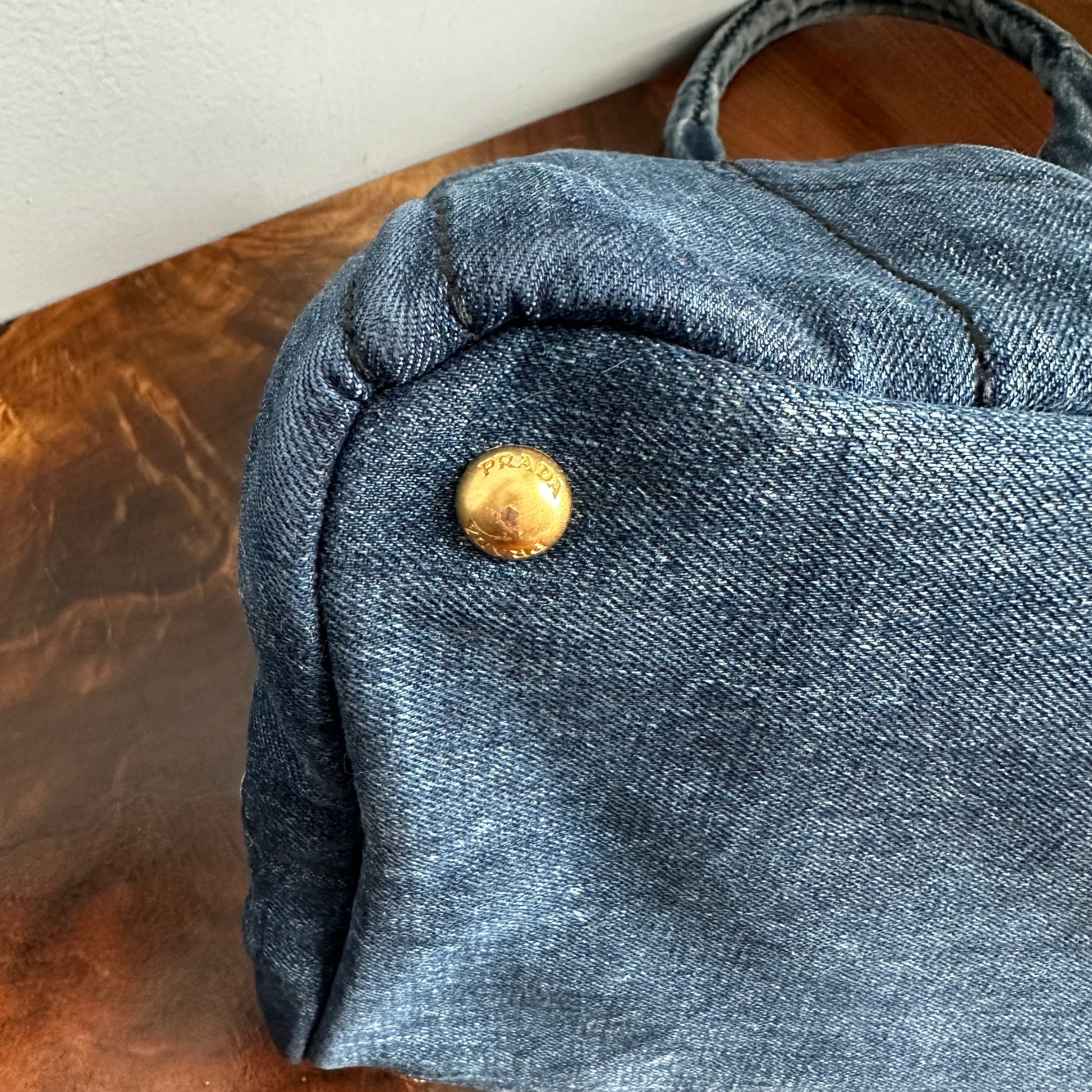 This beautifulPrestige Totes Prada Canapa Large Denim Tote just needed a little sprucing up to make her useable again. She got a bath and some touch up on some worn areas, and now she's gorgeous and ready for a new owner!!