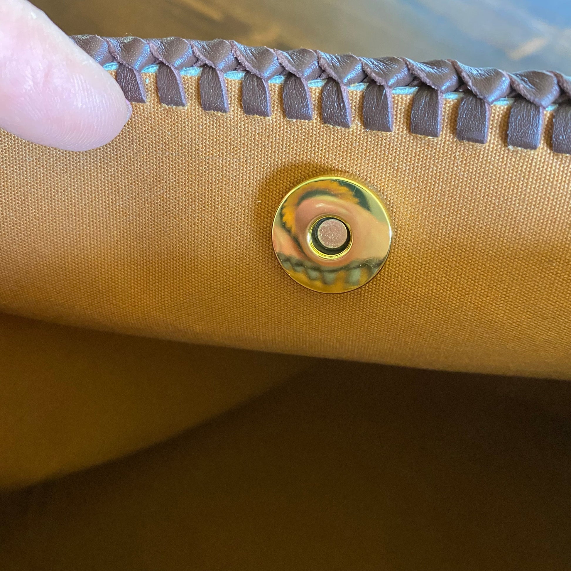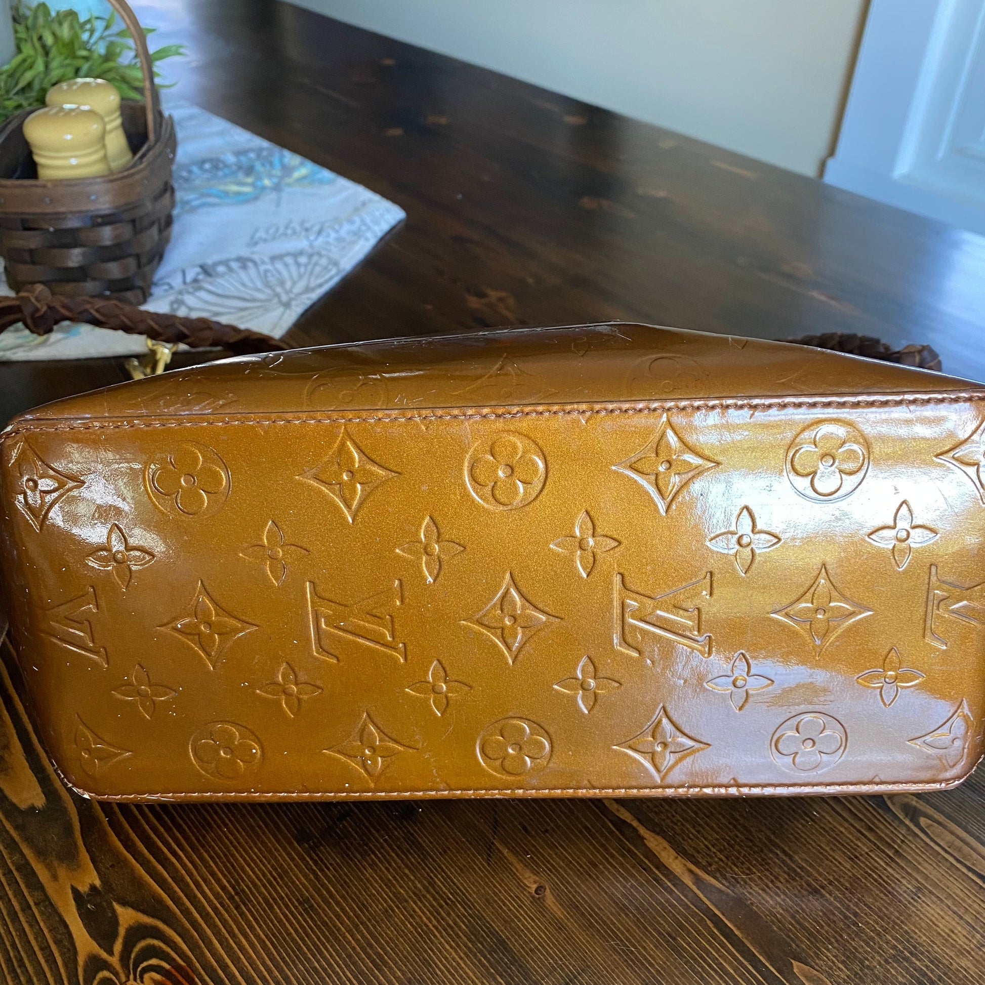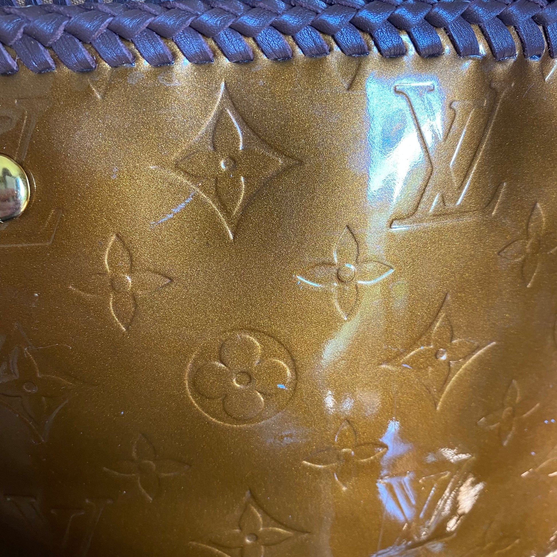 This beautiful bag might not have been created from a Neverfull, but it sure looks like a small version of one!! This bag was created from an Louis Vuitton Bronze Vernis tote that was in great condition, but just not that functional. I cut off about 5 inches from the top, added top braiding and some rings to make it a shoulder bag. NOW it is ready to be used by a new owner!