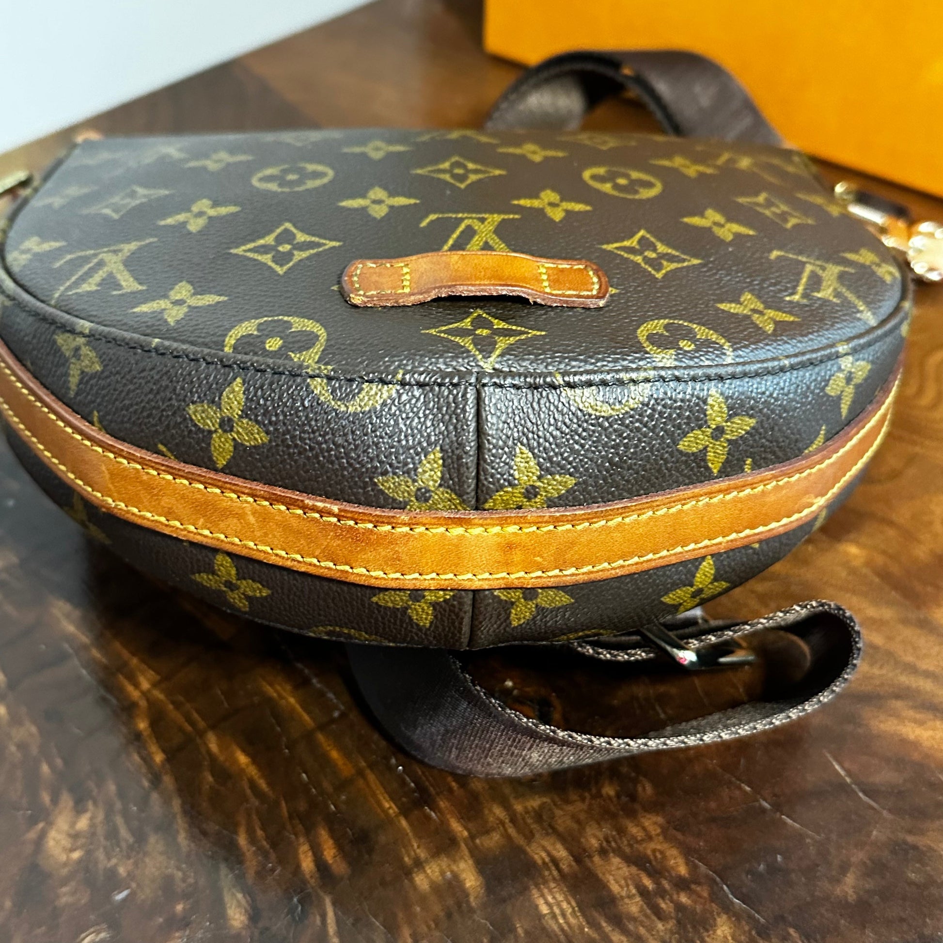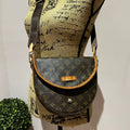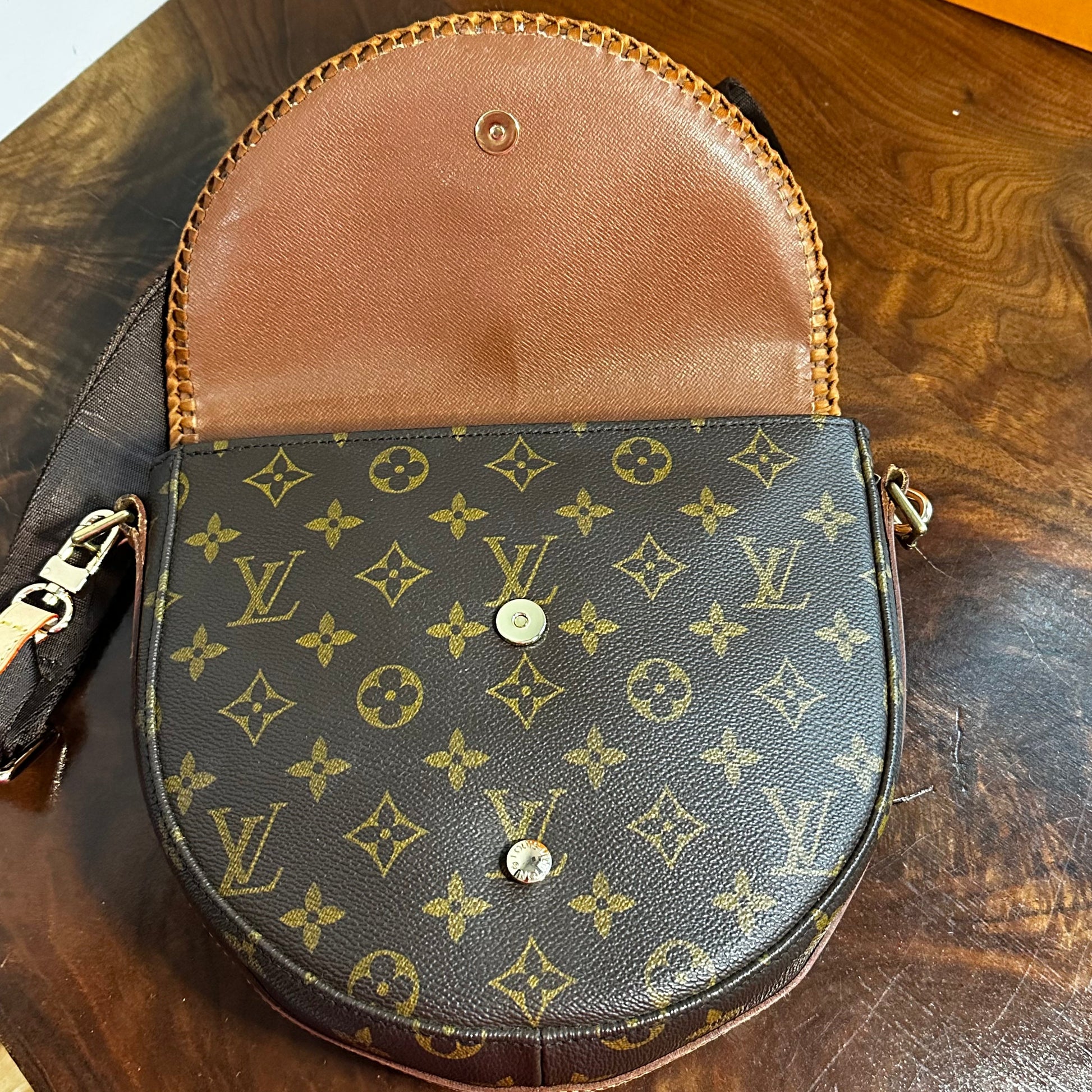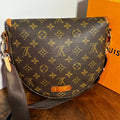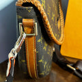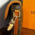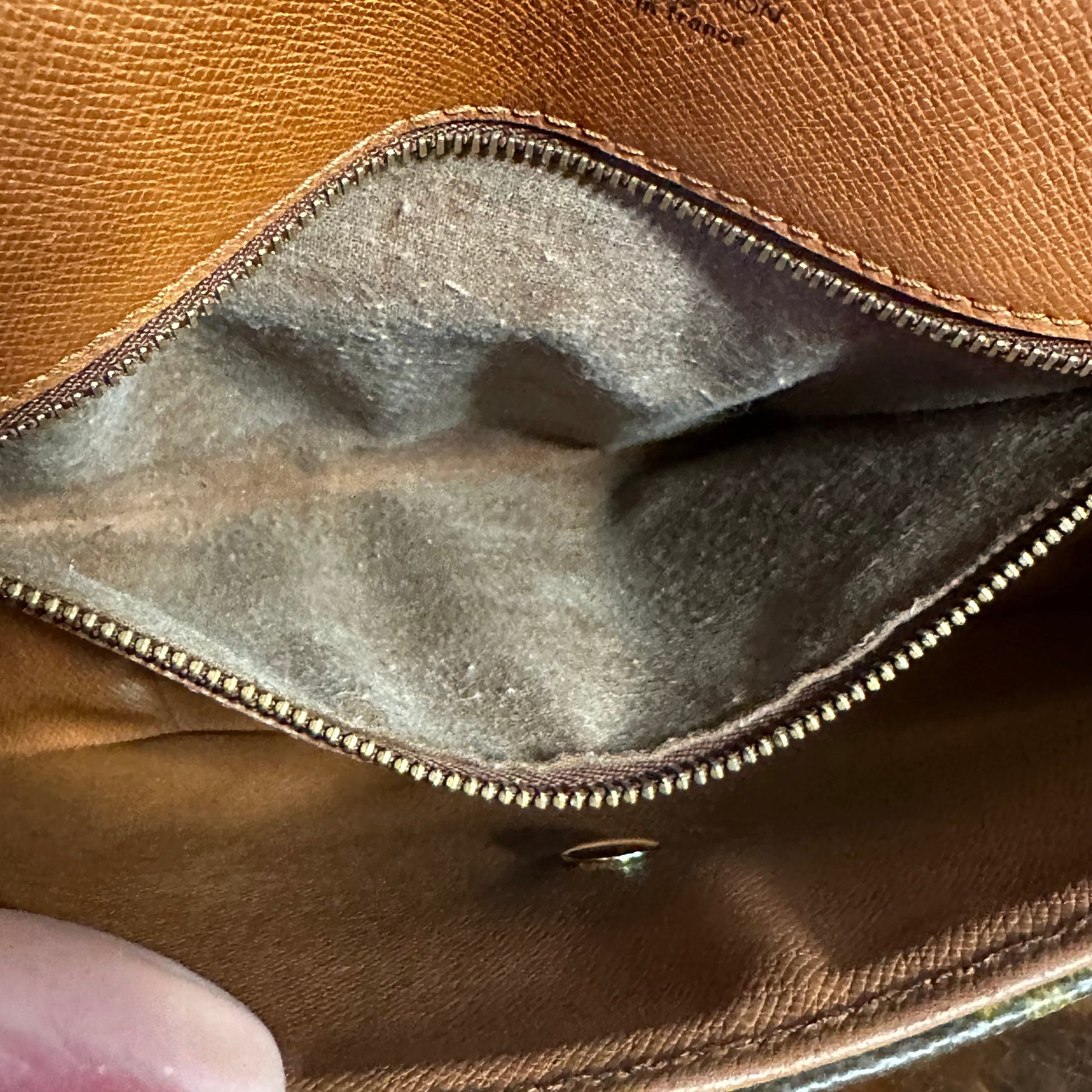 The bag's monogram and interior are both in excellent shape! The front flap does have some wrinkles, but nothing that detracts from her Prestige Totes!! There is a large interior compartment with one zippered pocket inside. The interior pocket had vuittonite, so I've scrubbed it out as best as I could. It's clean, but there may be some flakiness. I replaced the original strap with a more modern canvas one that is adjustable from 30.5-50"