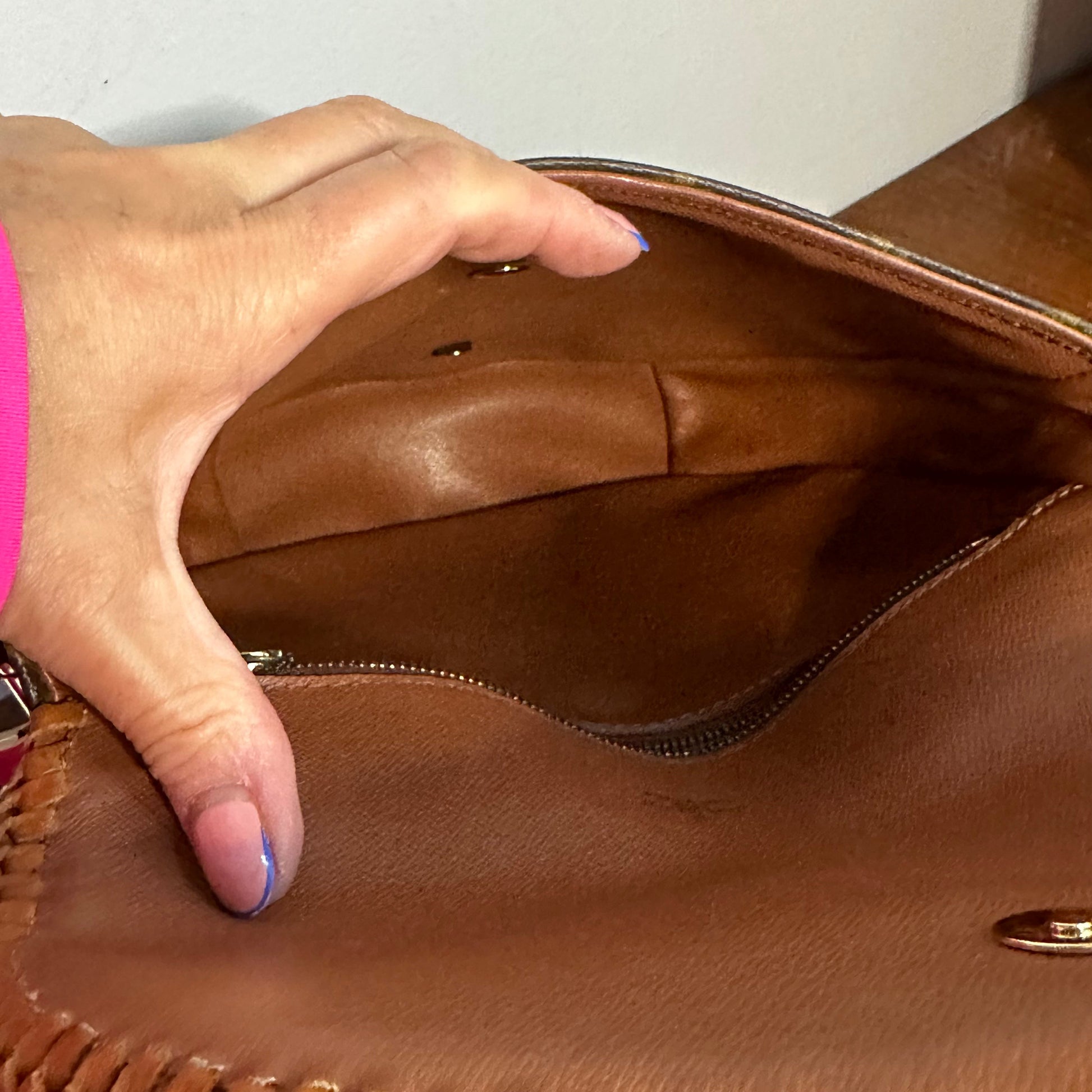 I've cleaned and conditioned all of the vachetta ... and added tan leather braiding to the outside of the front flap. I've also added a cutePrestige Totes Louis Vuitton button that hides the buckle hole. This bag has room for just the right amount of things, coming in at W10.2 x H7.7 x D2.2"